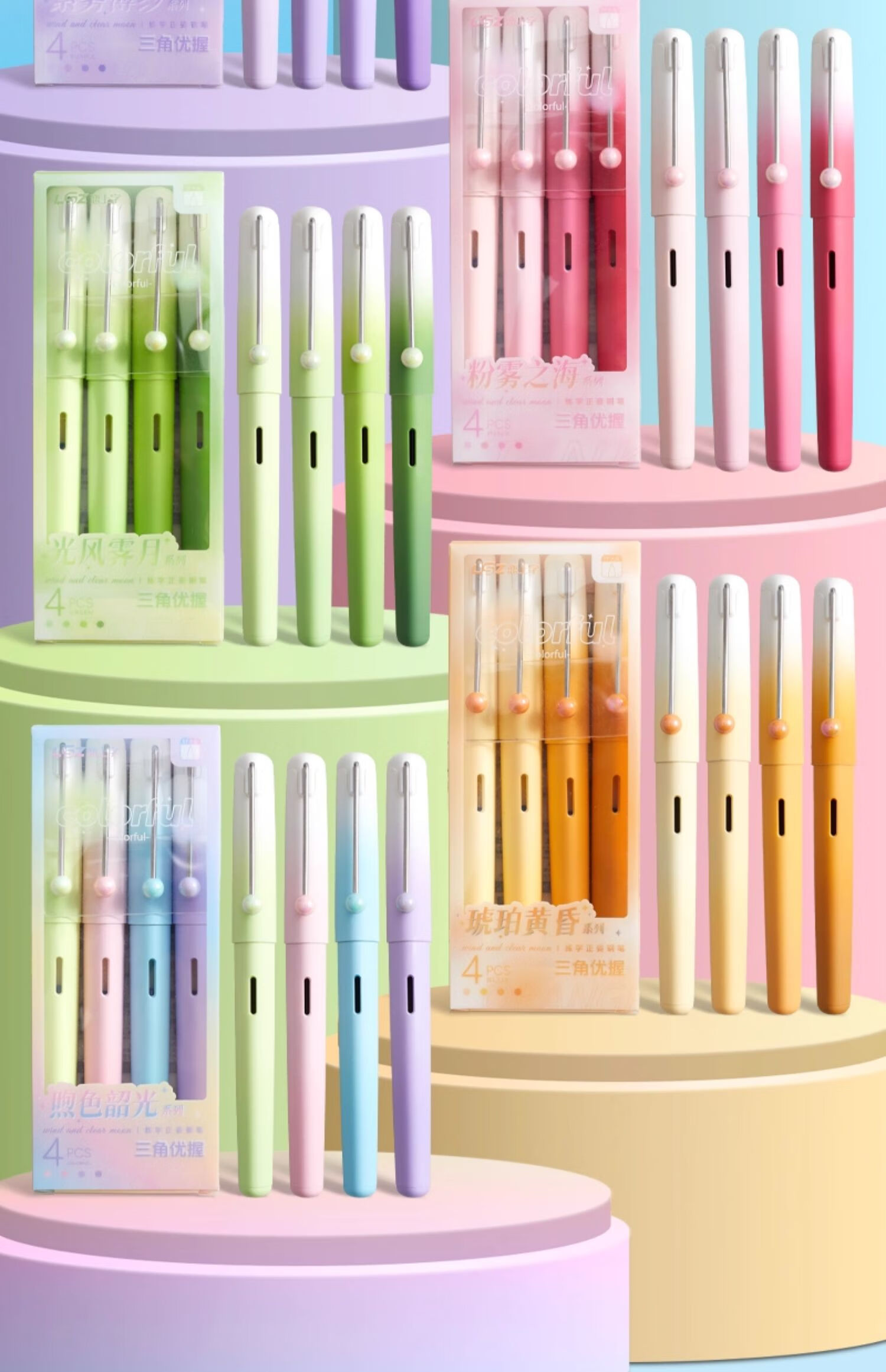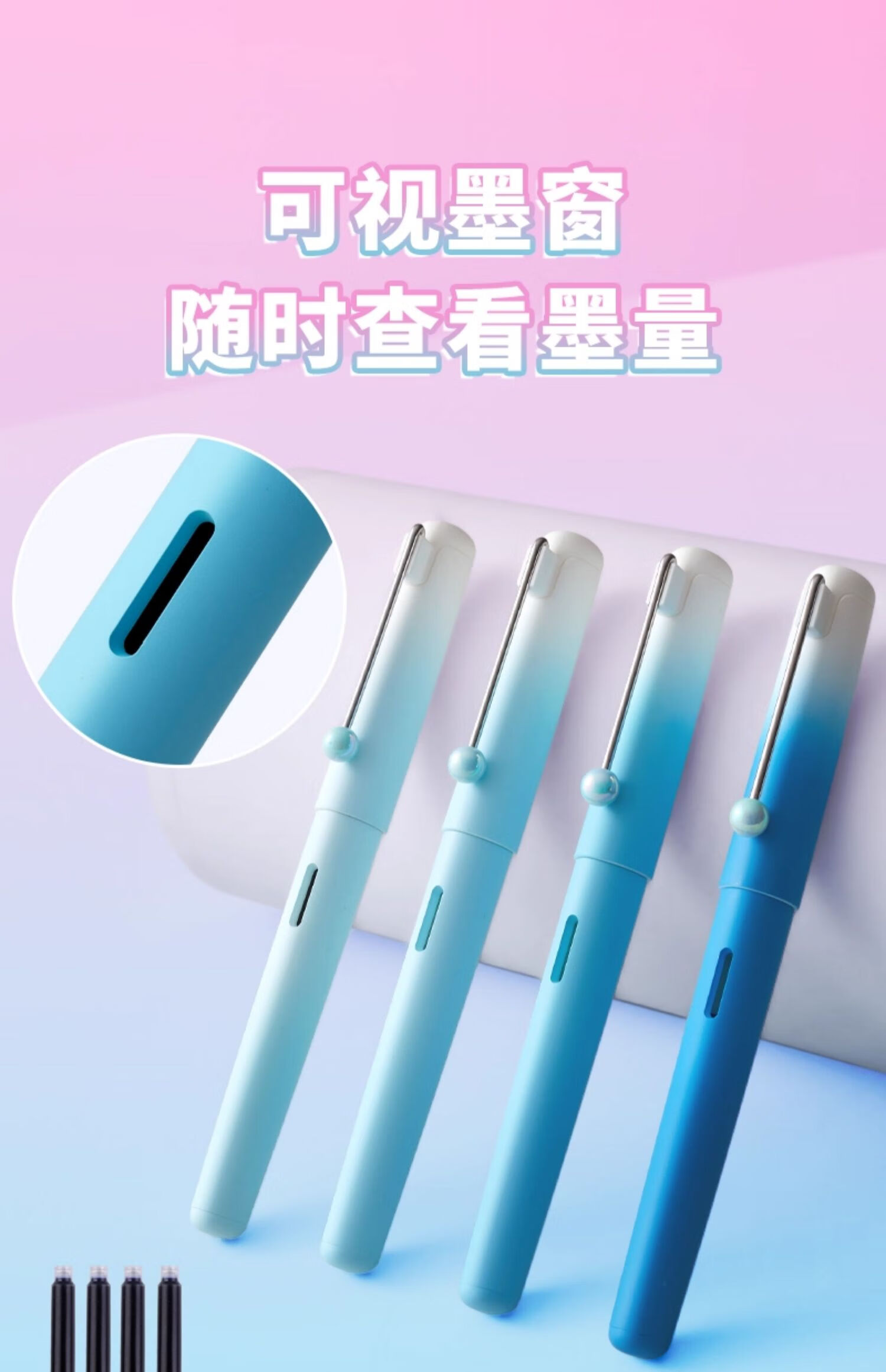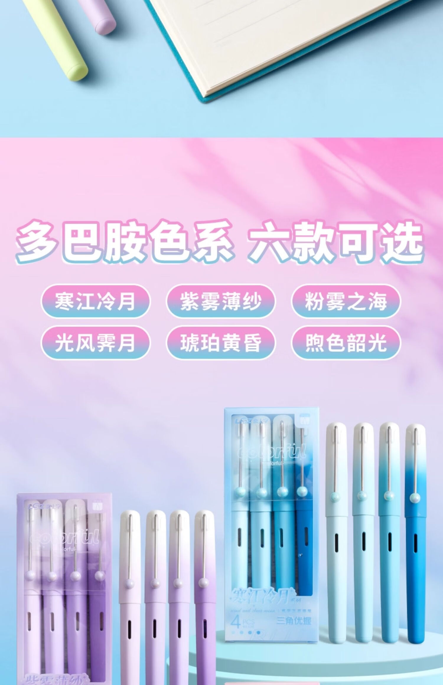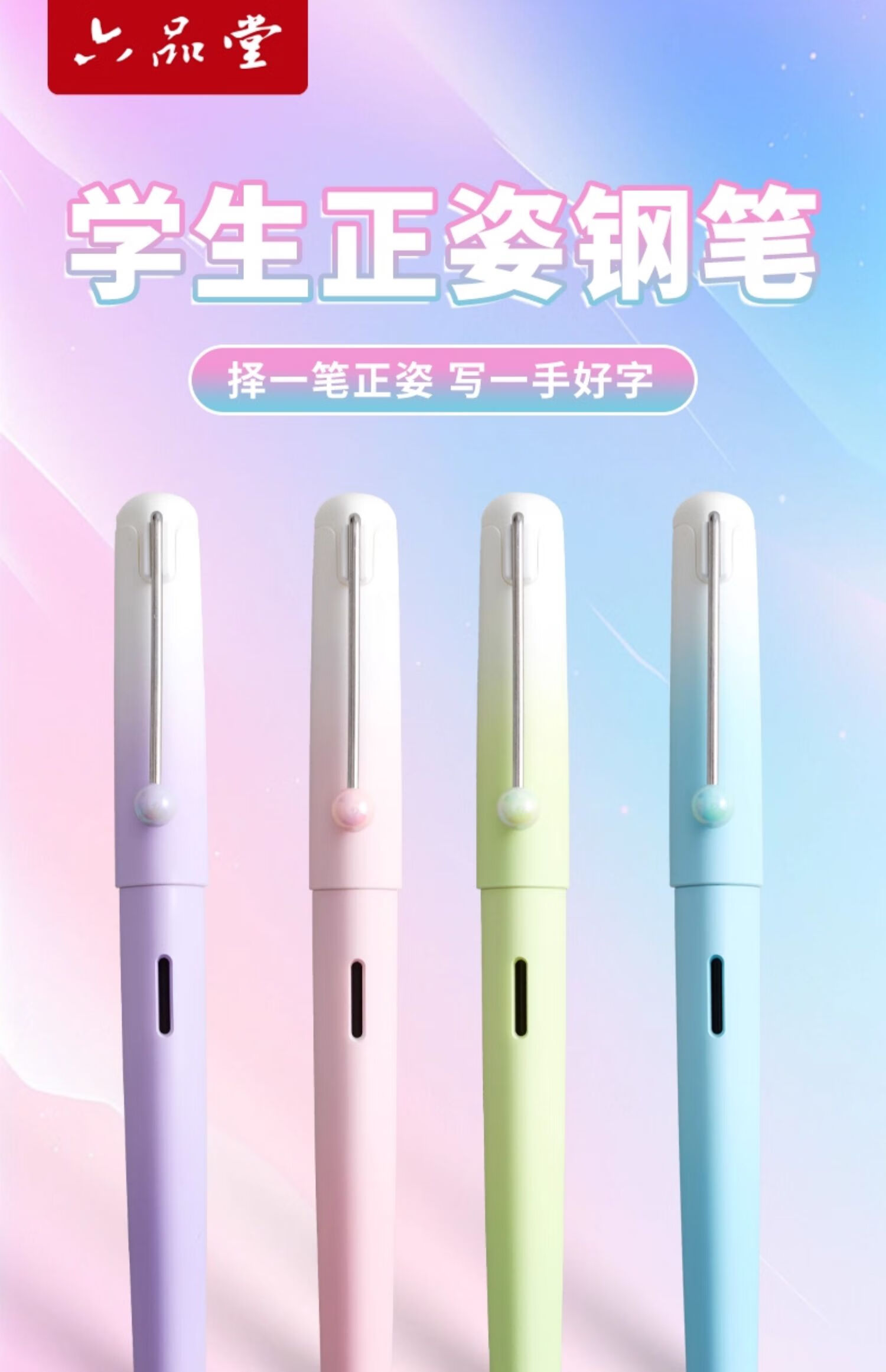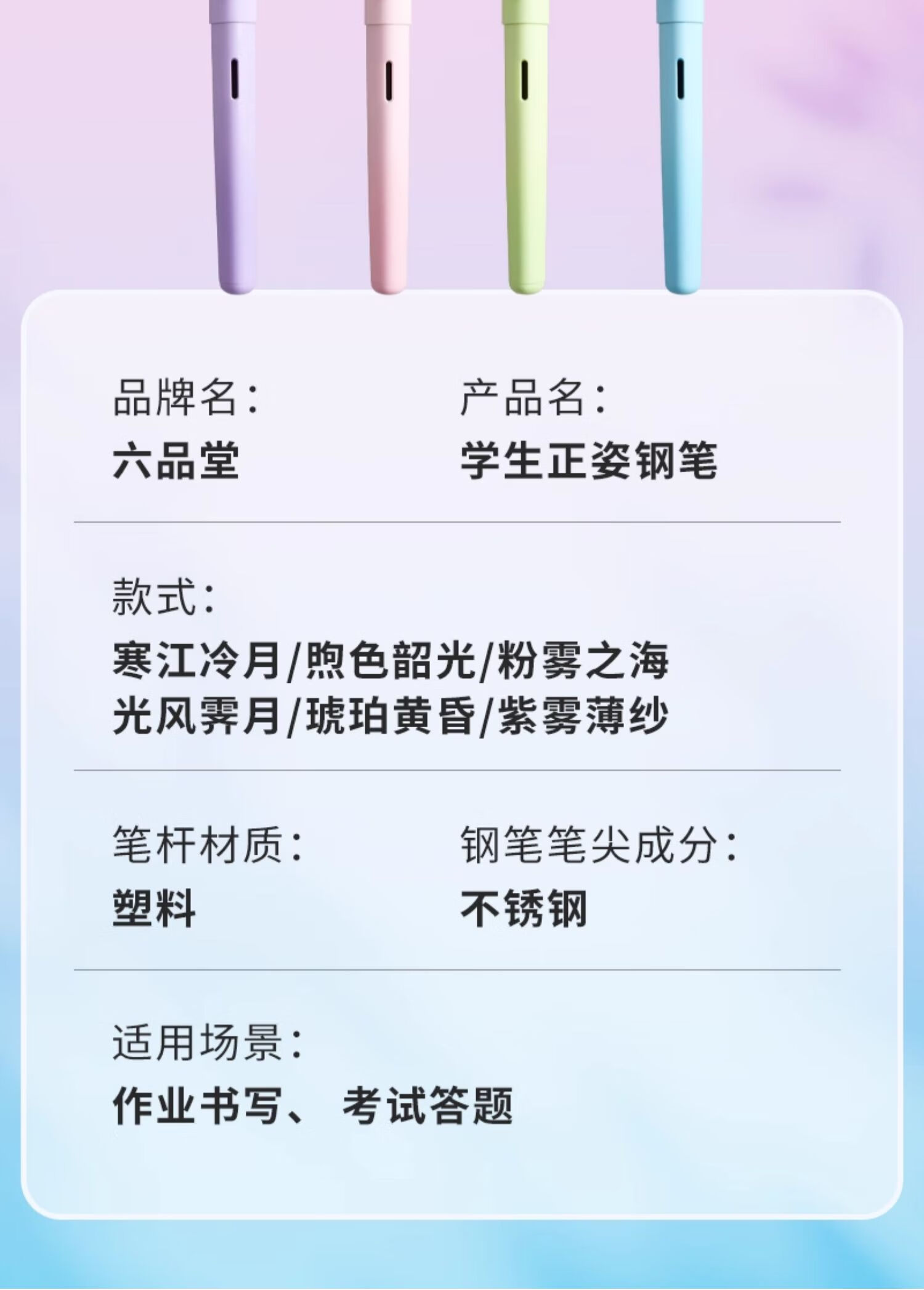 六品堂正姿钢笔钢笔小学生字帖练字专用可换墨囊渐变高颜值高档精致专用可换墨囊渐变高颜值高档精致 EF尖-三角优握钢笔-煦色韶光-粉