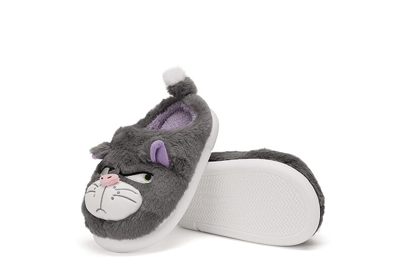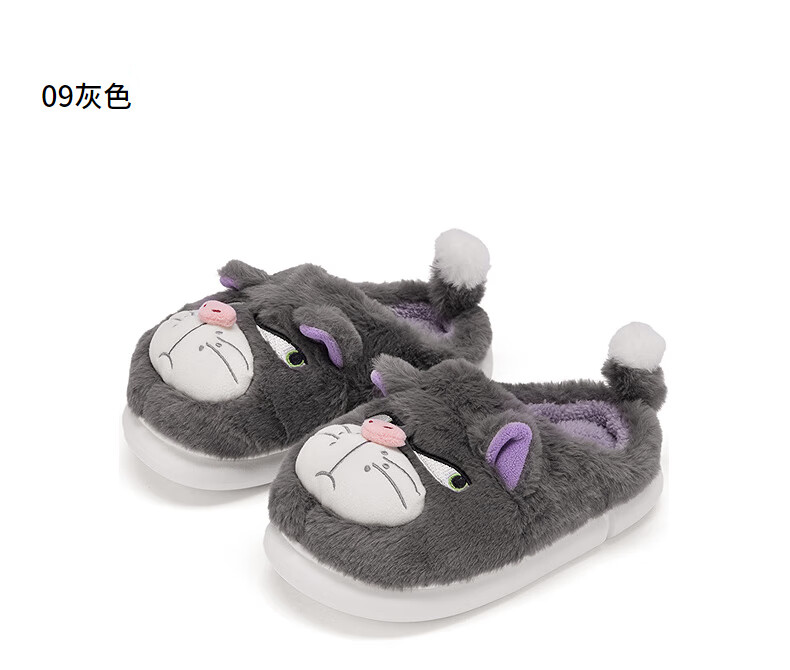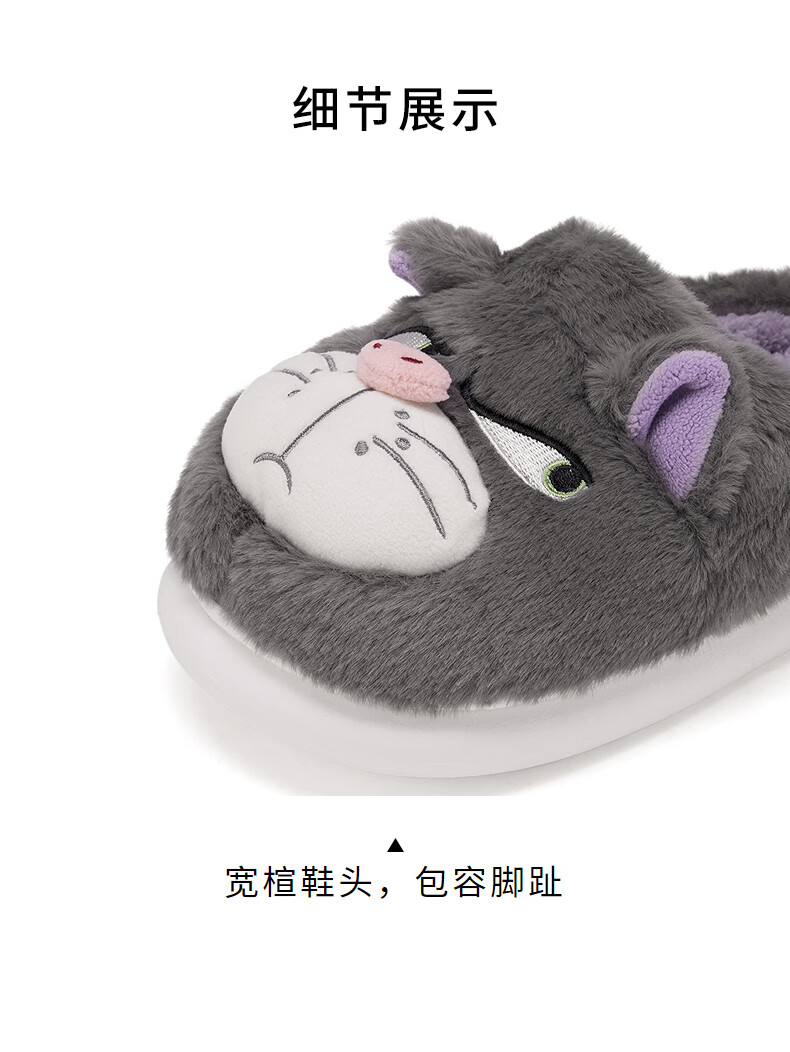 热风【迪士尼系列】加绒毛毛鞋2025年冬季新款卡通包头家居拖鞋 09灰色 38-39 M