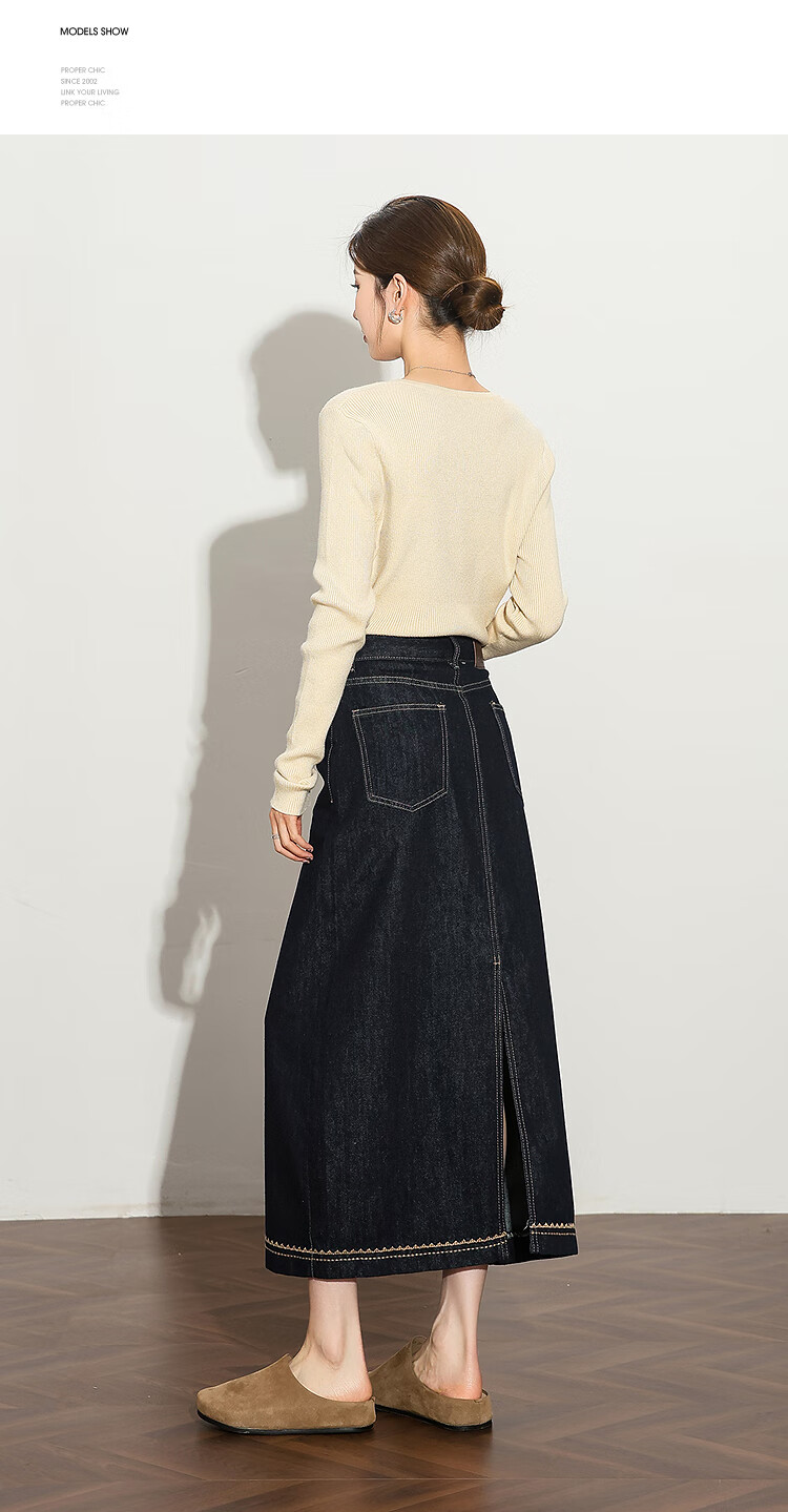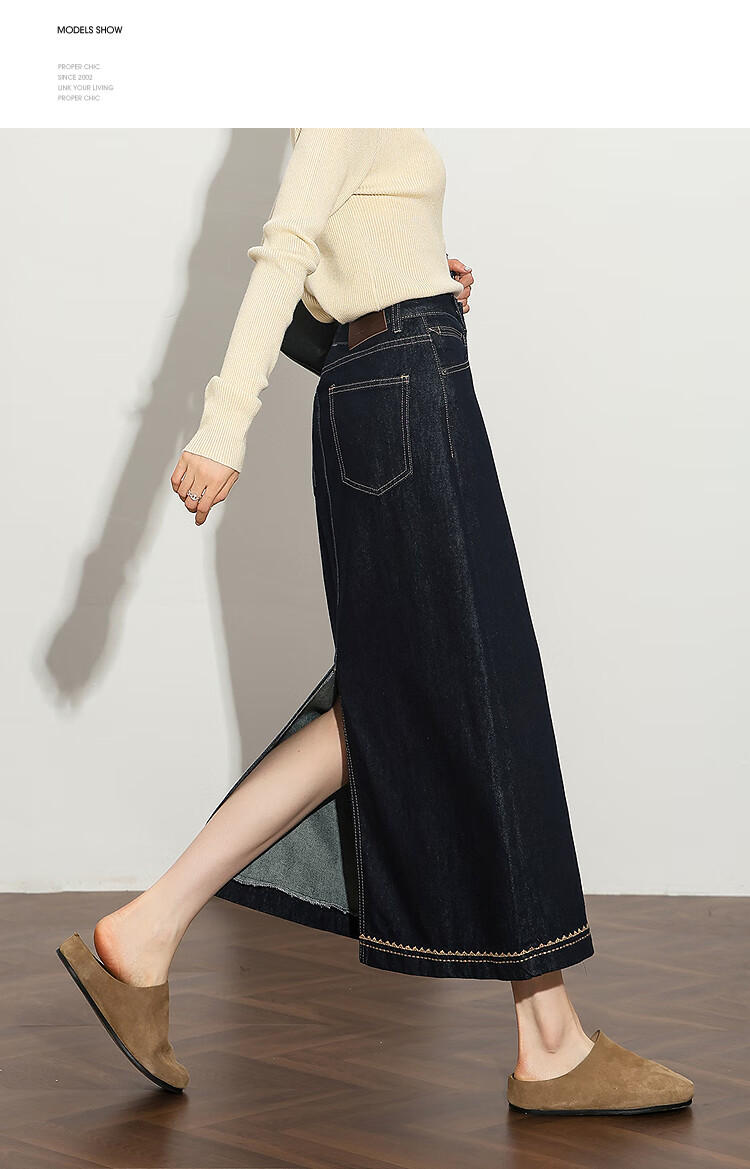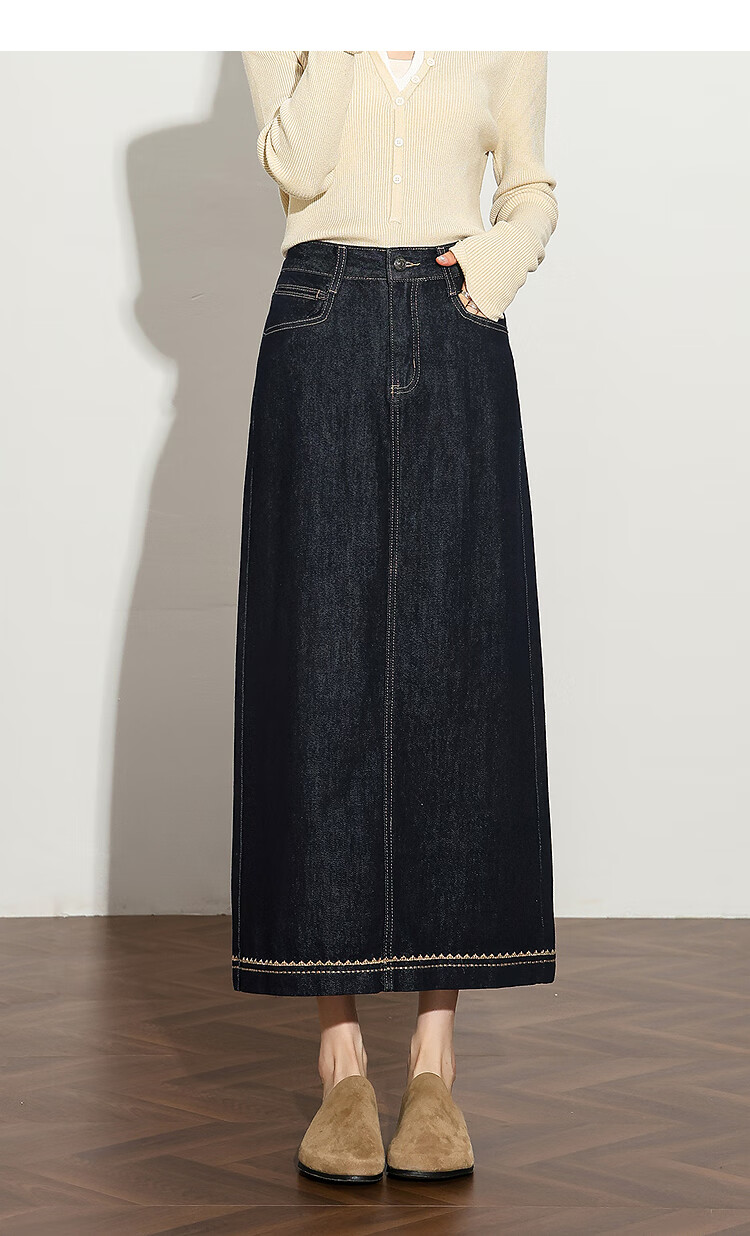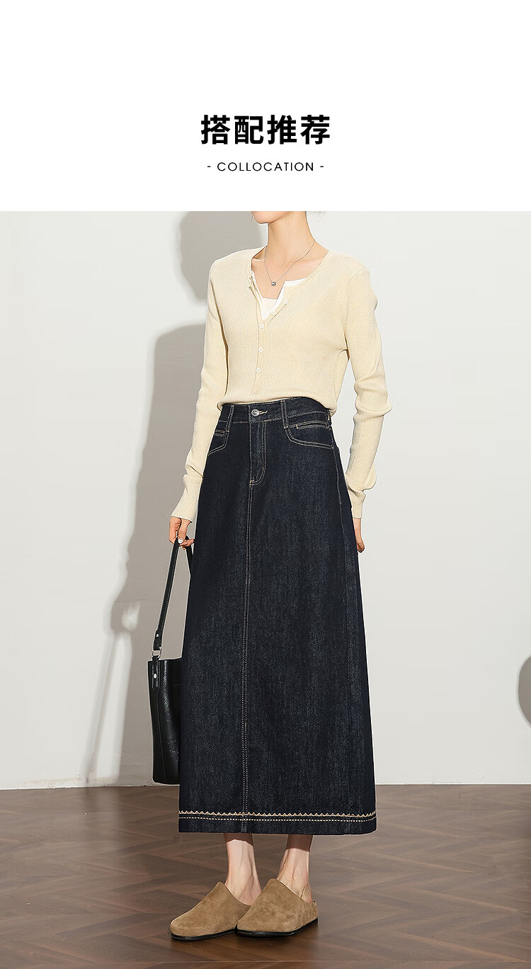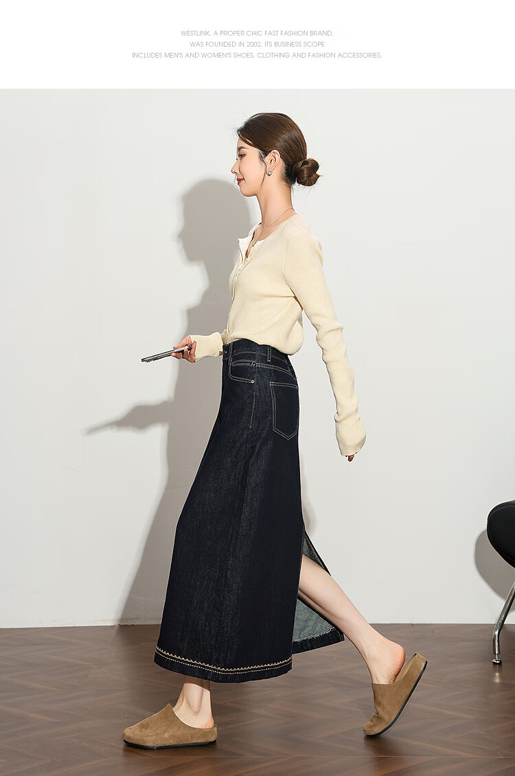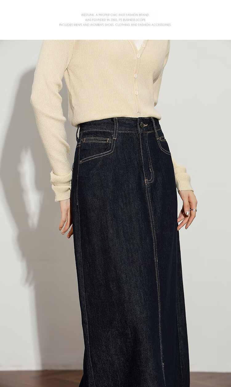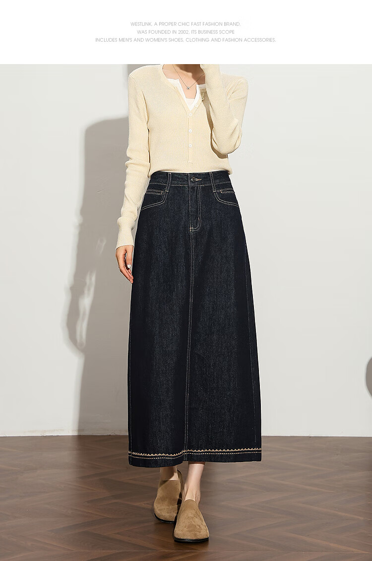 西遇复古气质优雅牛仔裙女2025秋季高腰显瘦通勤中长款直筒半身裙 蓝色 M (27)