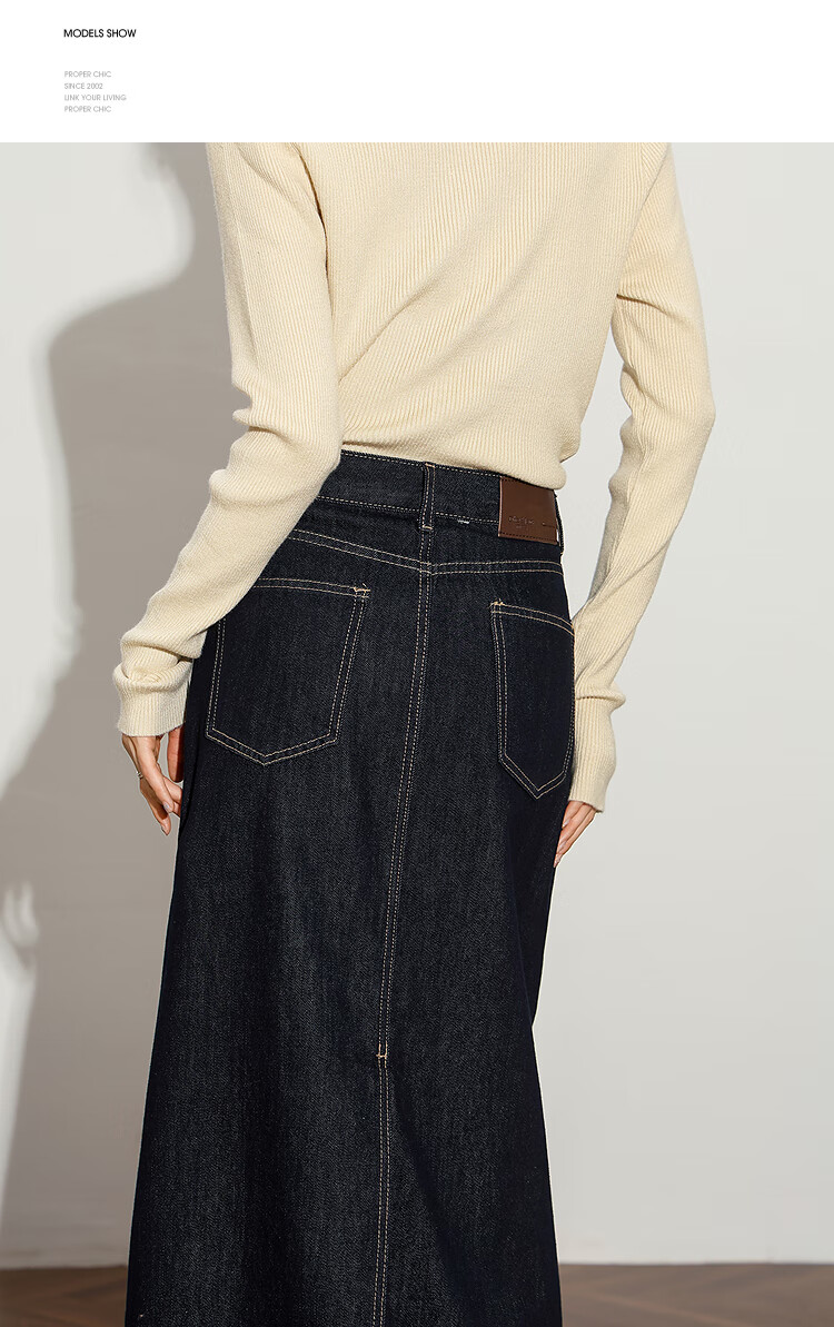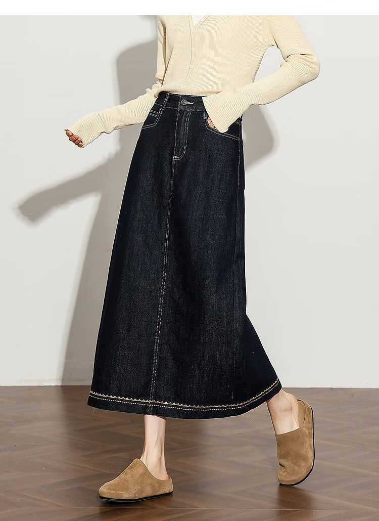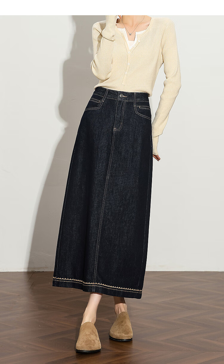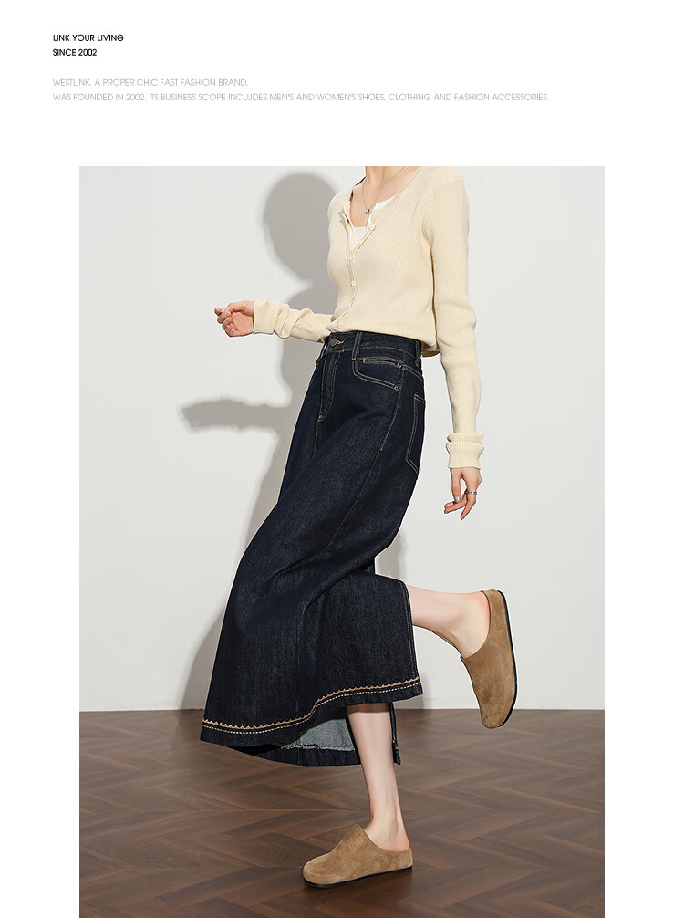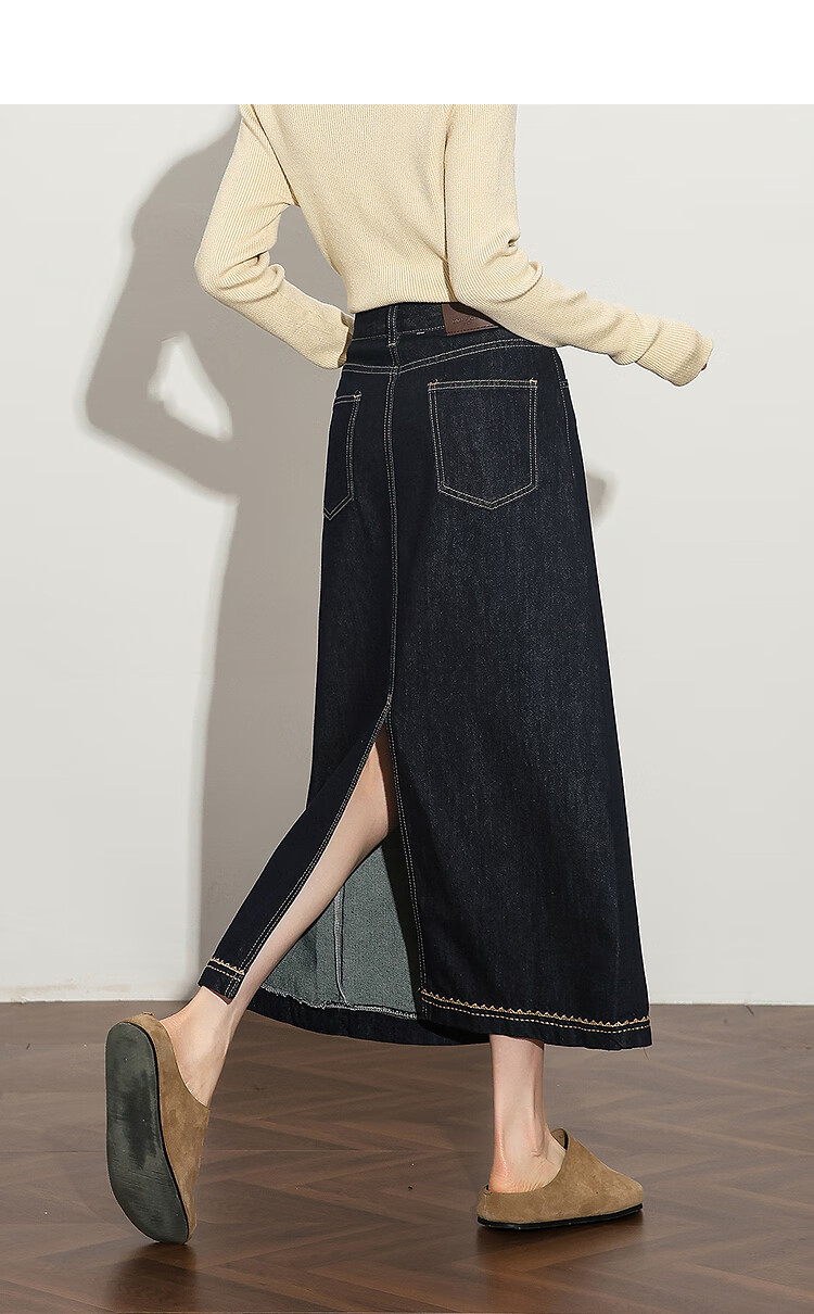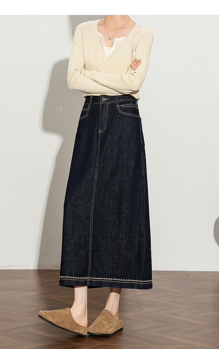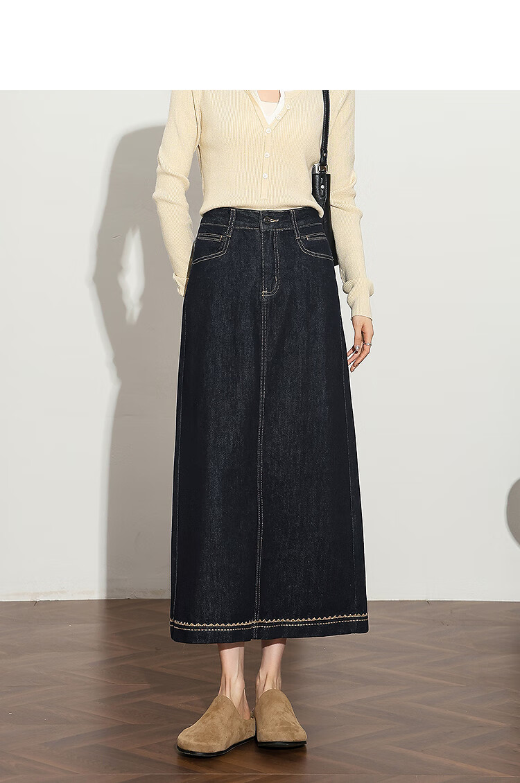 西遇复古气质优雅牛仔裙女2025秋季高腰显瘦通勤中长款直筒半身裙 蓝色 M (27)