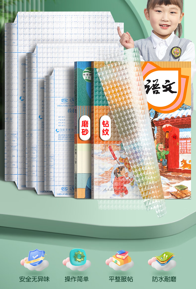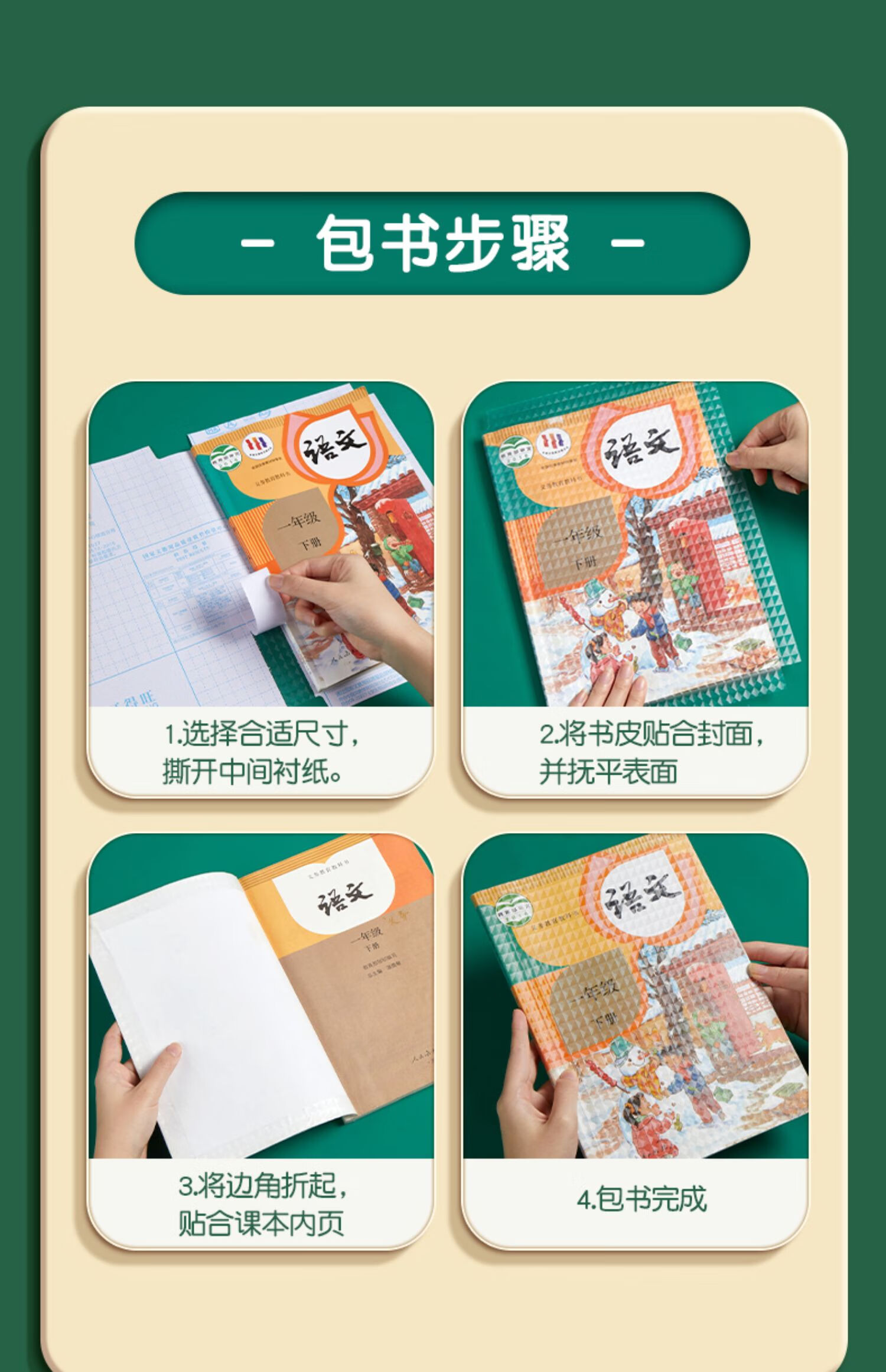 六品堂包书皮自粘透明磨砂加厚书皮书套包书膜16K书本A4课本保护套学生 全套钻纹【大10+中40+小10】共60