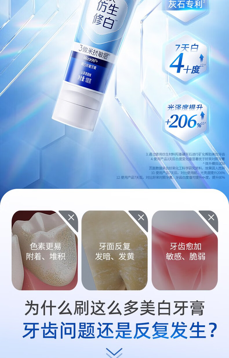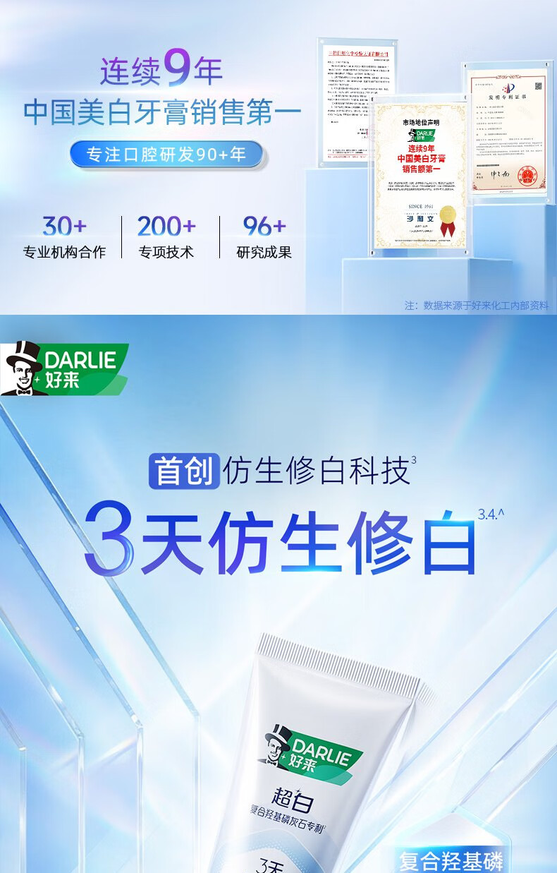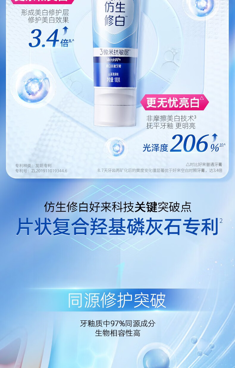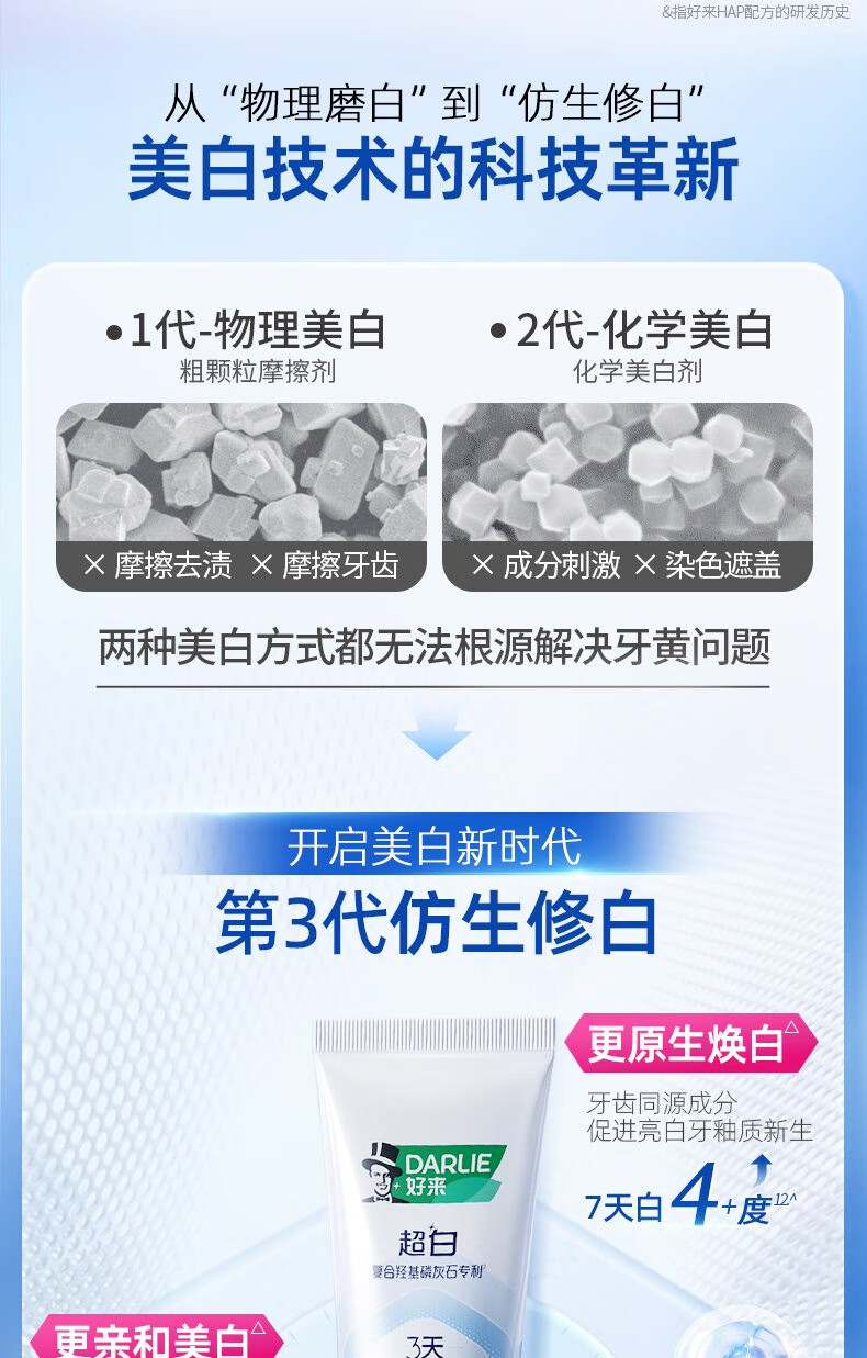 好来黑人超白仿生修白牙膏抗敏感成人防蛀美亮白牙齿去牙渍清新含氟 仿生修白牙膏100g