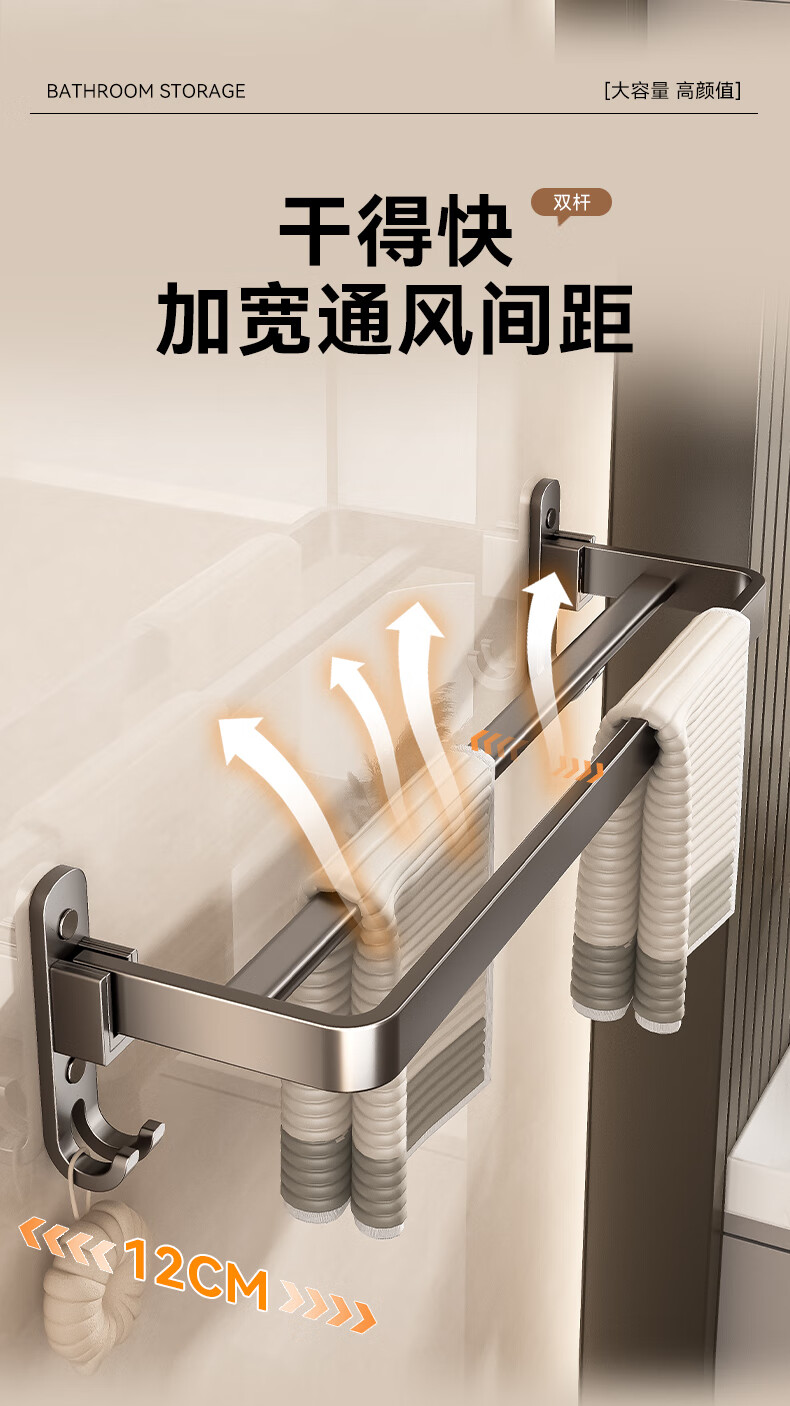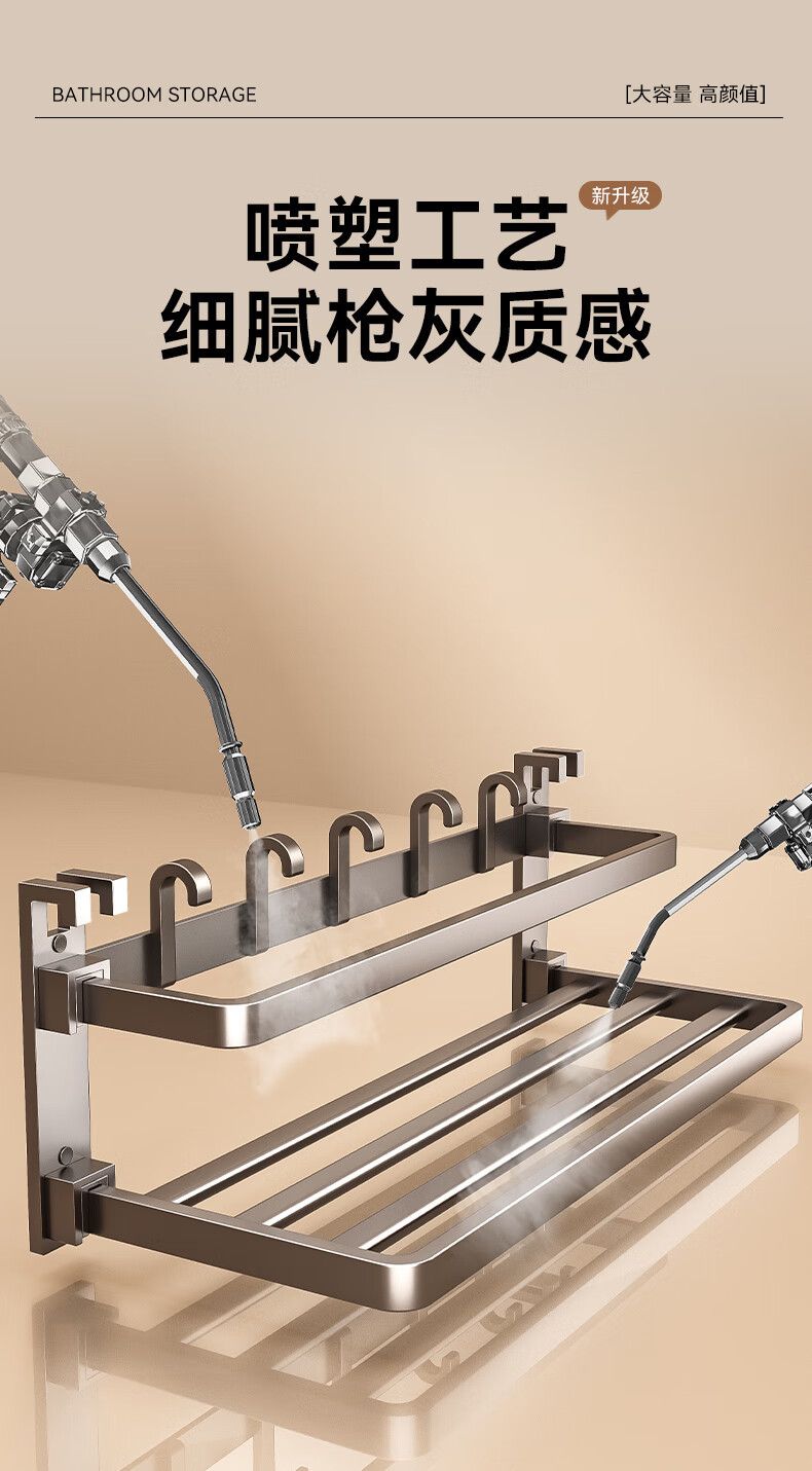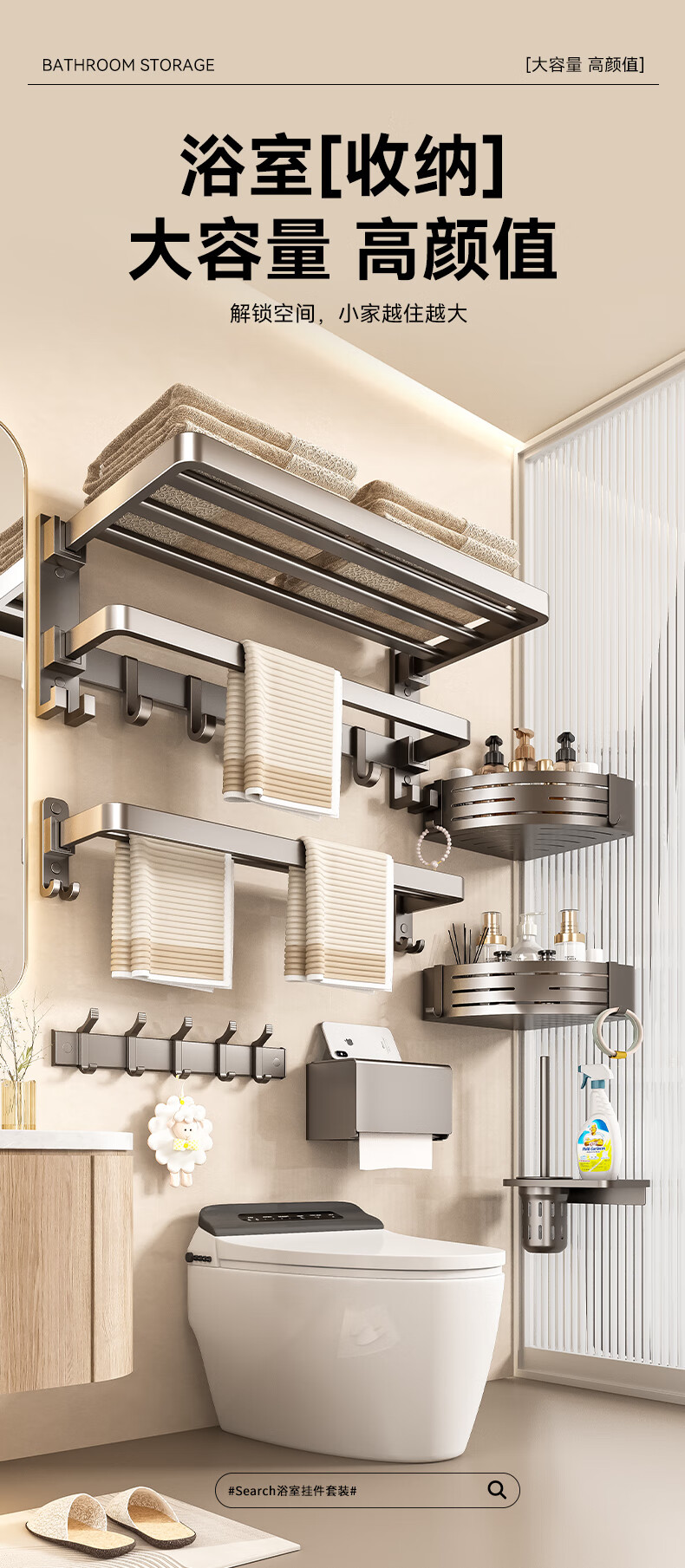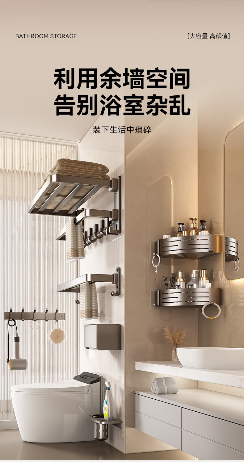 百悍毛巾架免打孔卫生间置物架浴室挂件厕所浴巾架套装卫浴洗手间收纳