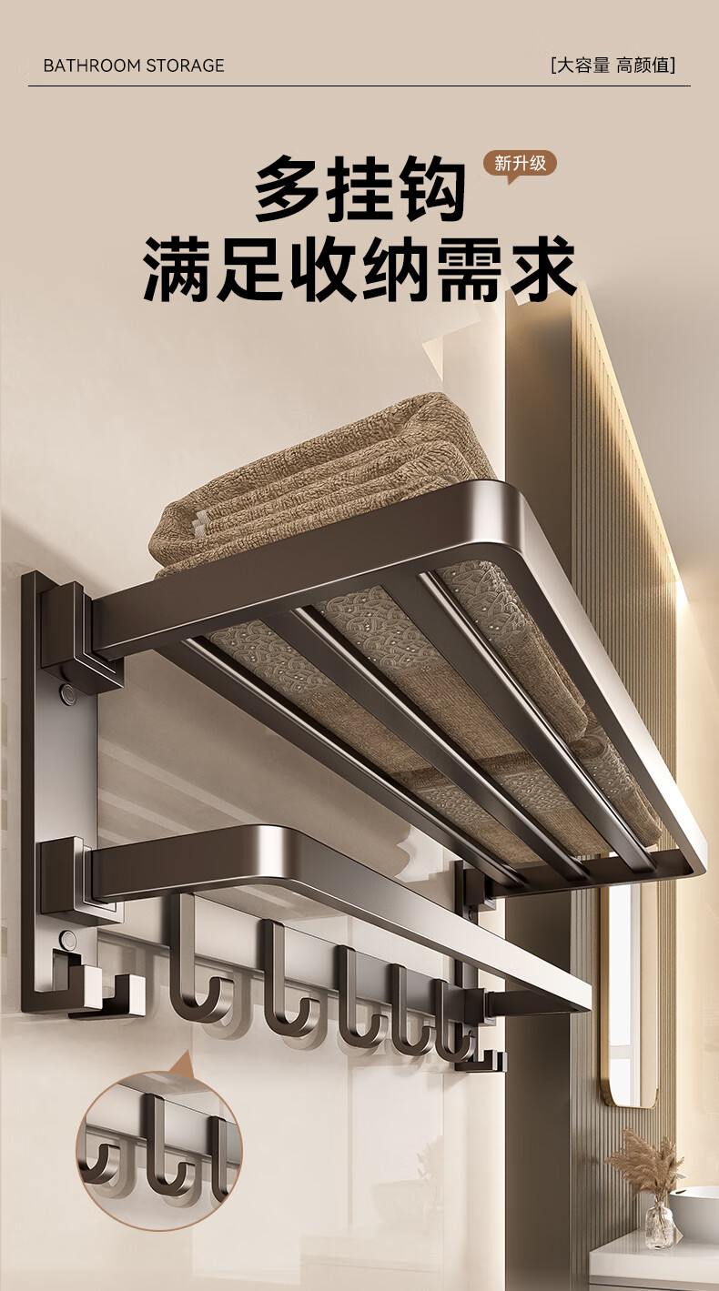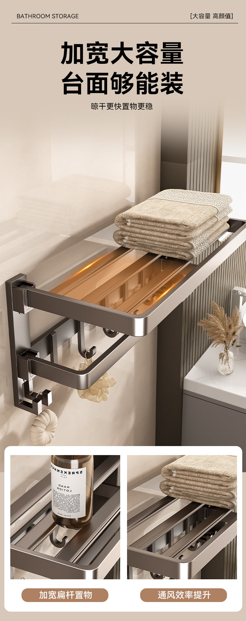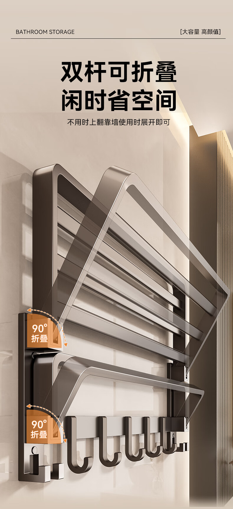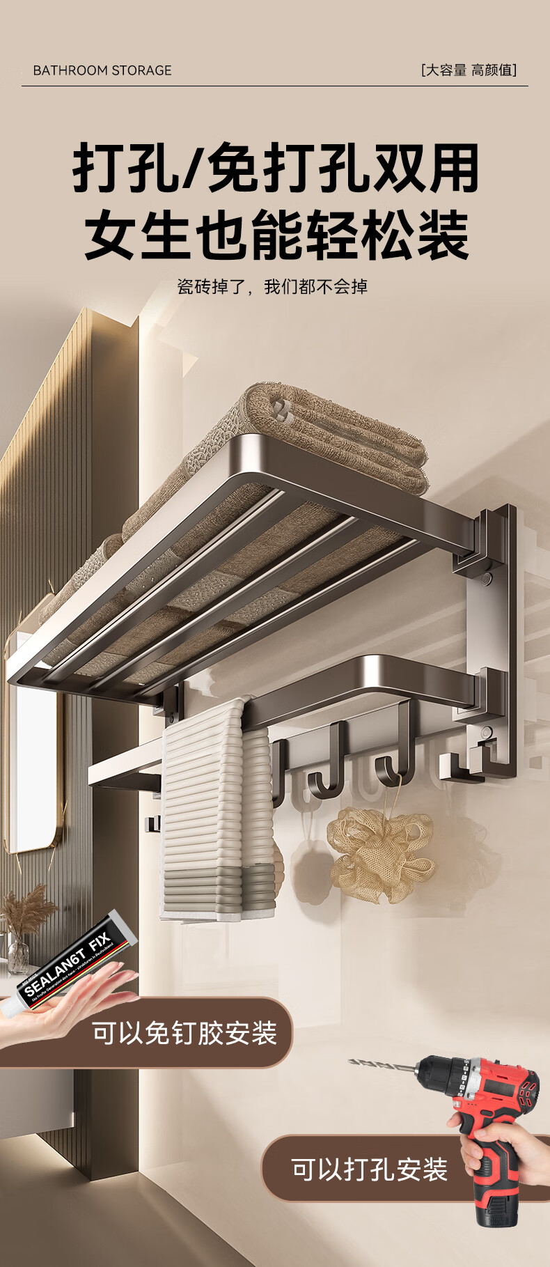 百悍毛巾架免打孔卫生间置物架浴室挂件厕所浴巾架套装卫浴洗手间收纳