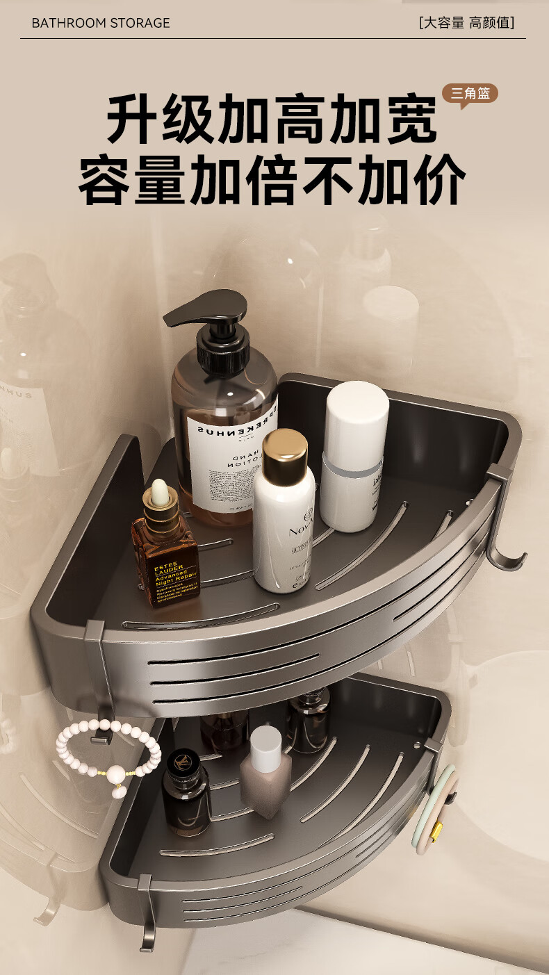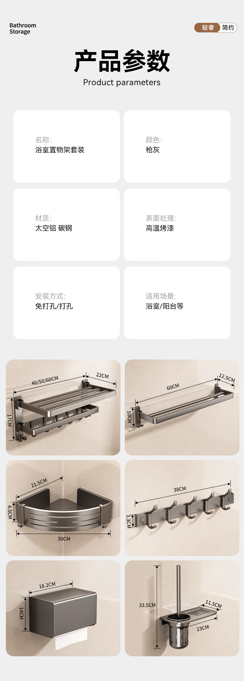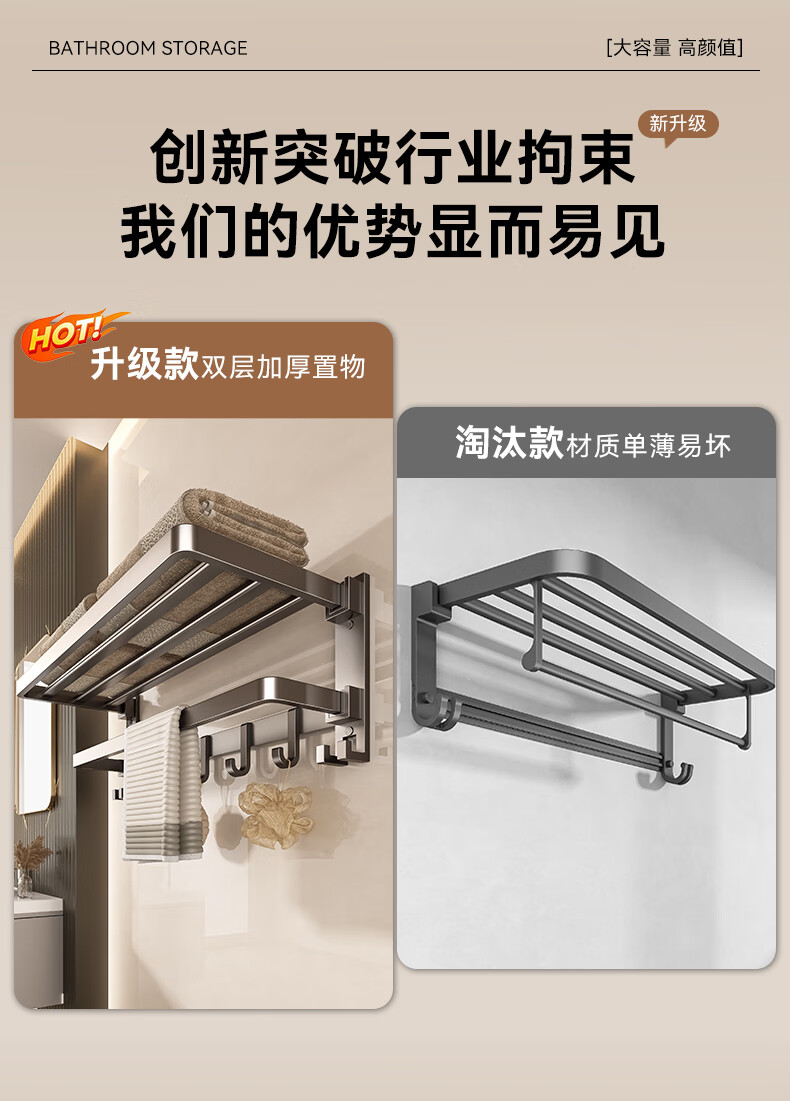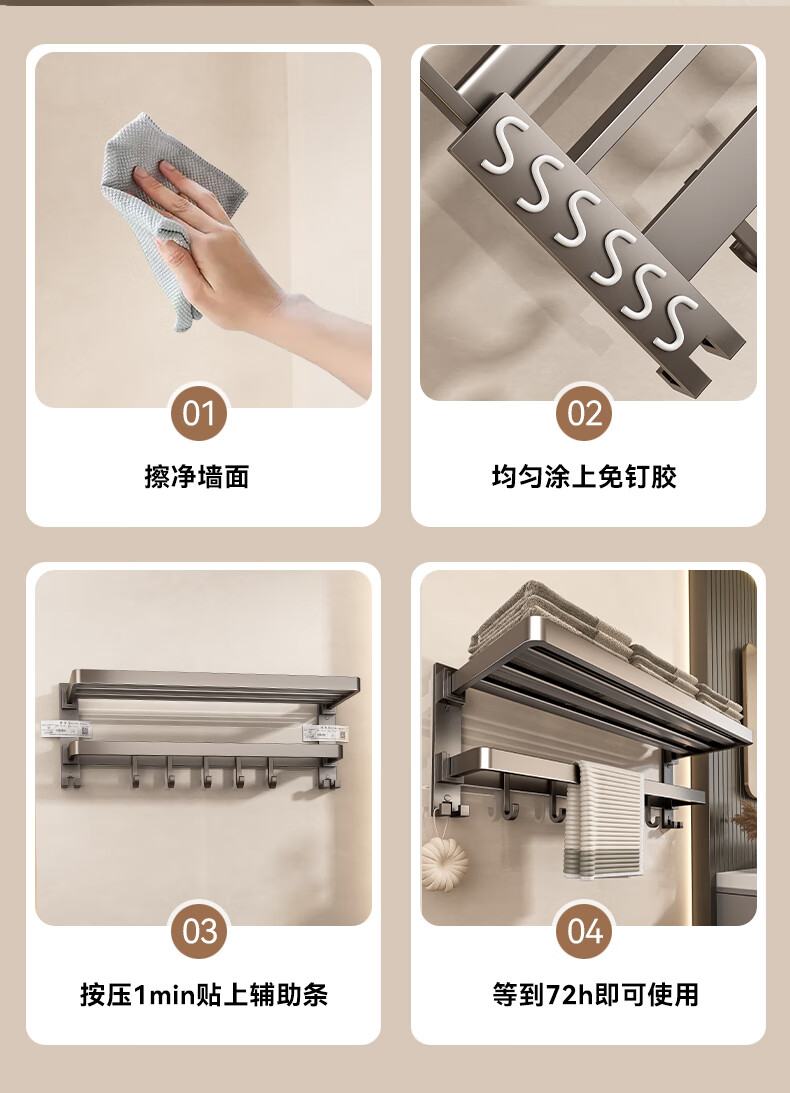 百悍毛巾架免打孔卫生间置物架浴室挂件厕所浴巾架套装卫浴洗手间收纳