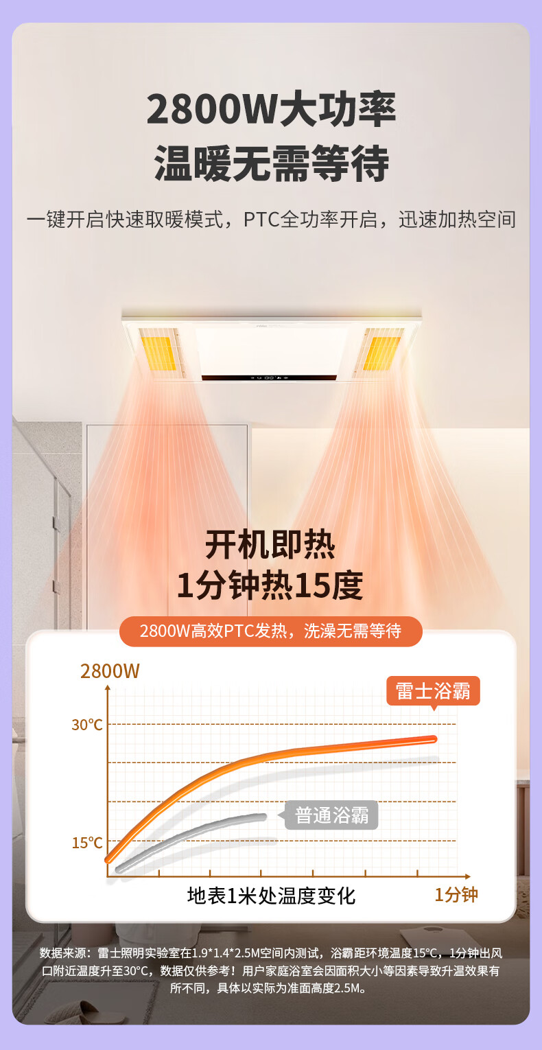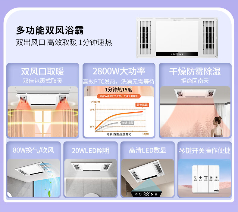 雷士(NVC)自由暖双出风浴霸暖风照明排气一体卫生间浴室换气扇速热风暖浴霸 【热卖榜推荐】2800W速热+双出风