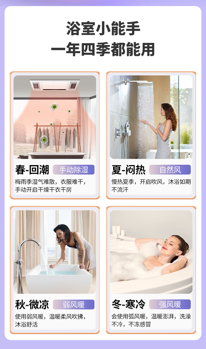 海尔风暖浴霸正方形小型暖风照明排气一体集成吊顶室内暖风机浴霸F330
