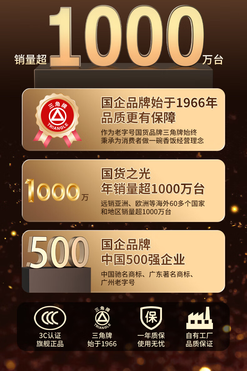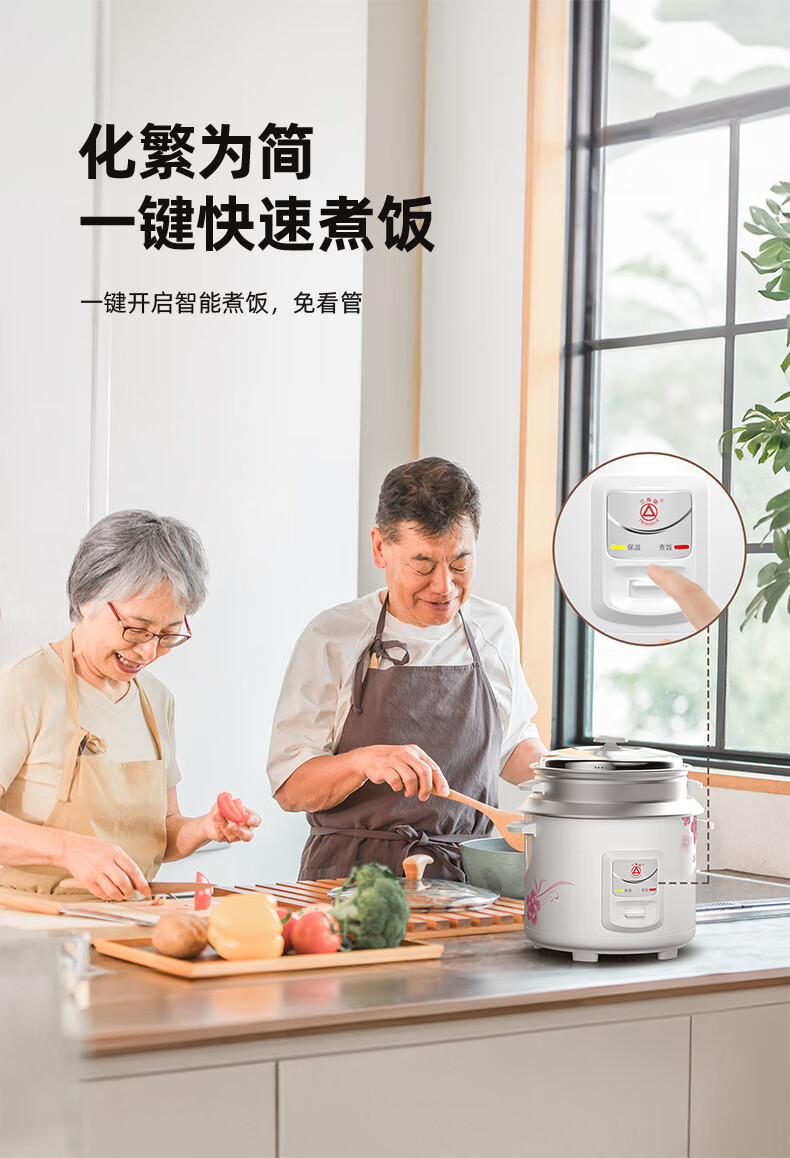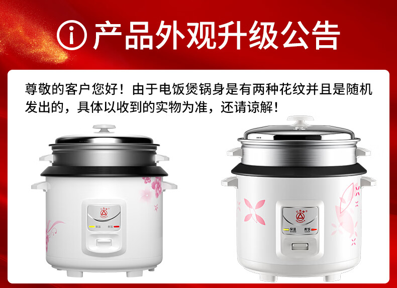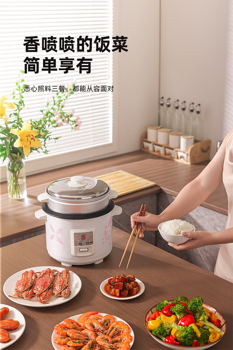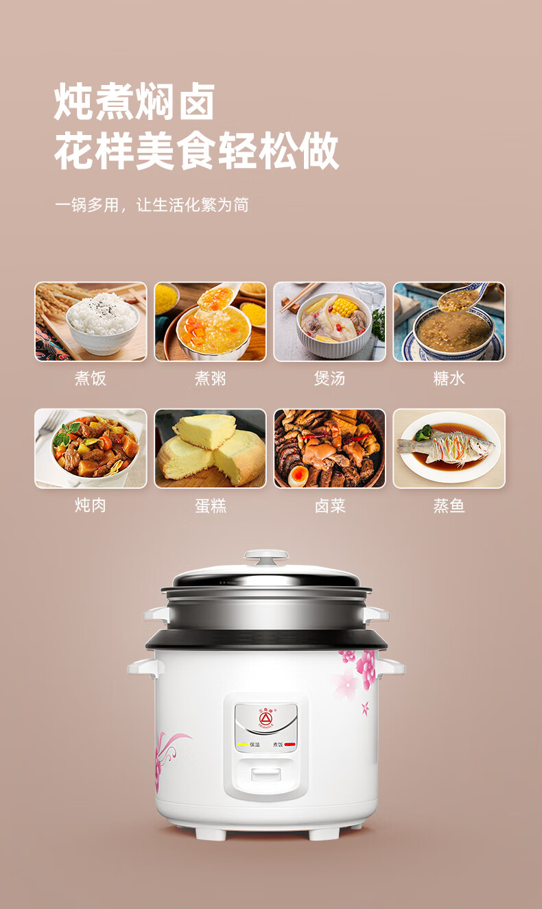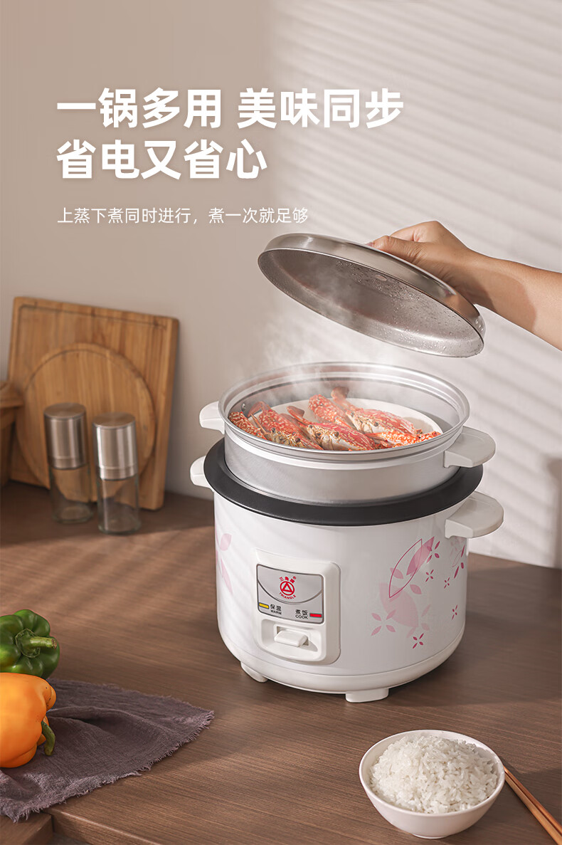 三角牌(Triangle)电饭煲5L大容量电饭锅家用老式电饭煲不粘内胆煮饭锅带蒸笼米饭锅4-5人用 TG-Z50X18J