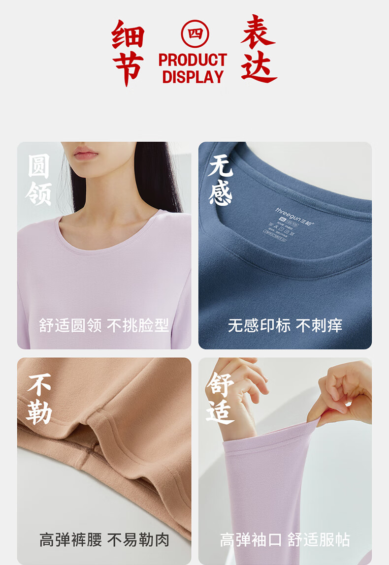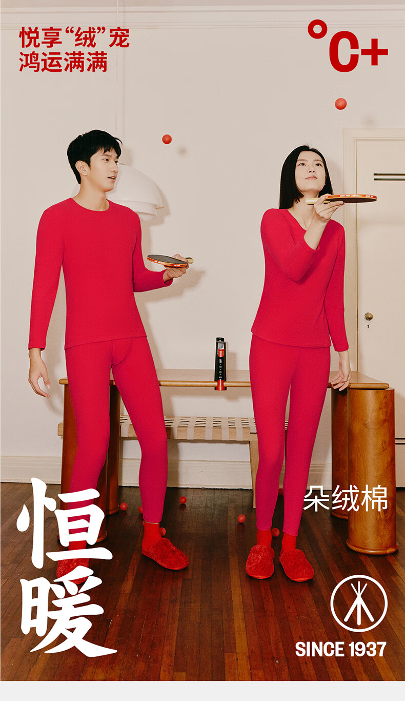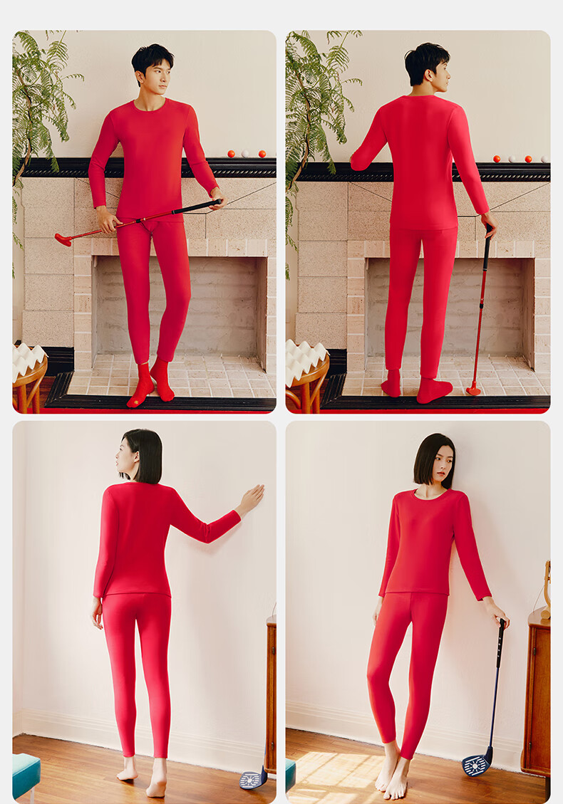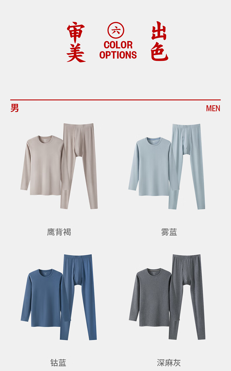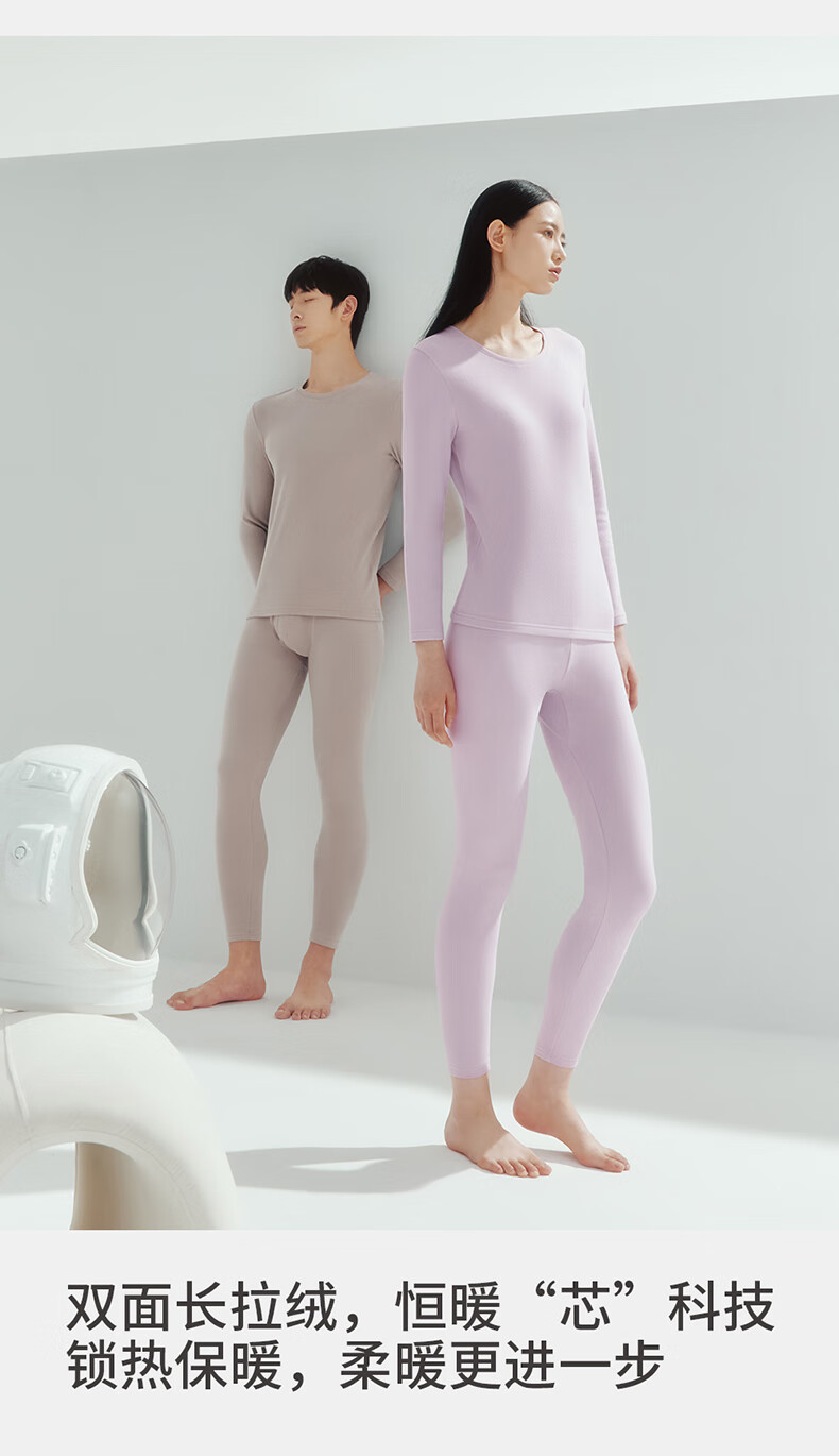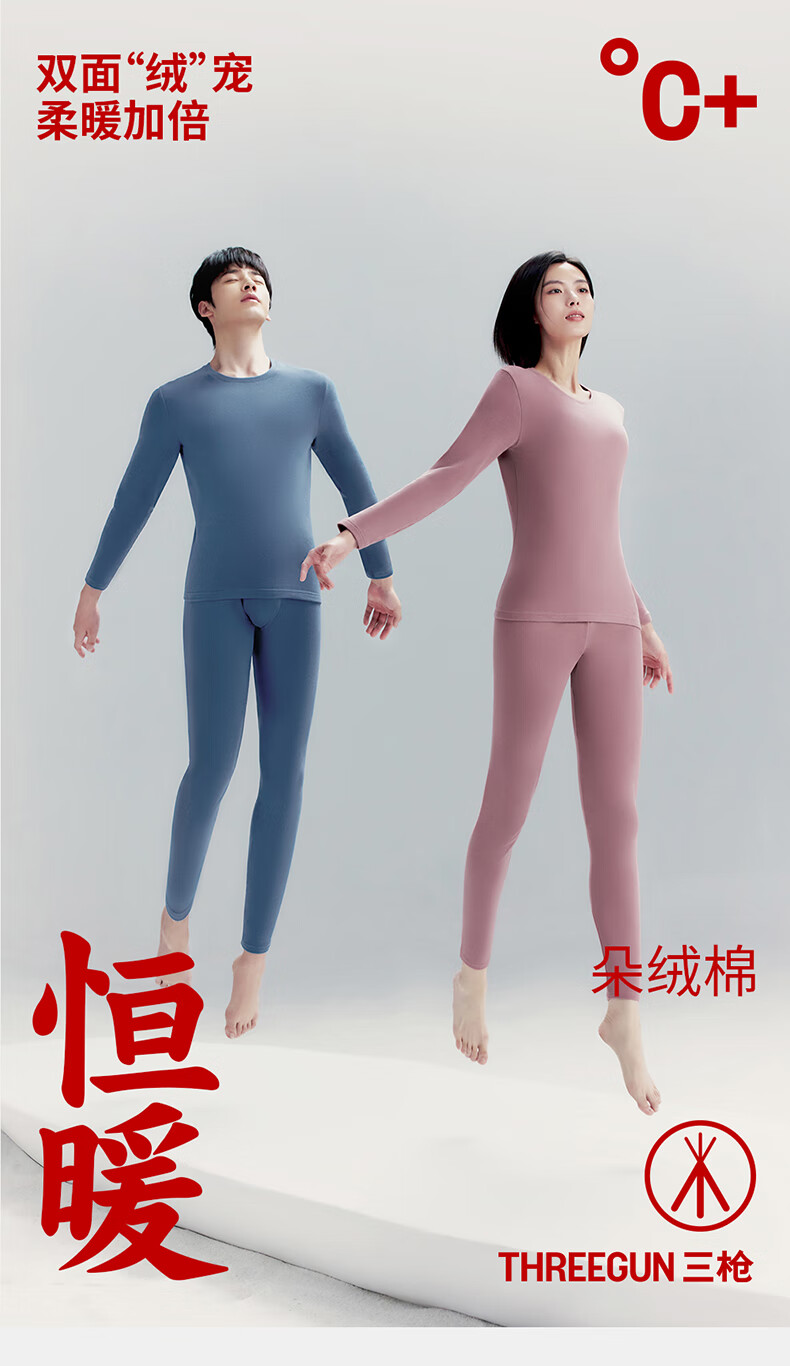 三枪【双面拉绒】保暖内衣男套装朵绒棉抗菌高弹圆领秋衣秋裤套