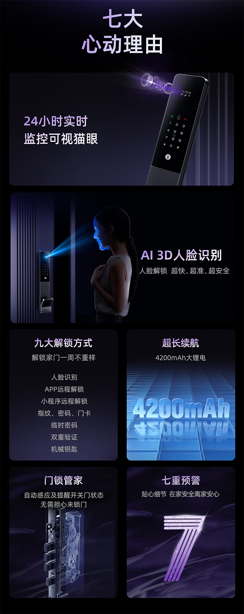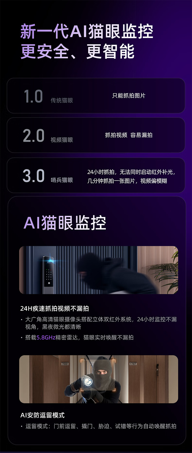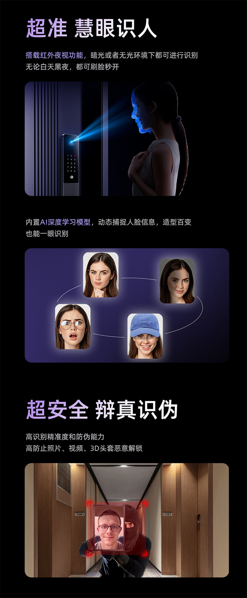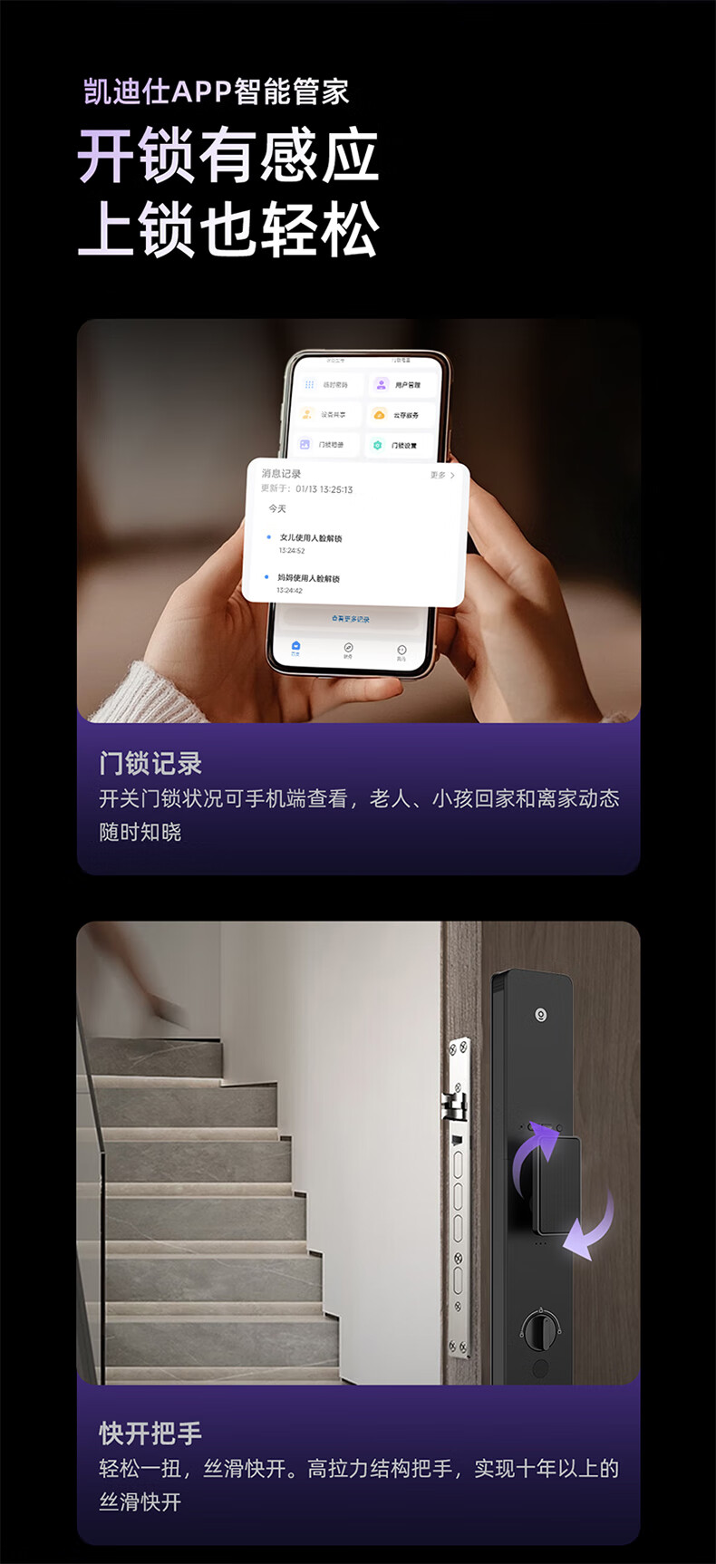 凯迪仕(kaadas)智能锁 猫眼监控摄像指纹锁 3D人脸识别智能门锁 国家补贴 S260FV
