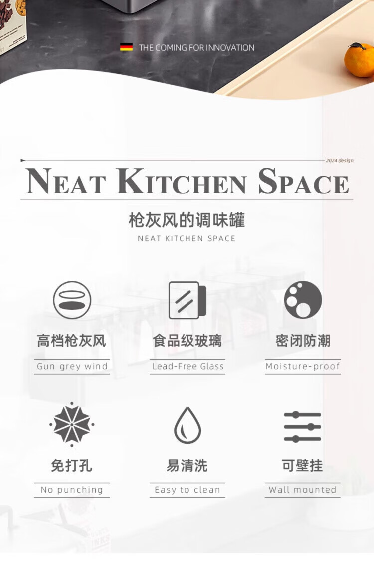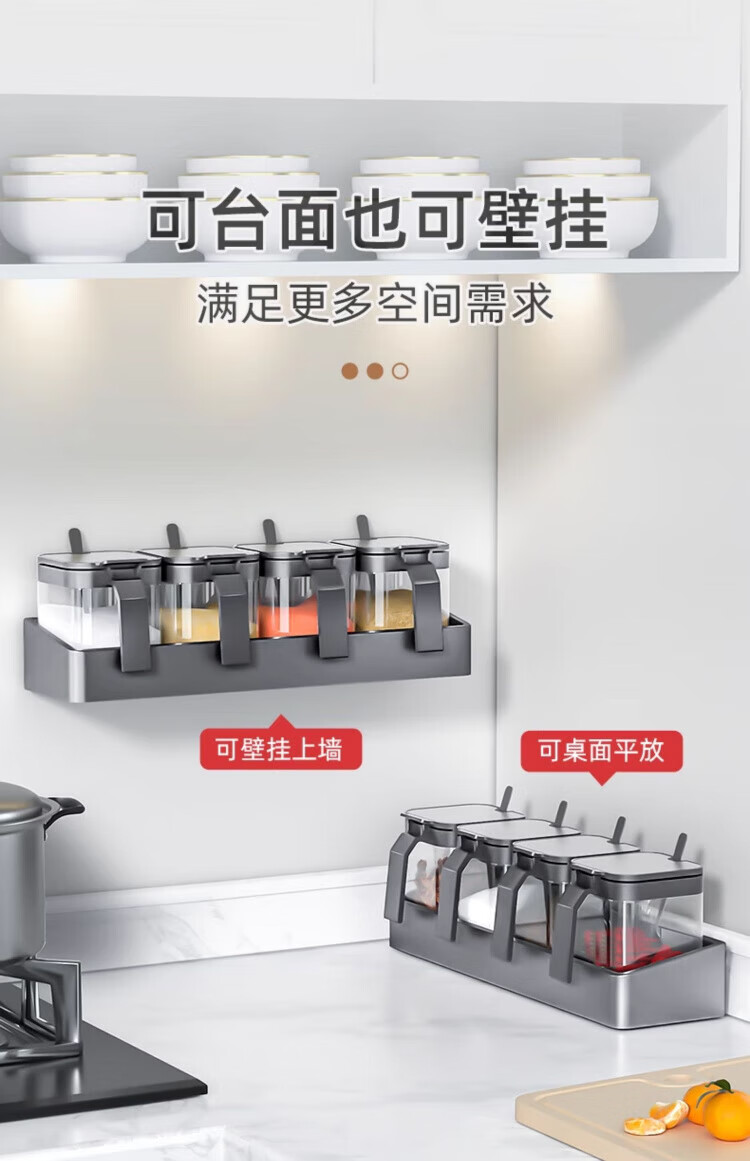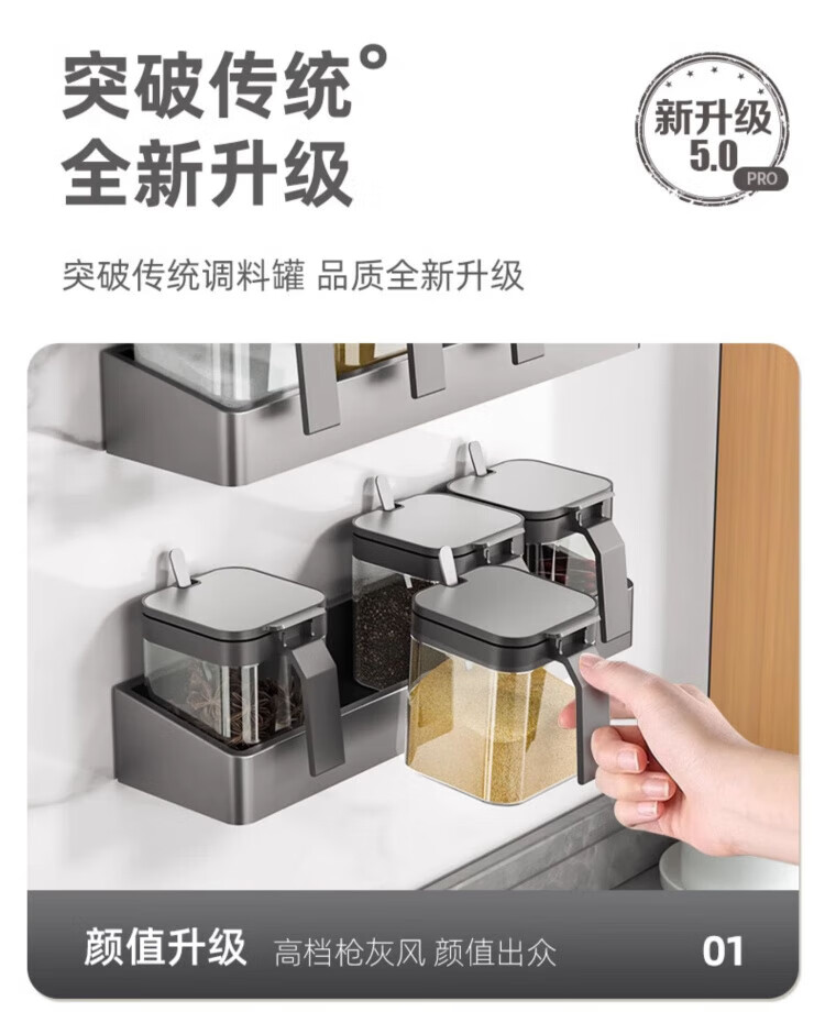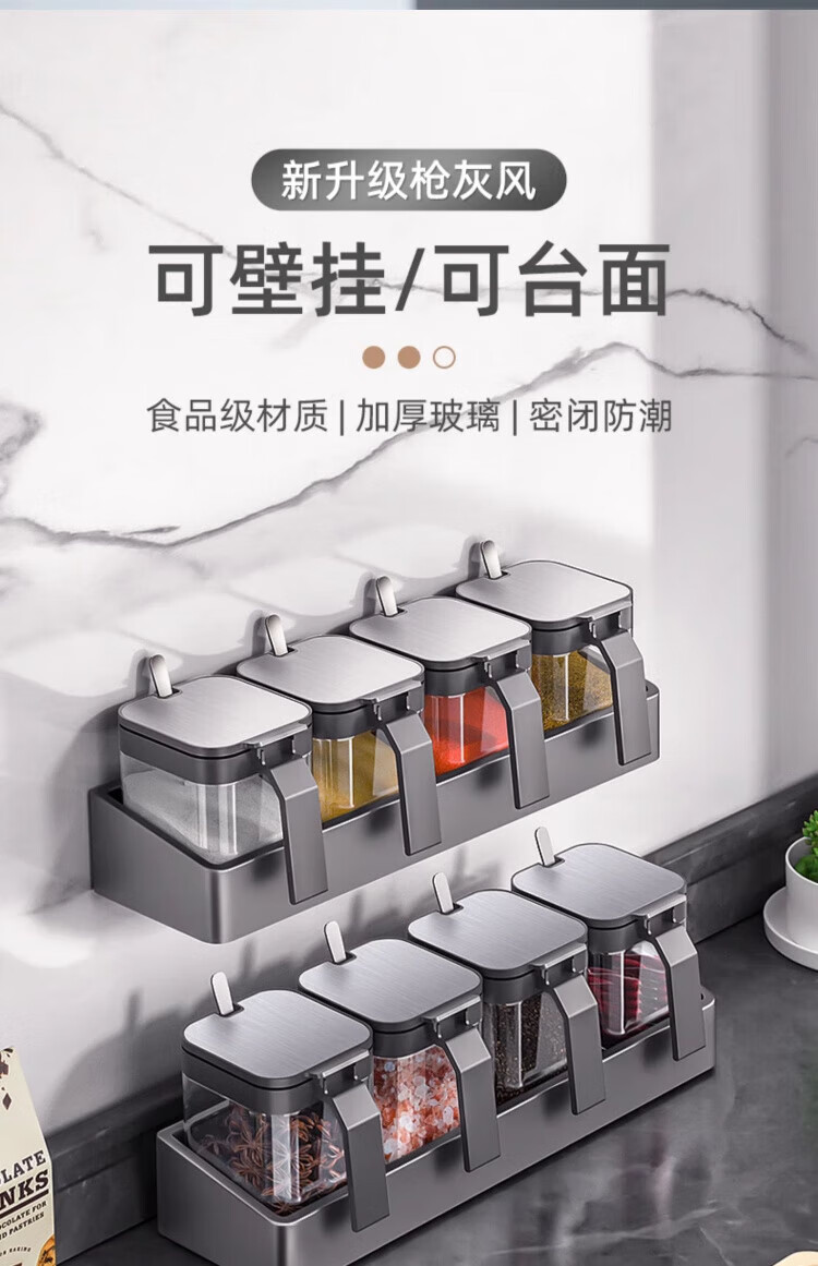 WCZ德国品牌调料盒厨房家用置物架组合套装调味罐瓶收纳墙挂式壁盐罐 枪灰色五件套*4+不锈钢置物架*1