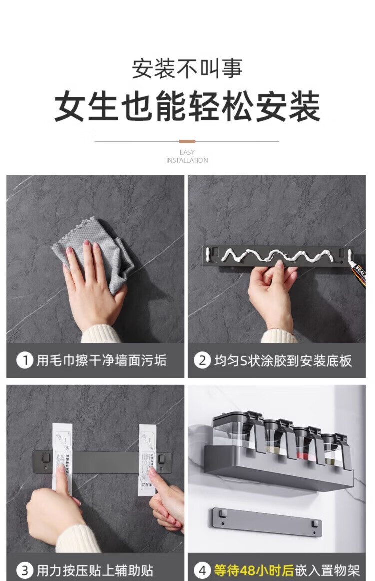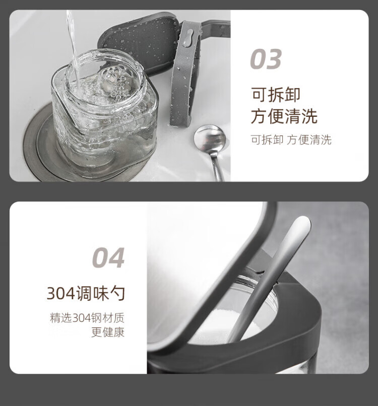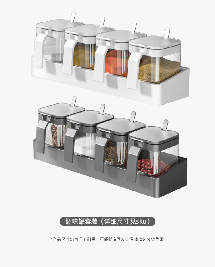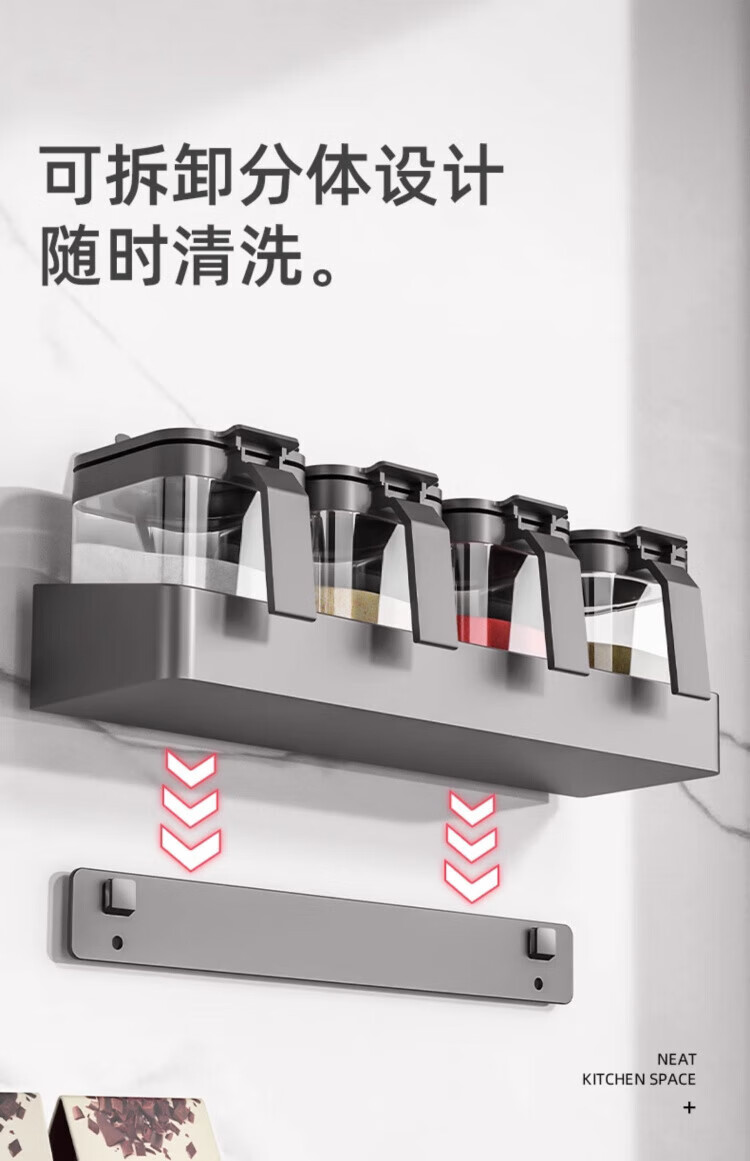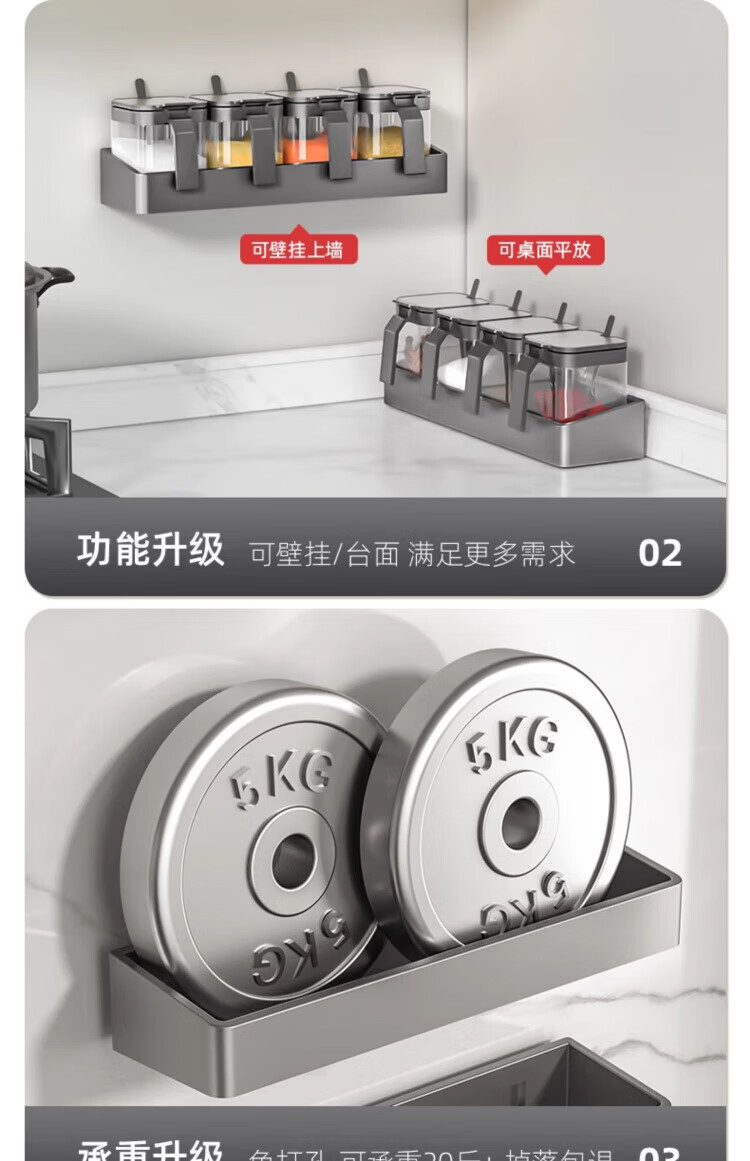 WCZ德国品牌调料盒厨房家用置物架组合套装调味罐瓶收纳墙挂式壁盐罐 枪灰色五件套*4+不锈钢置物架*1
