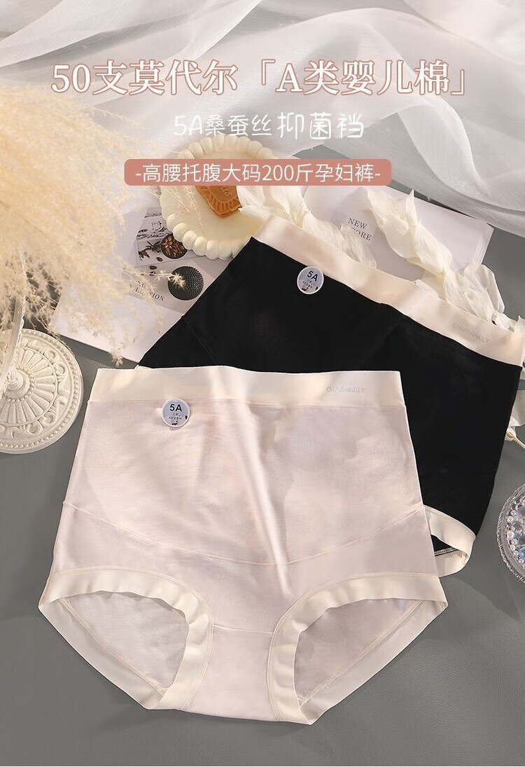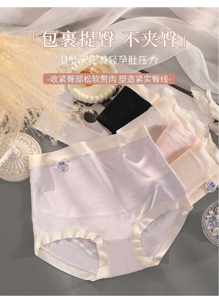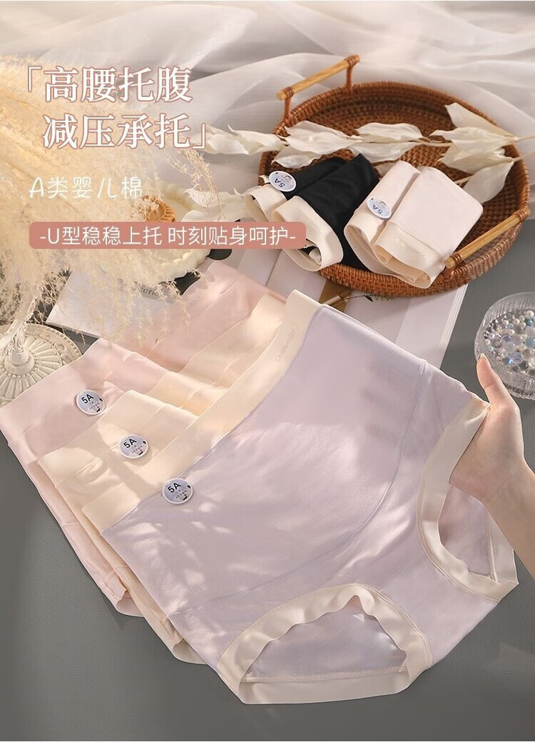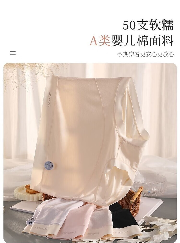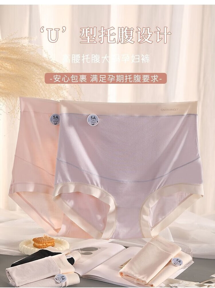 AILUKI夏孕妇内裤女莫代尔棉高腰托腹无痕透气薄款怀孕胖mm大码孕中晚期 樱粉+奶咖+黑色 XL-建议【90-130斤】