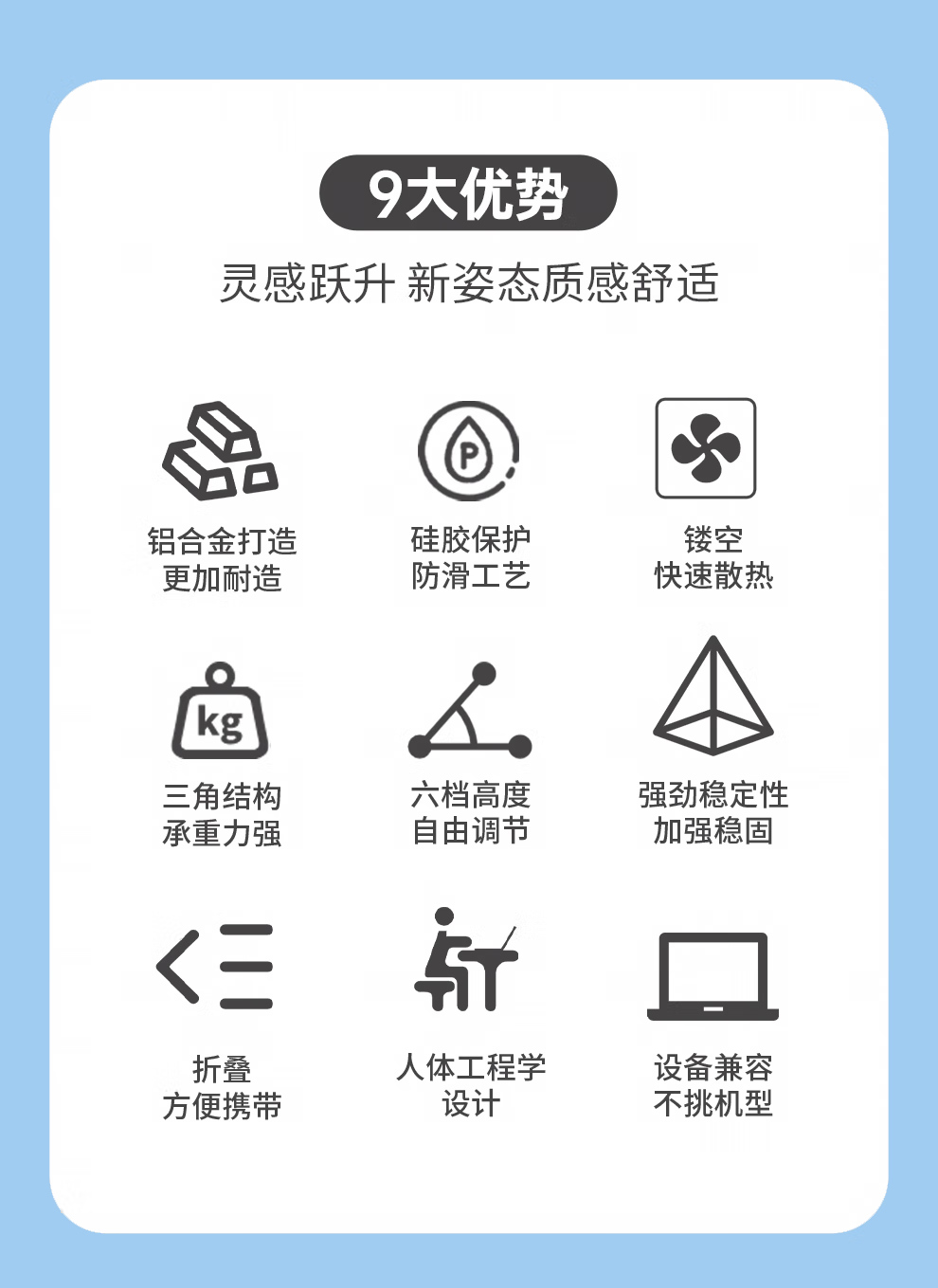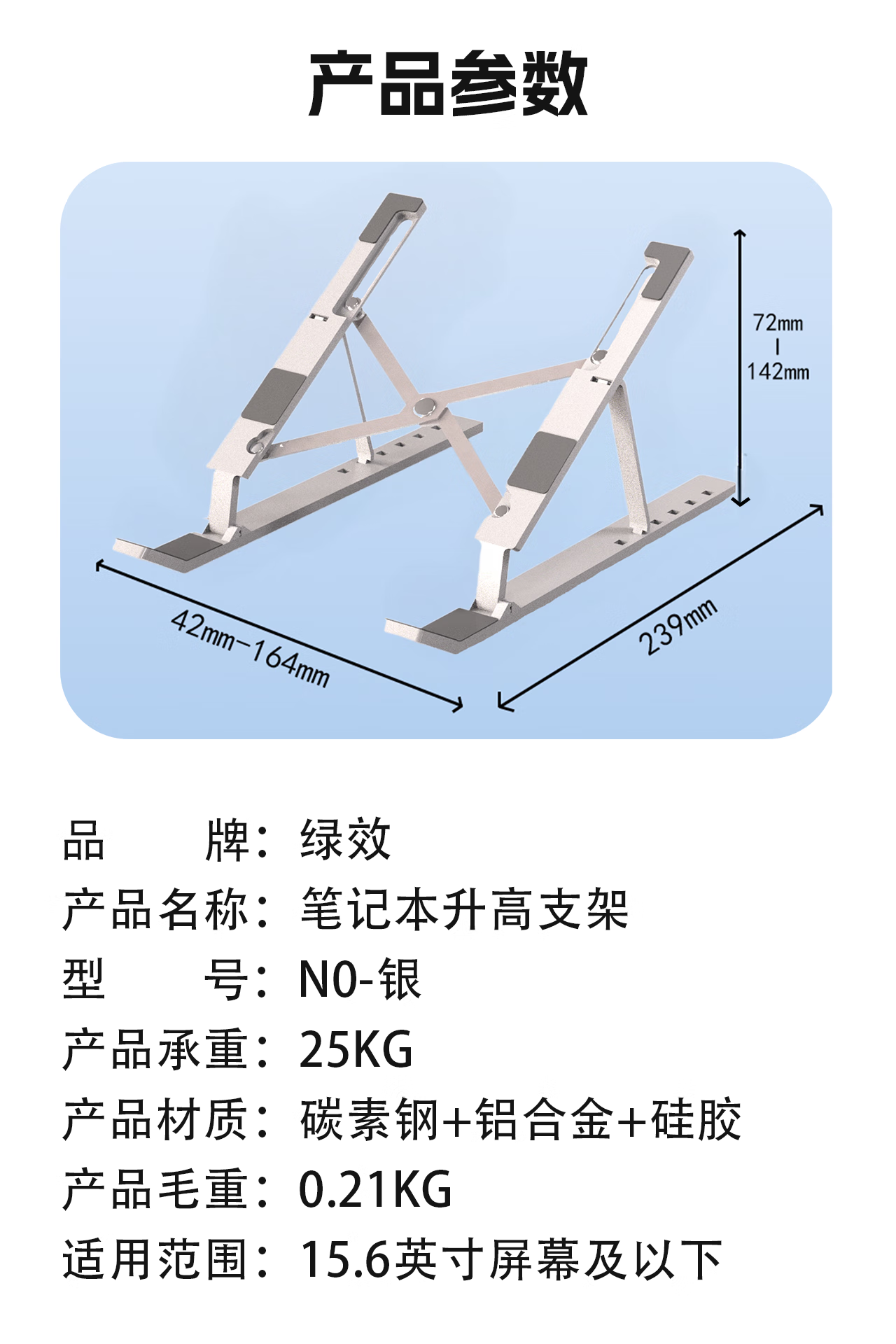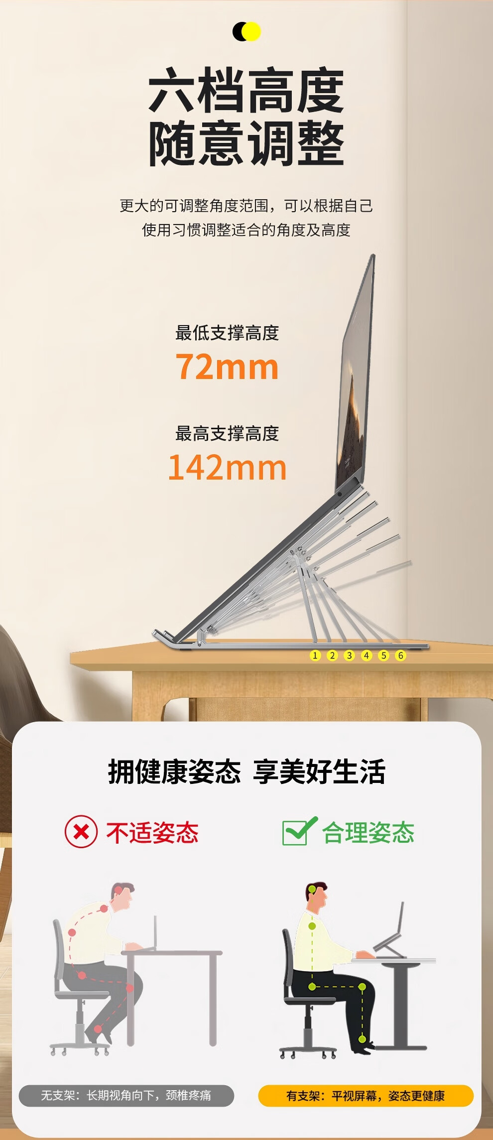 绿效铝合金笔记本电脑散热支架折叠便携悬空增高架立式升降适用苹果Mac联想拯救者华为ipad平板小米