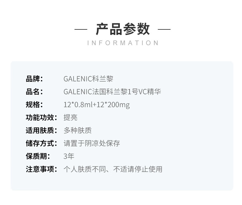 科兰黎GALENIC法国1号VC精华12组提亮次抛 抗皱 【临期清仓】