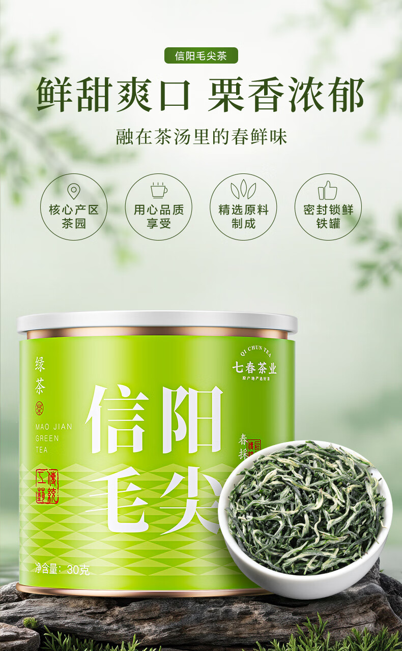 七春2025绿茶信阳毛尖新茶河南特产30g小罐装品鉴茶叶
