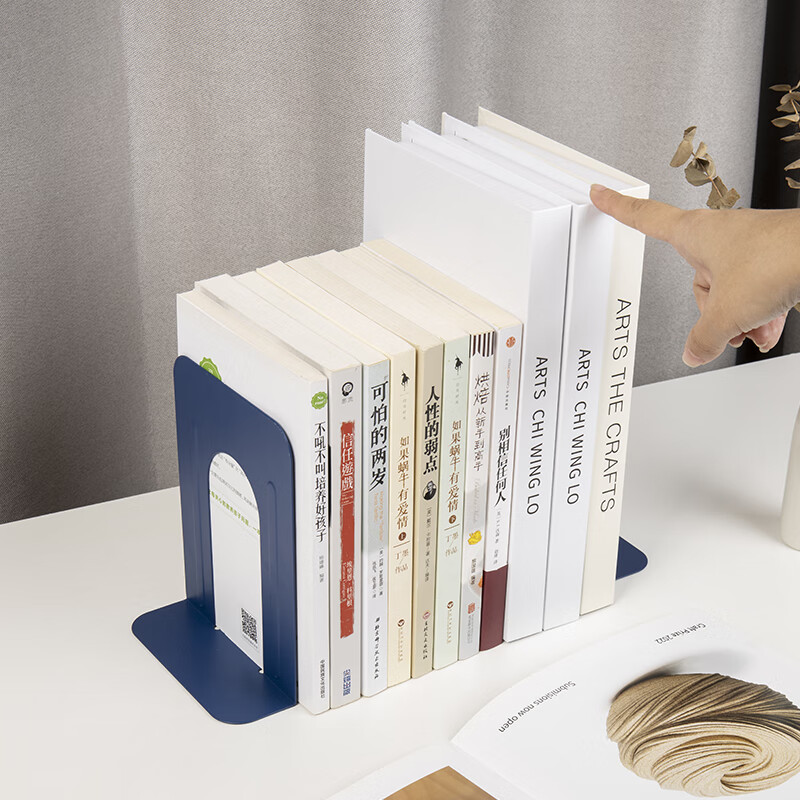 离草 书立架书架桌上书挡板书靠书支架置物架隔书靠书板书隔板T型架子金属铁书立 珍珠白(高17.2cm)