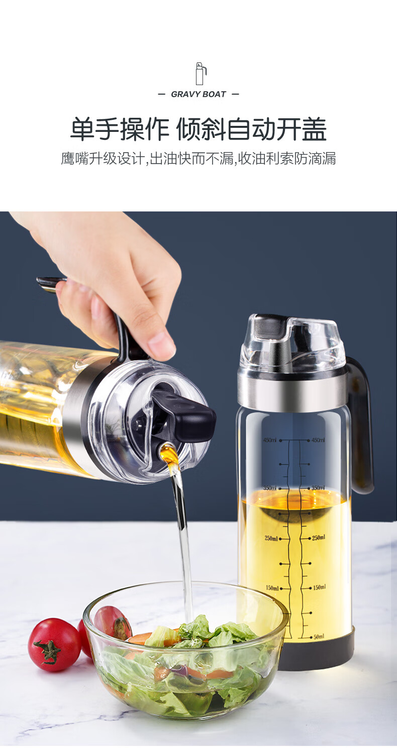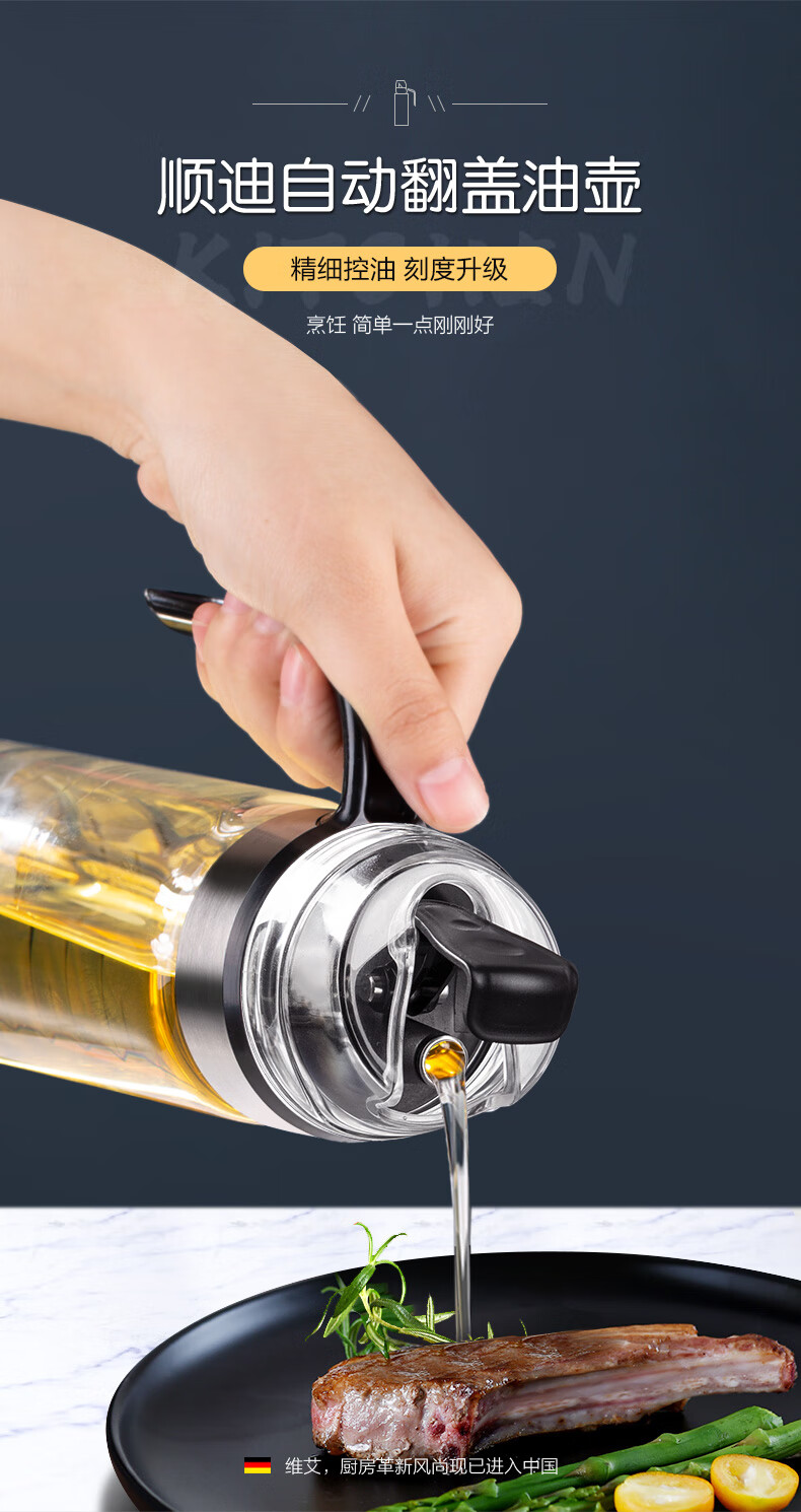 维艾(Newair)玻璃油壶自动开合防漏厨房家用装油瓶子油罐小香油酱油醋壶调料瓶