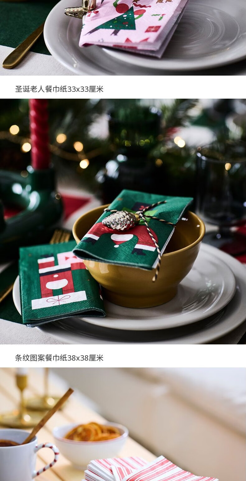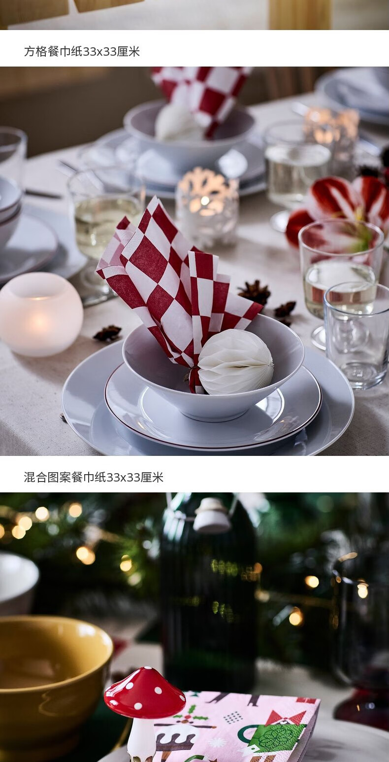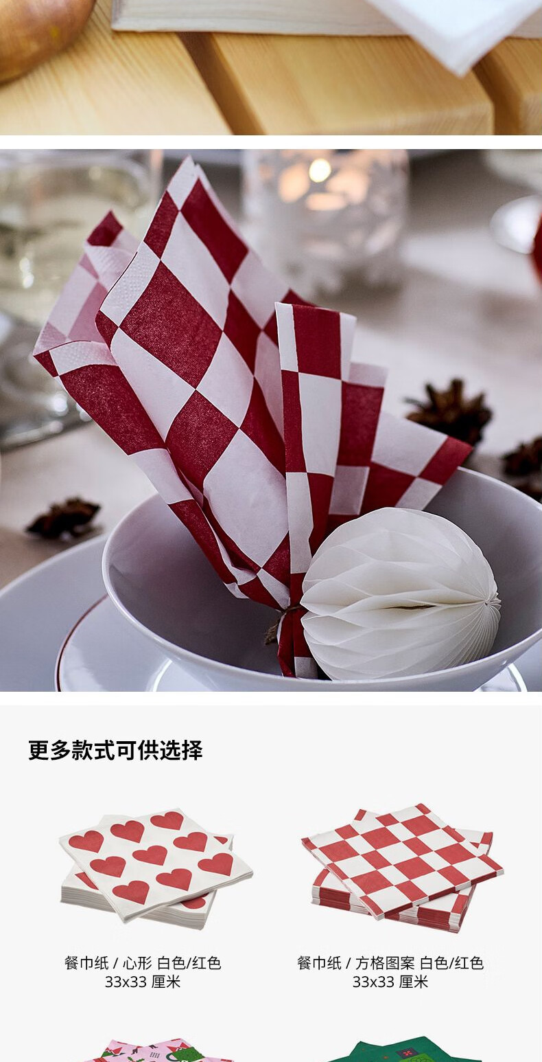 宜家(IKEA)【新品】VINTERFINT云芬特餐巾纸手帕纸餐厅家用卫生纸 条纹图案红色白色38x38cm