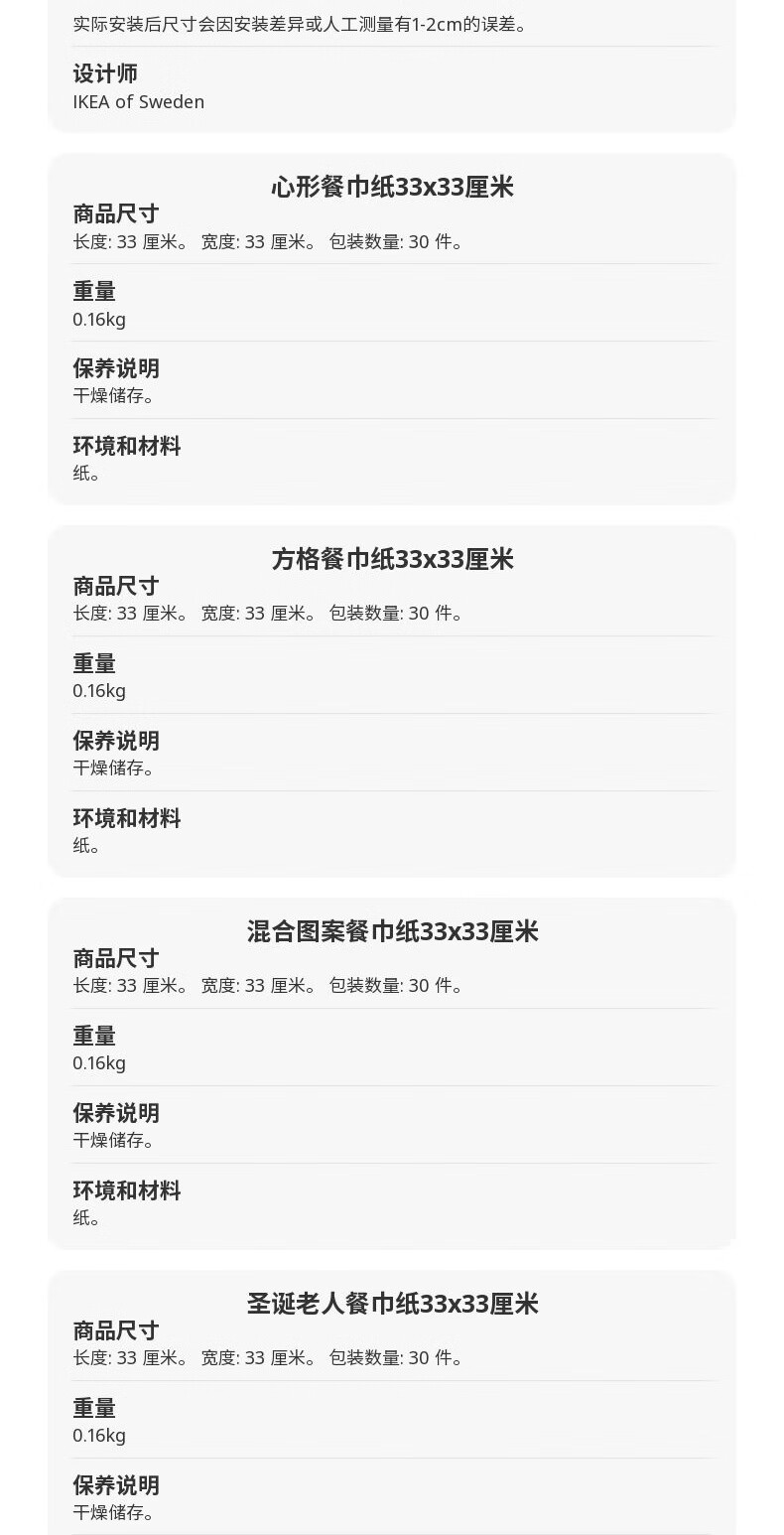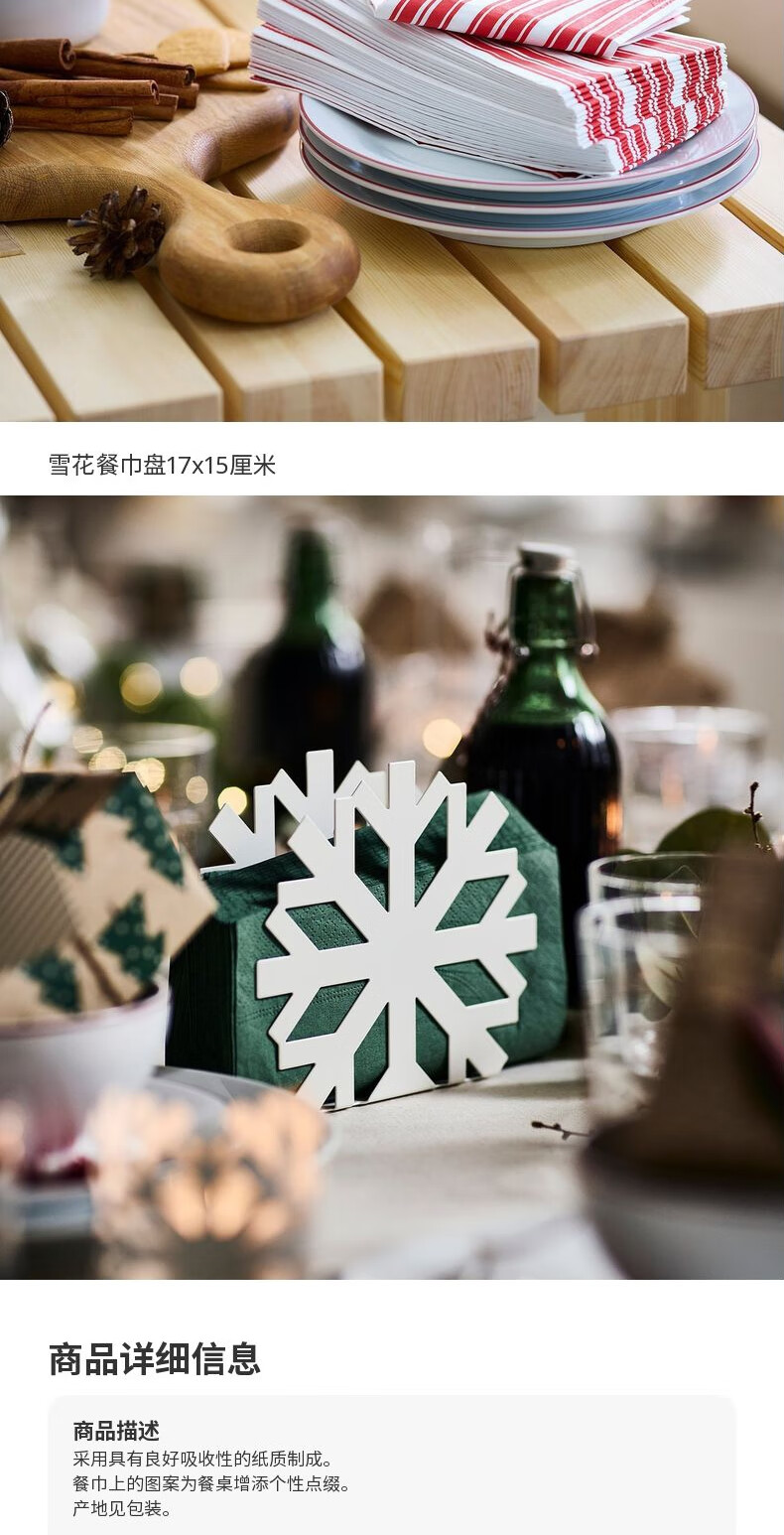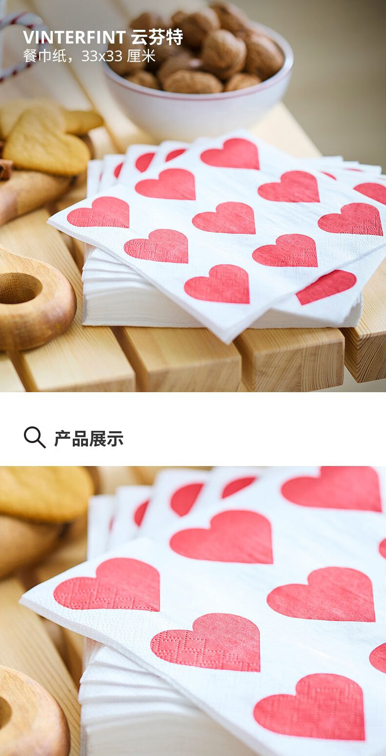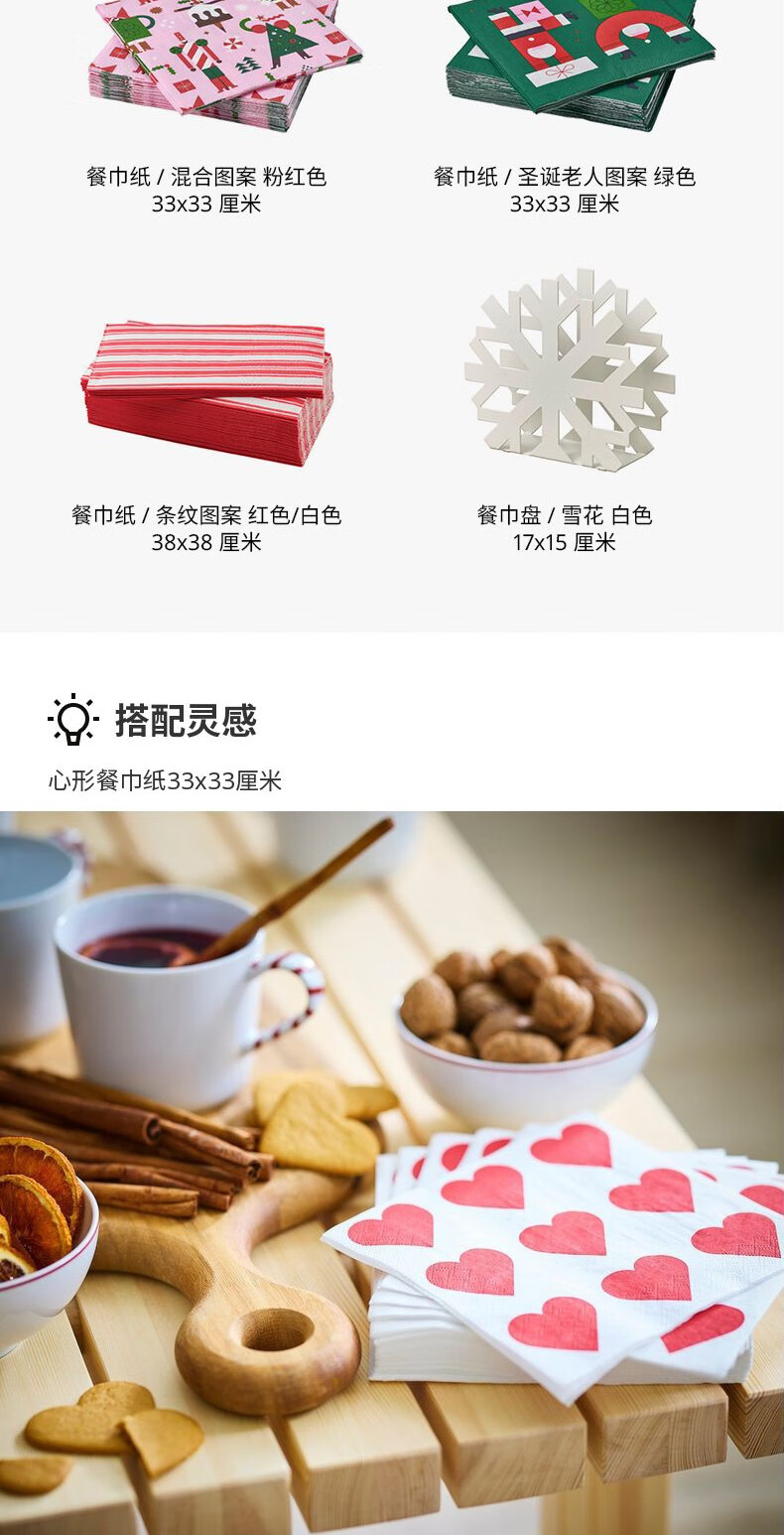 宜家(IKEA)【新品】VINTERFINT云芬特餐巾纸手帕纸餐厅家用卫生纸 条纹图案红色白色38x38cm