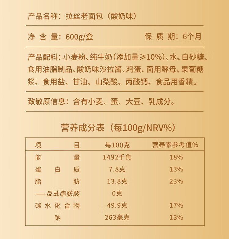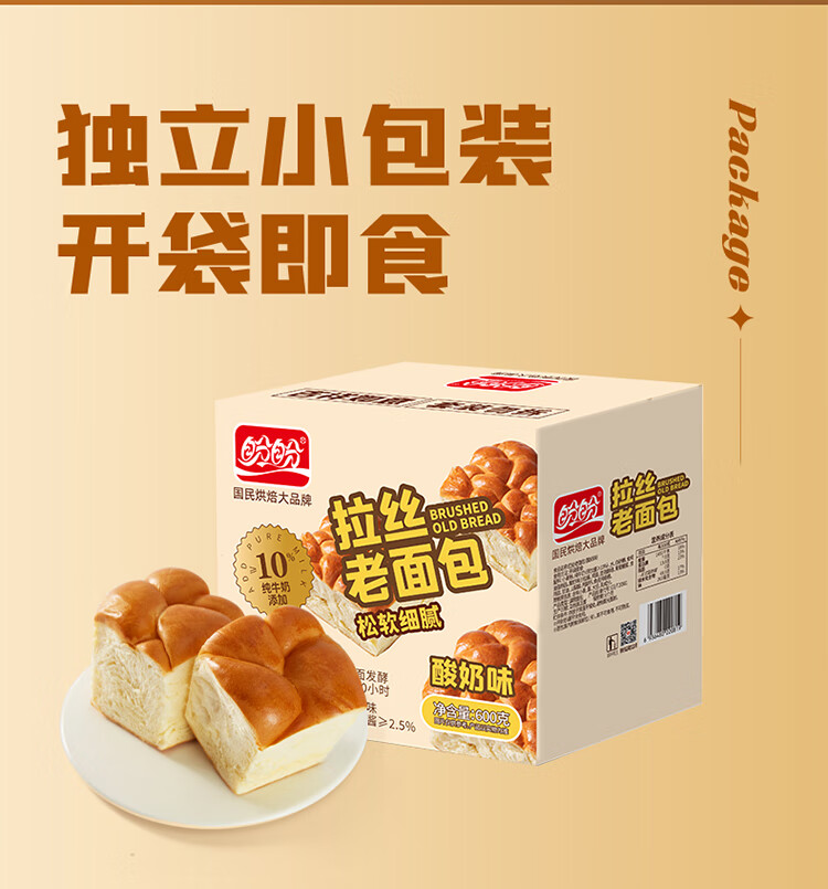 盼盼拉丝老面包 早餐面包休闲零食牛奶手撕面包糕点点心 600g/箱