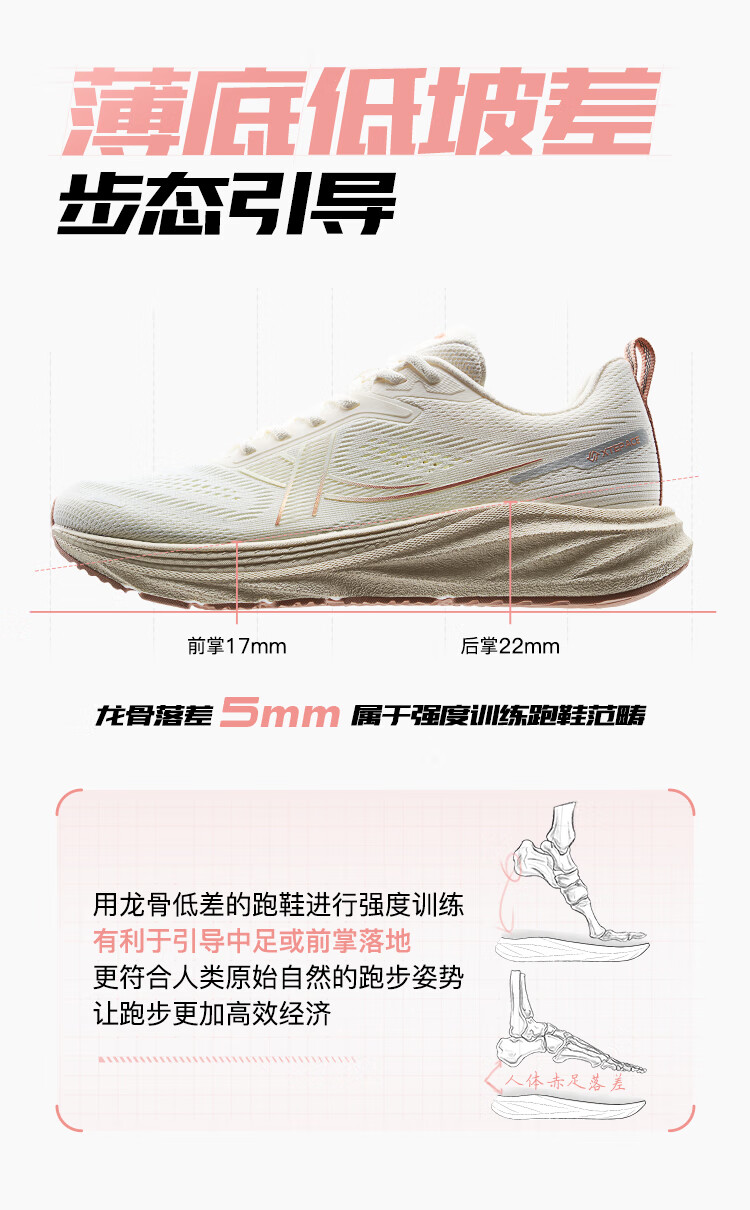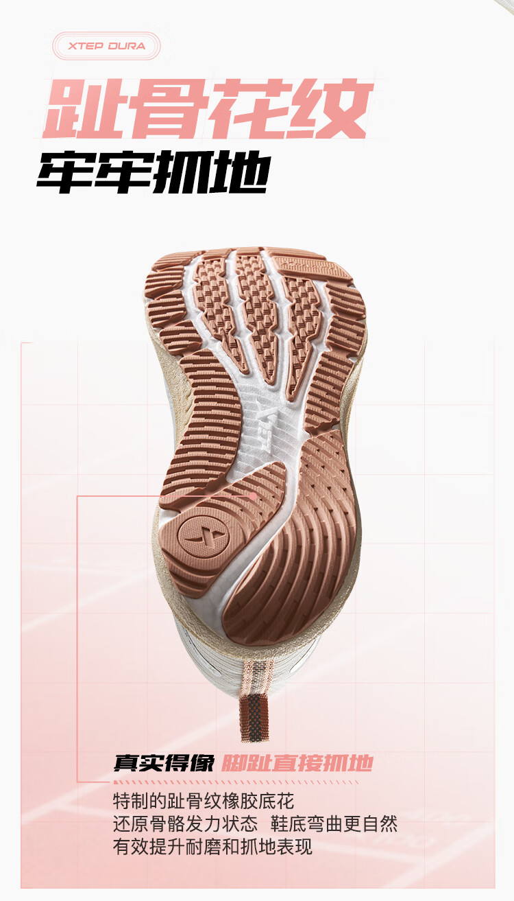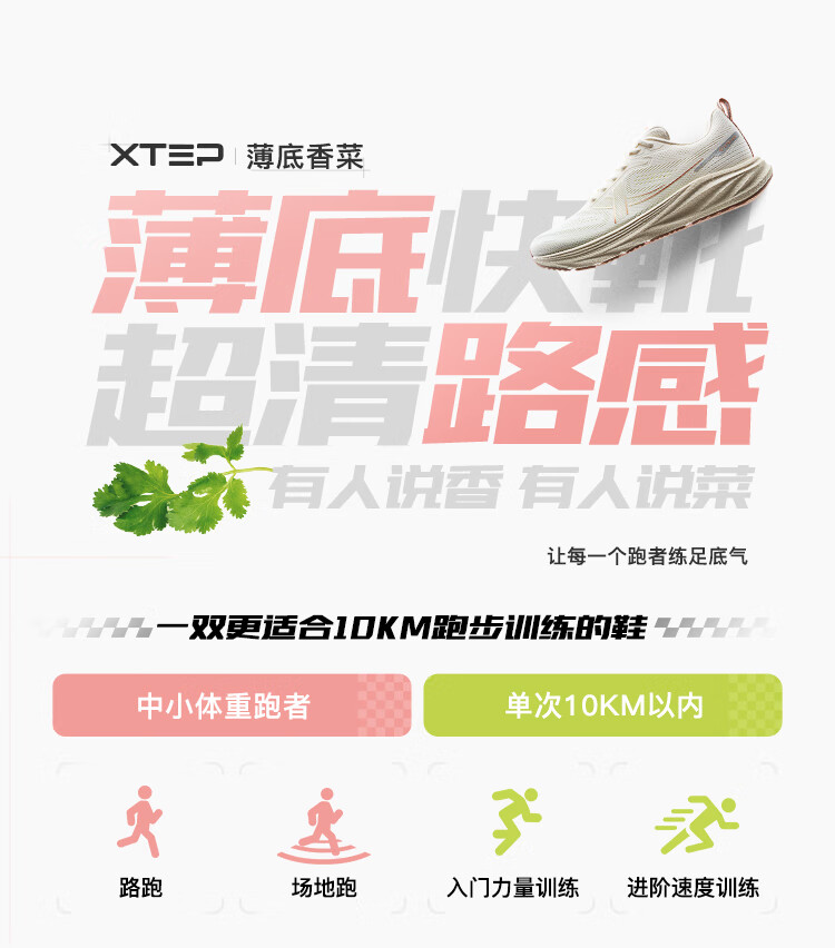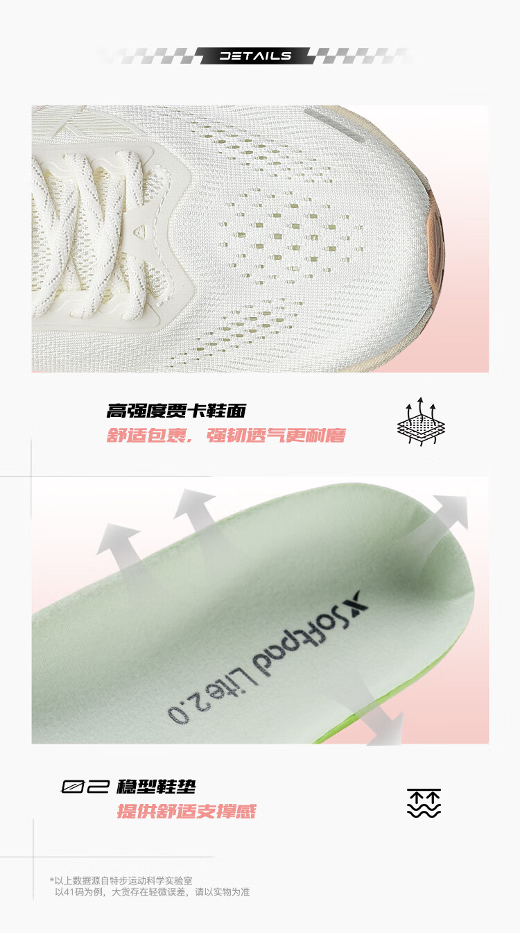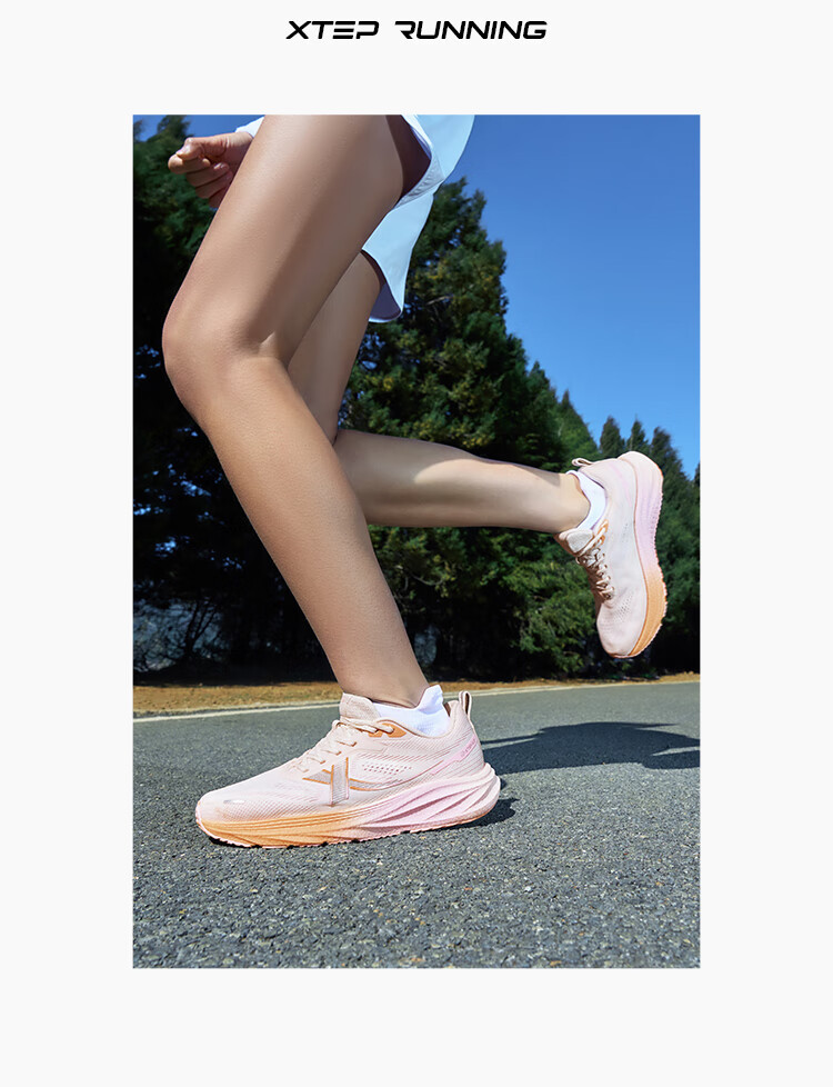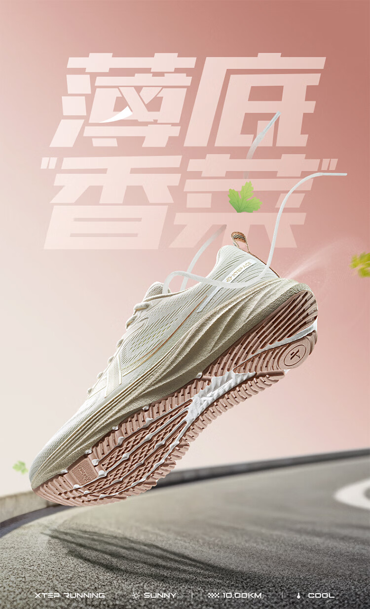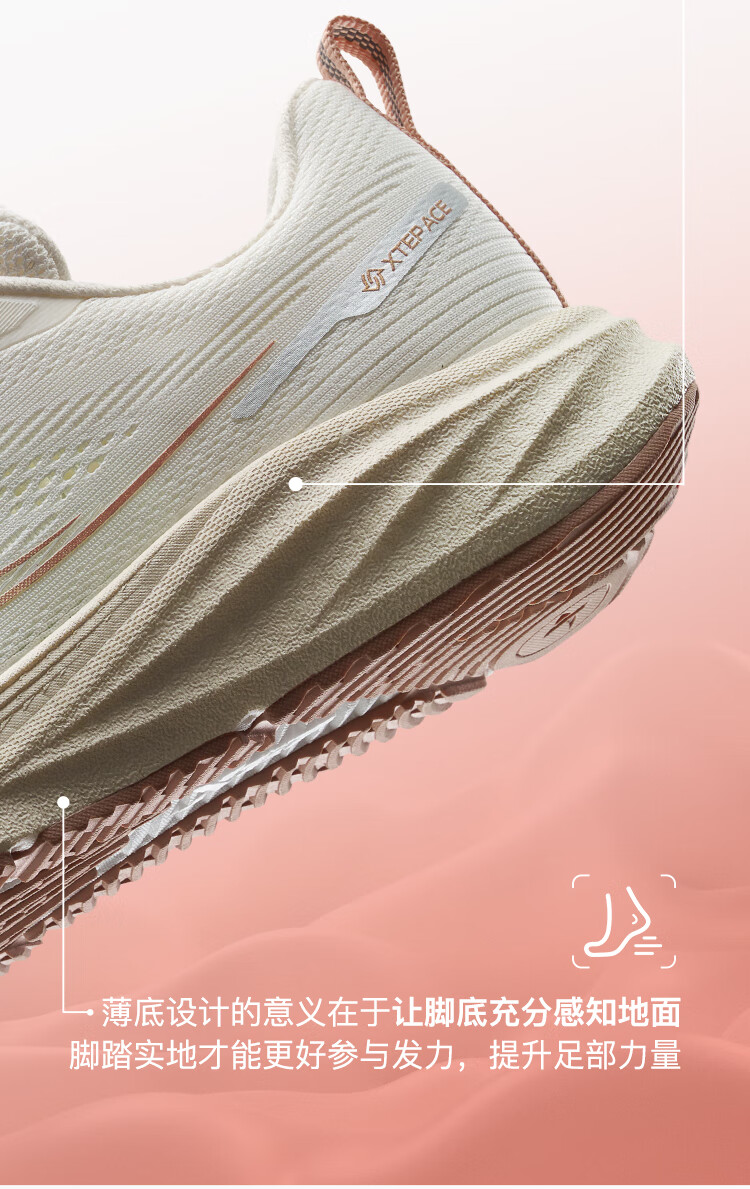特步(XTEP)薄底香菜女跑鞋新款减震回弹耐磨轻盈健身训练宽楦专业运动男鞋 帆白/黏土粉-女 38