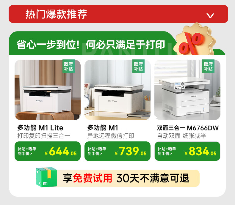 奔图(PANTUM)P1激光打印机家用 异地远程云打印 手机无线蓝牙配网 微信分享打印(P1 Lite升级远程款)
