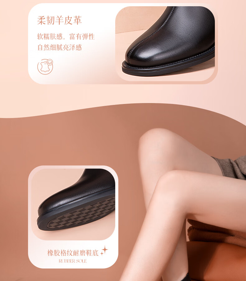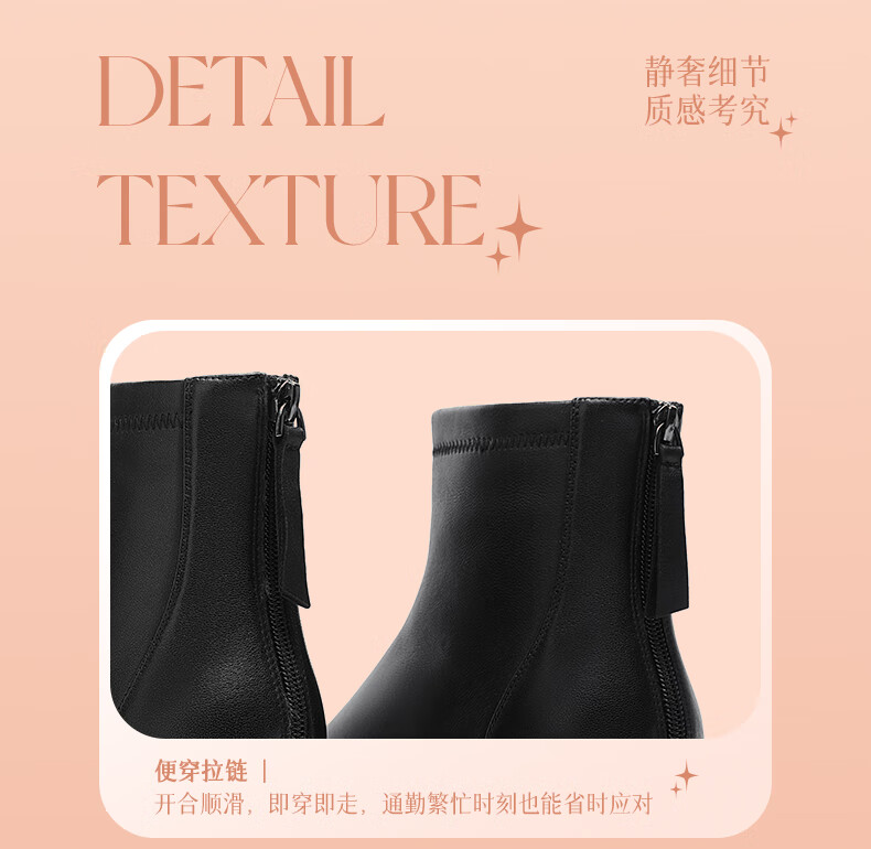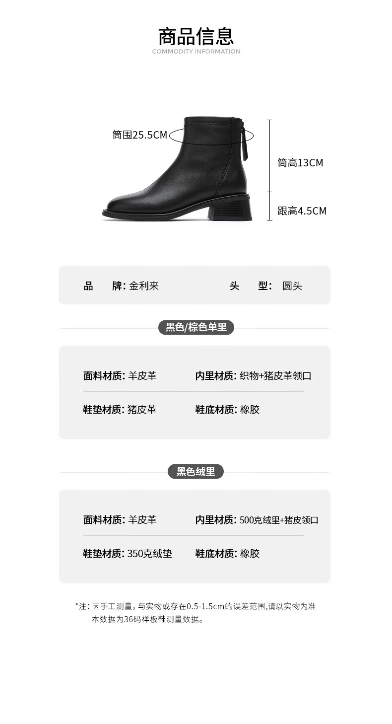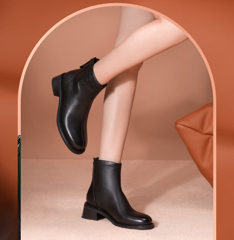 金利来(Goldlion)女鞋瘦瘦靴女加绒保暖秋冬显瘦通勤短靴粗跟时装靴 黑色加绒37