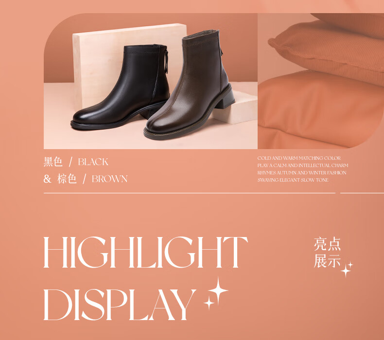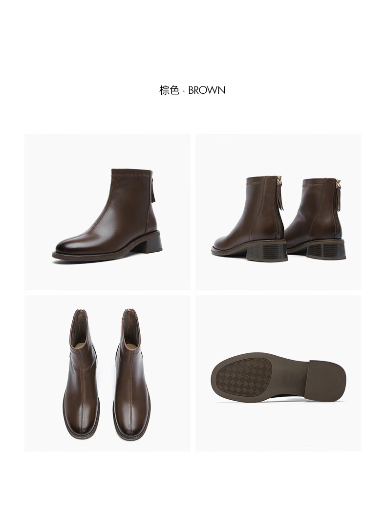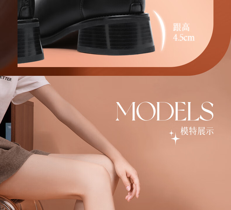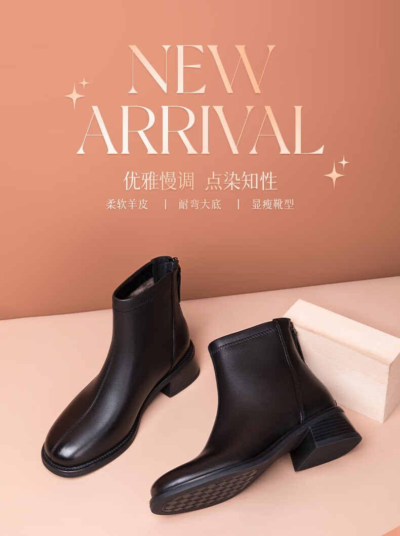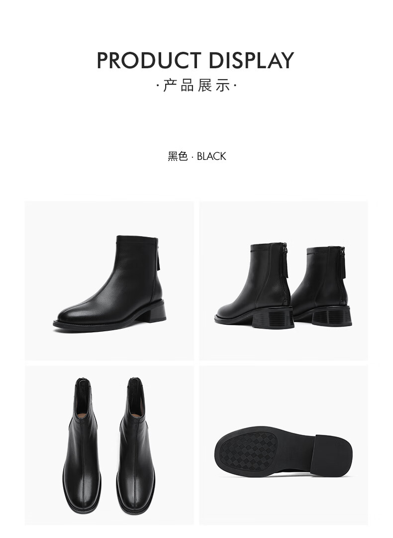 金利来(Goldlion)女鞋瘦瘦靴女加绒保暖秋冬显瘦通勤短靴粗跟时装靴 黑色加绒37