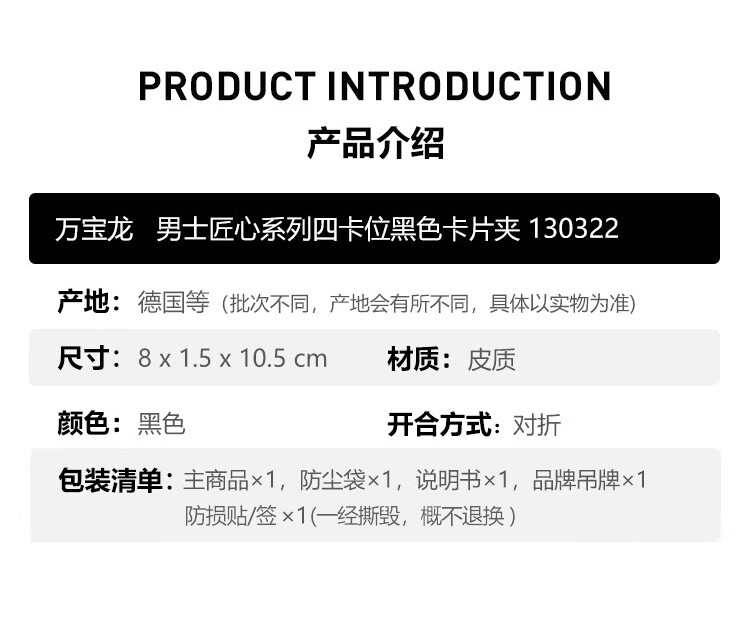 万宝龙MONTBLANC男士匠心系列4卡位黑色卡片夹130322男士礼物