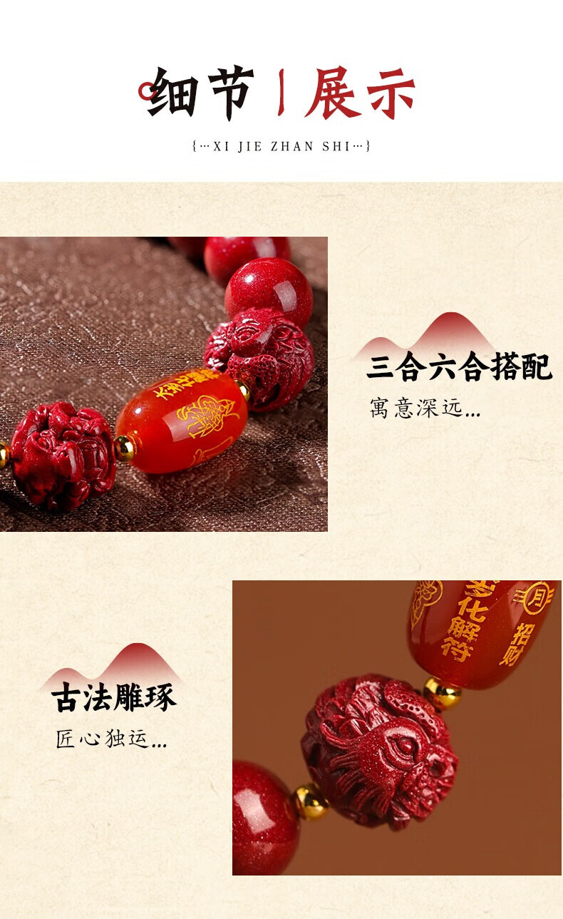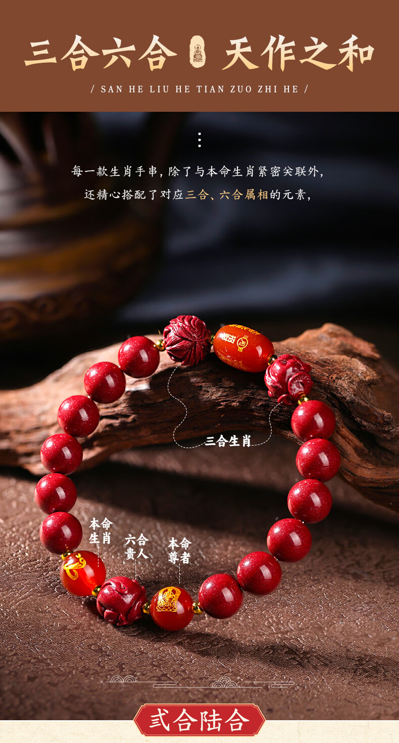 聚旺阁普陀山直发本命年2026生肖属马三合六合朱砂手串正品护身太岁手链 【生肖马】三合六合手串-已过香 8mm