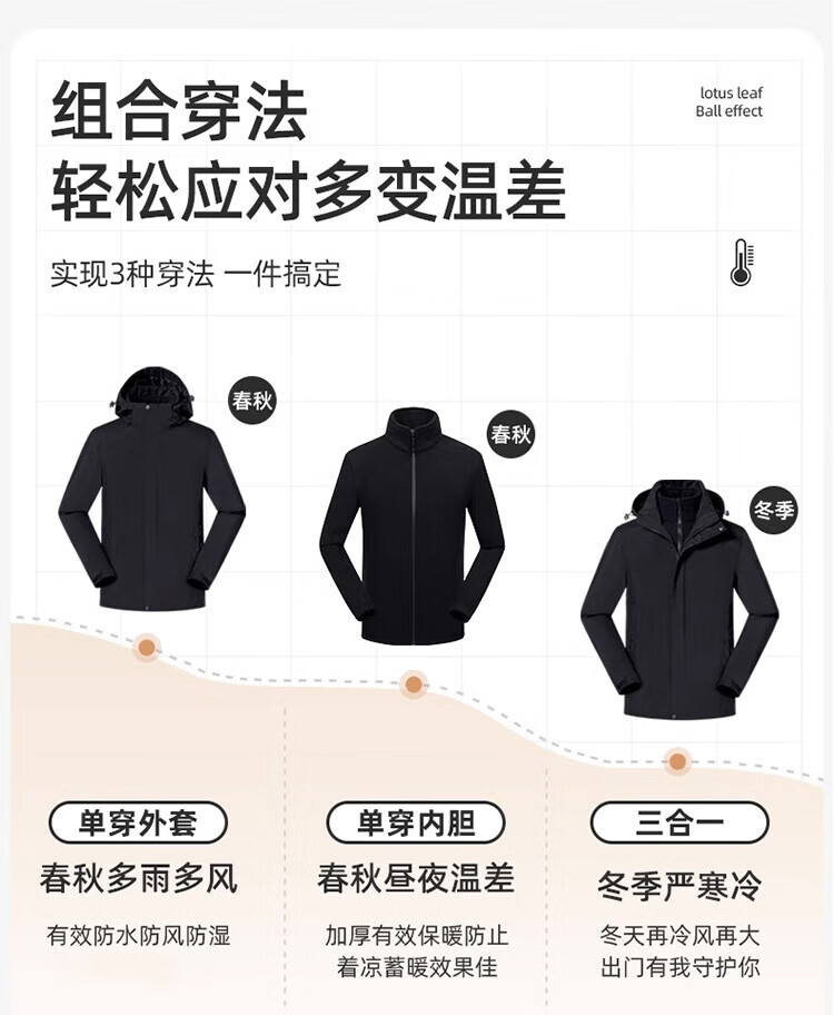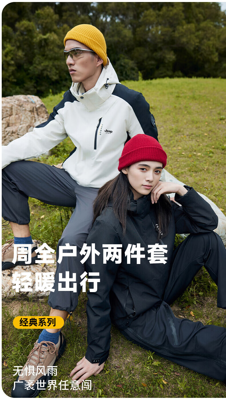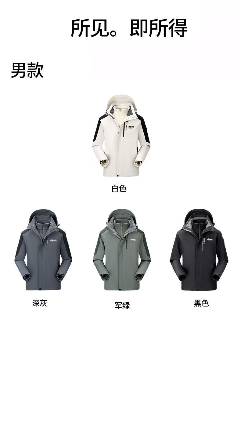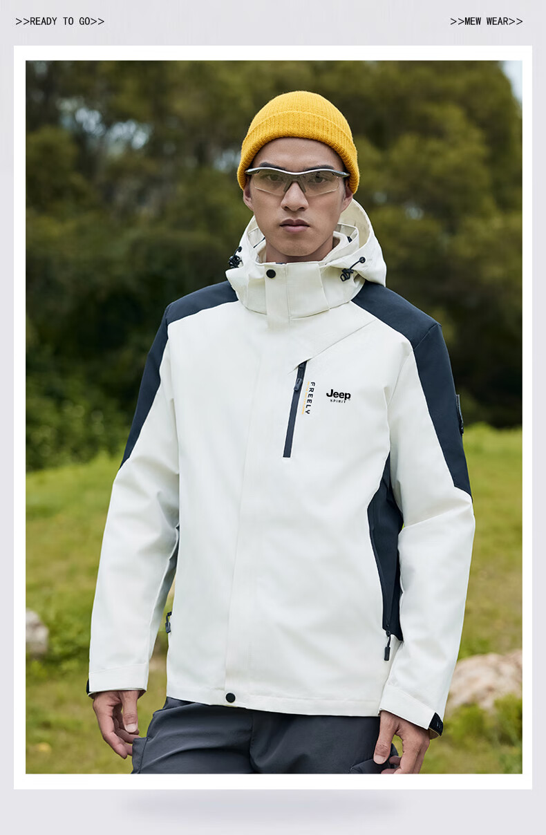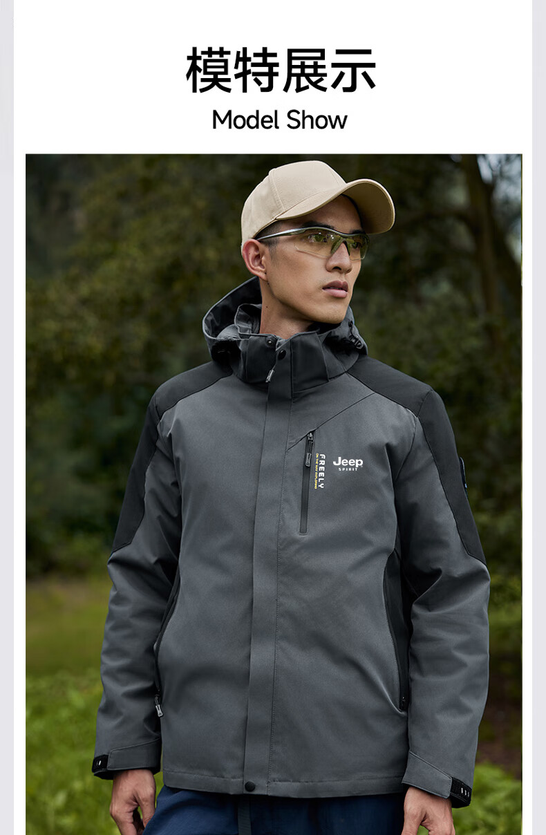 JEEP SPIRIT吉普冲锋衣秋冬男士冬季外套三合一可拆卸防风夹克衫 深灰色 2XL