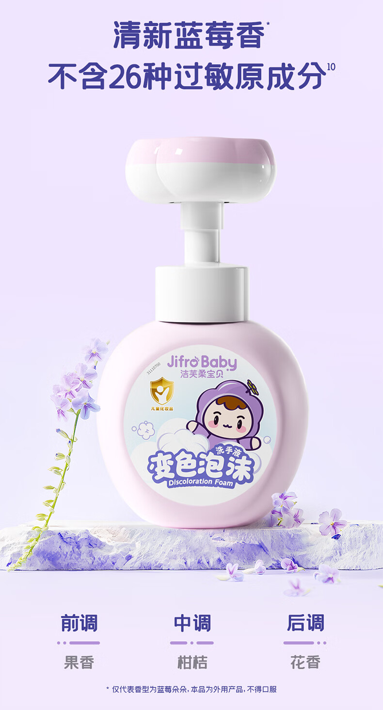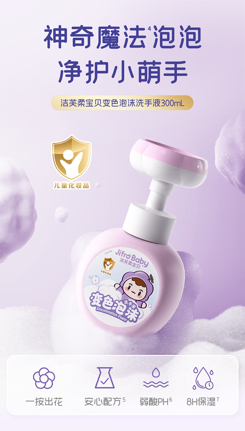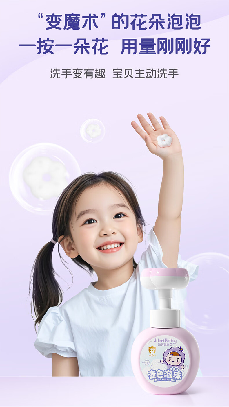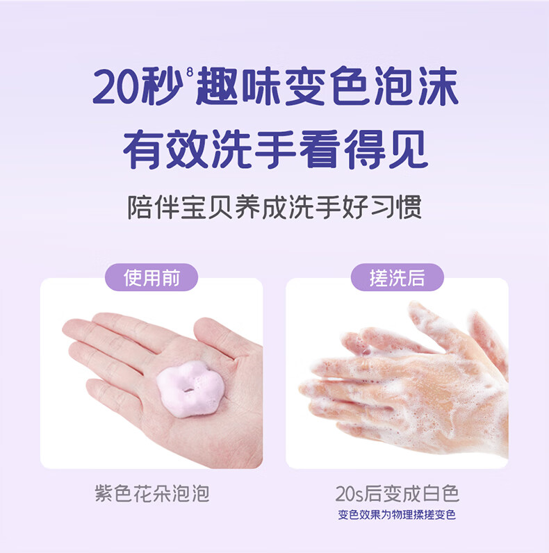 洁芙柔泡沫洗手液儿童花朵变色泡泡按压花瓣形慕斯温和非免洗洗液300mL