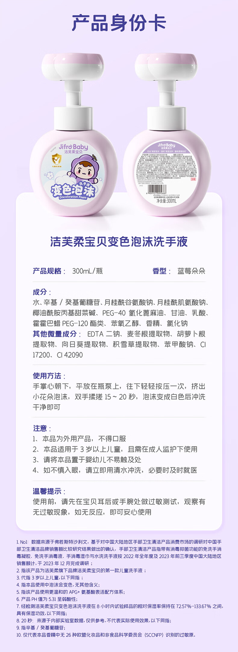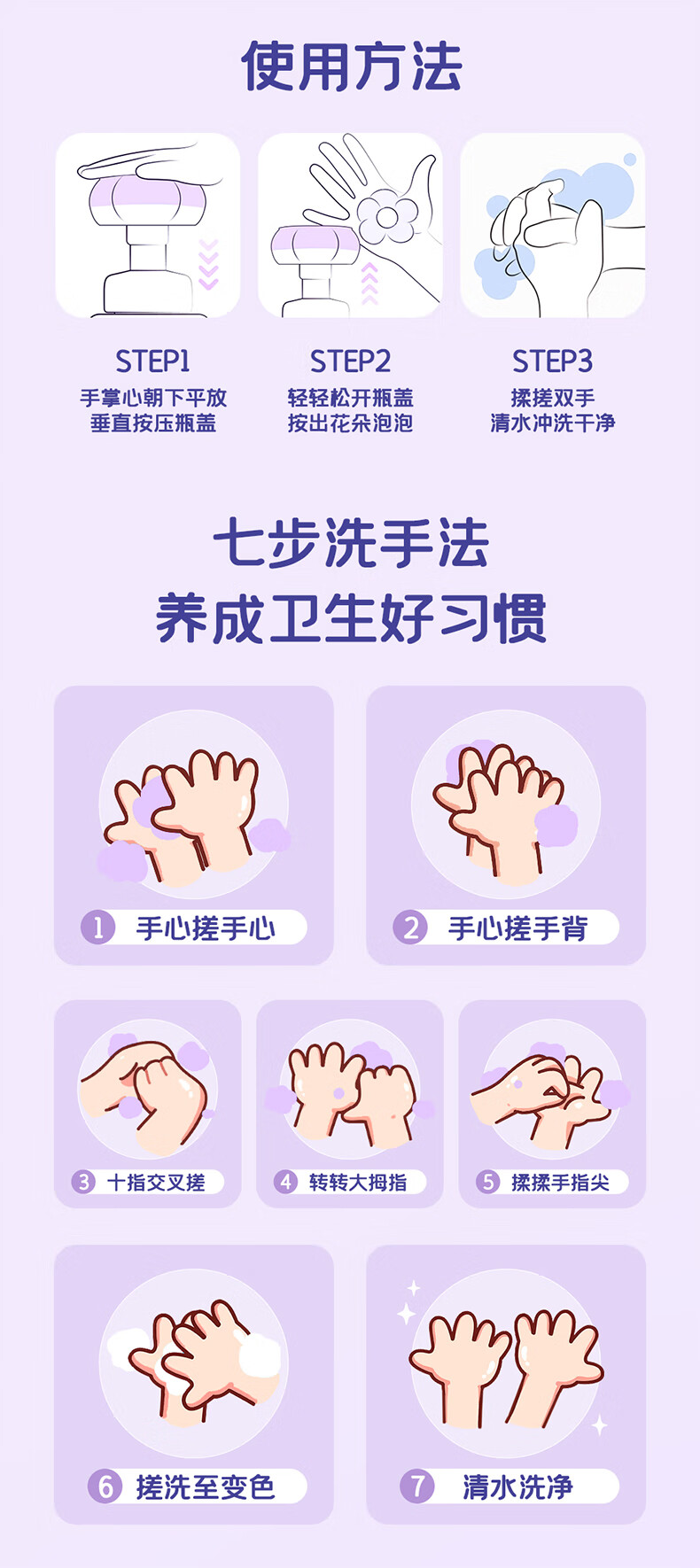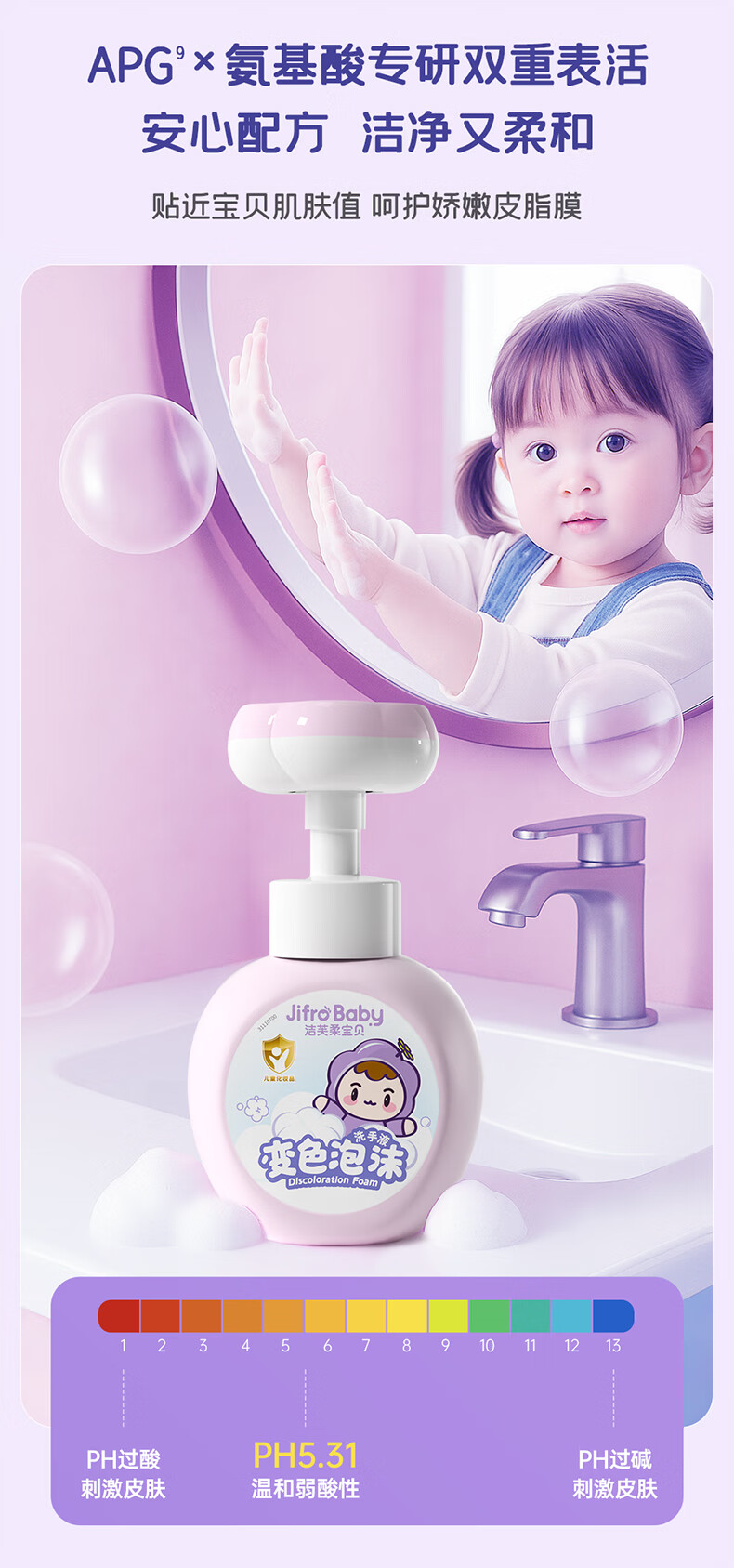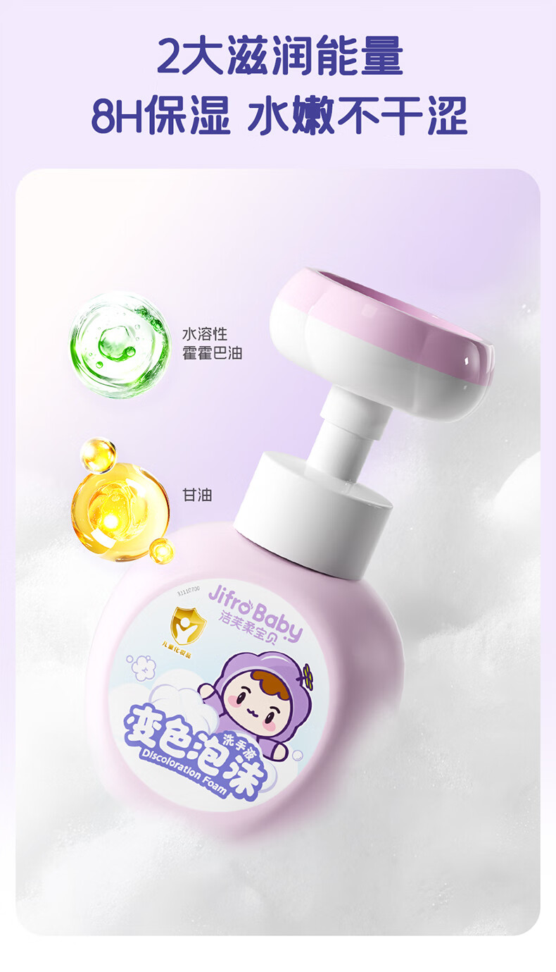 洁芙柔泡沫洗手液儿童花朵变色泡泡按压花瓣形慕斯温和非免洗洗液300mL