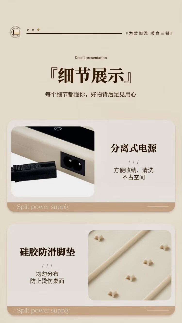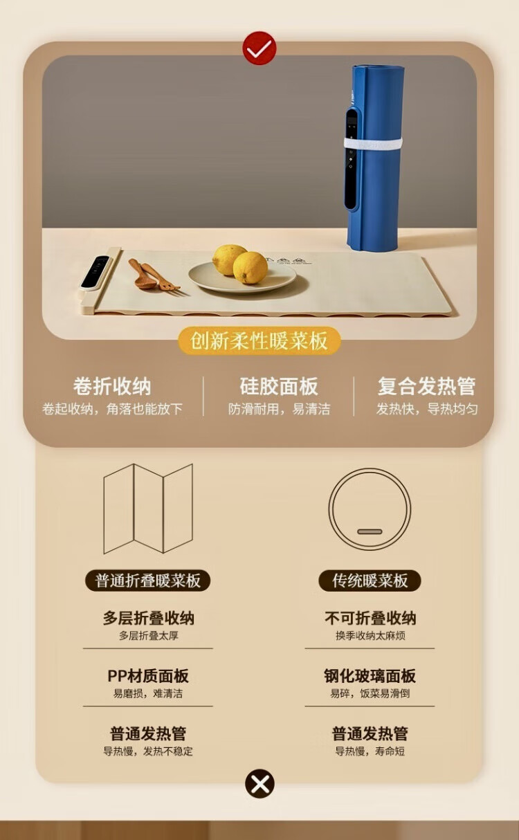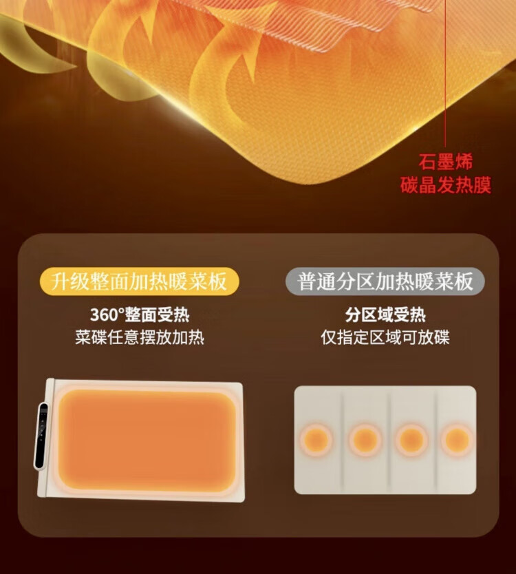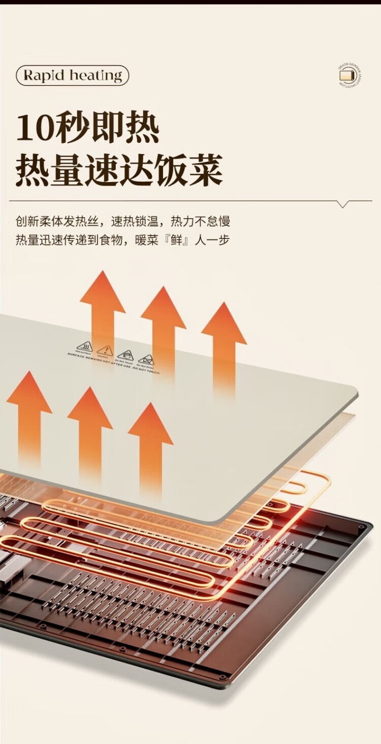DEATKN德国暖菜板家用折叠电热桌饭菜保温 40*38cm[整面加热/六档调温定时/