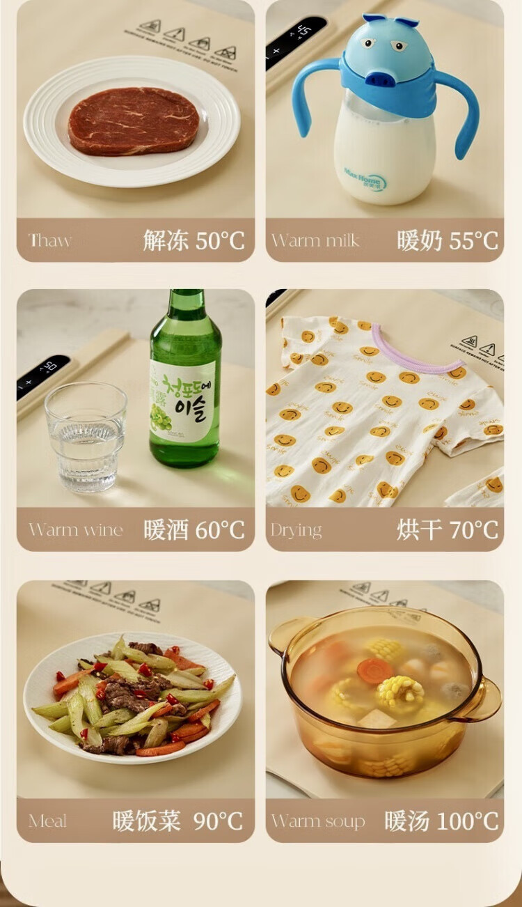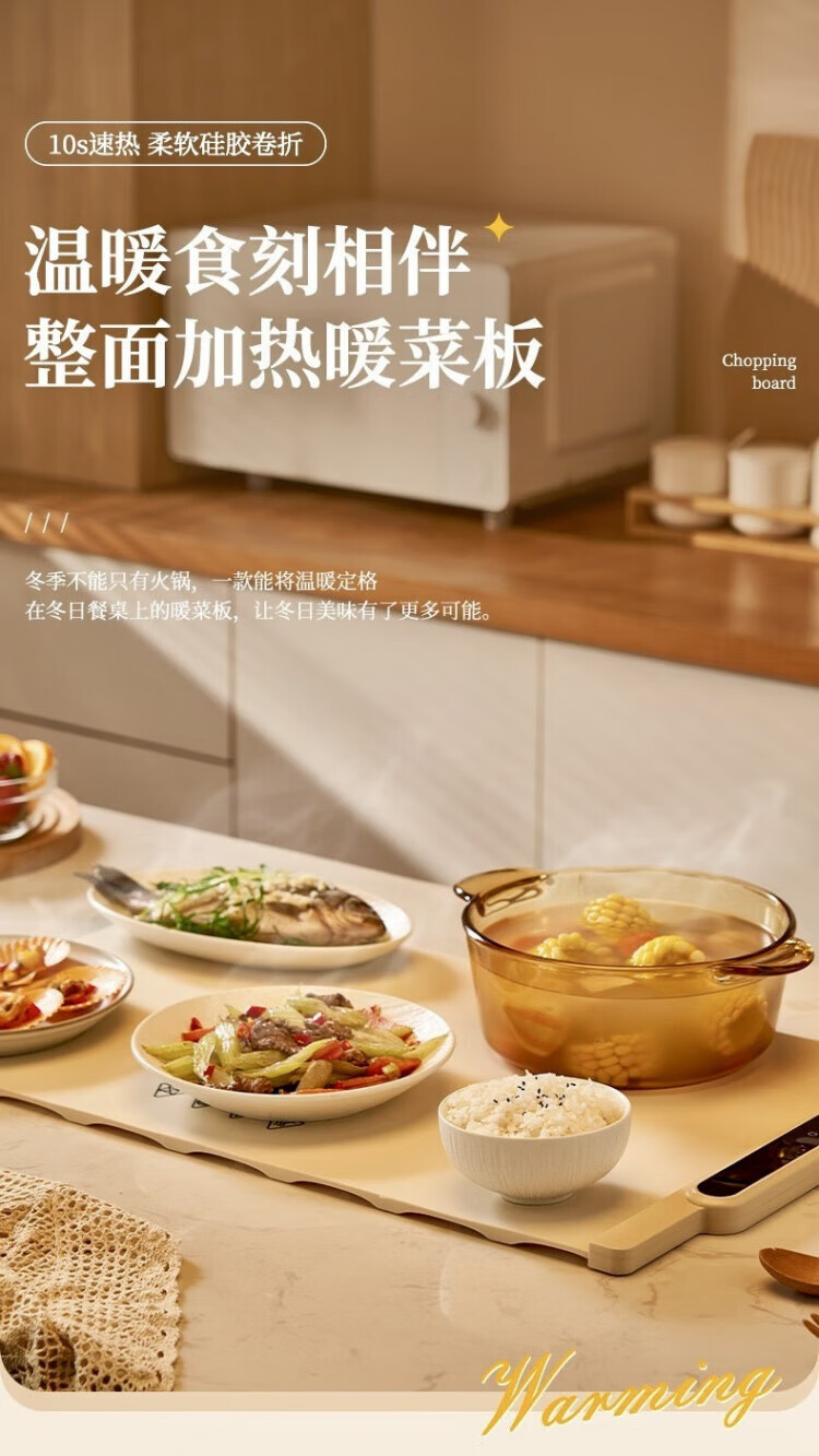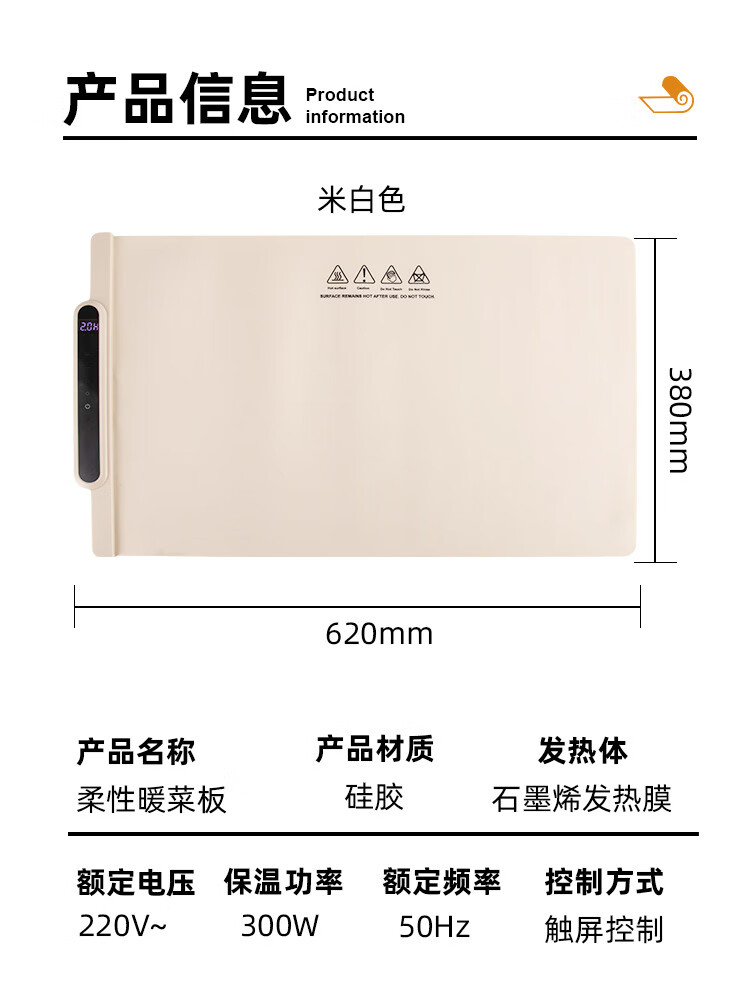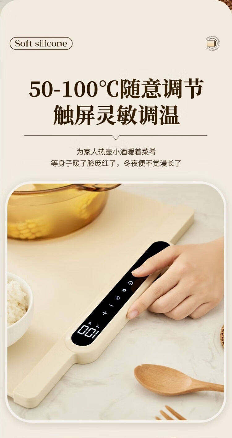 WCZ德国加厚硅胶可折叠多功能餐桌保温板热菜板智能恒温冬季多功能家用保温触控暖菜垫热菜板 【米白】整面加热 65*38CM