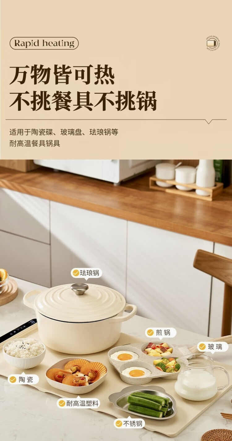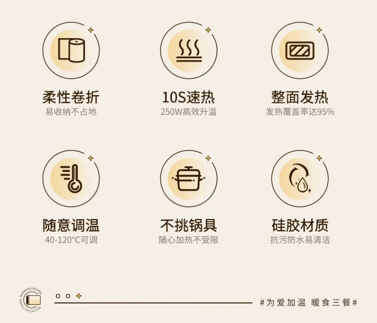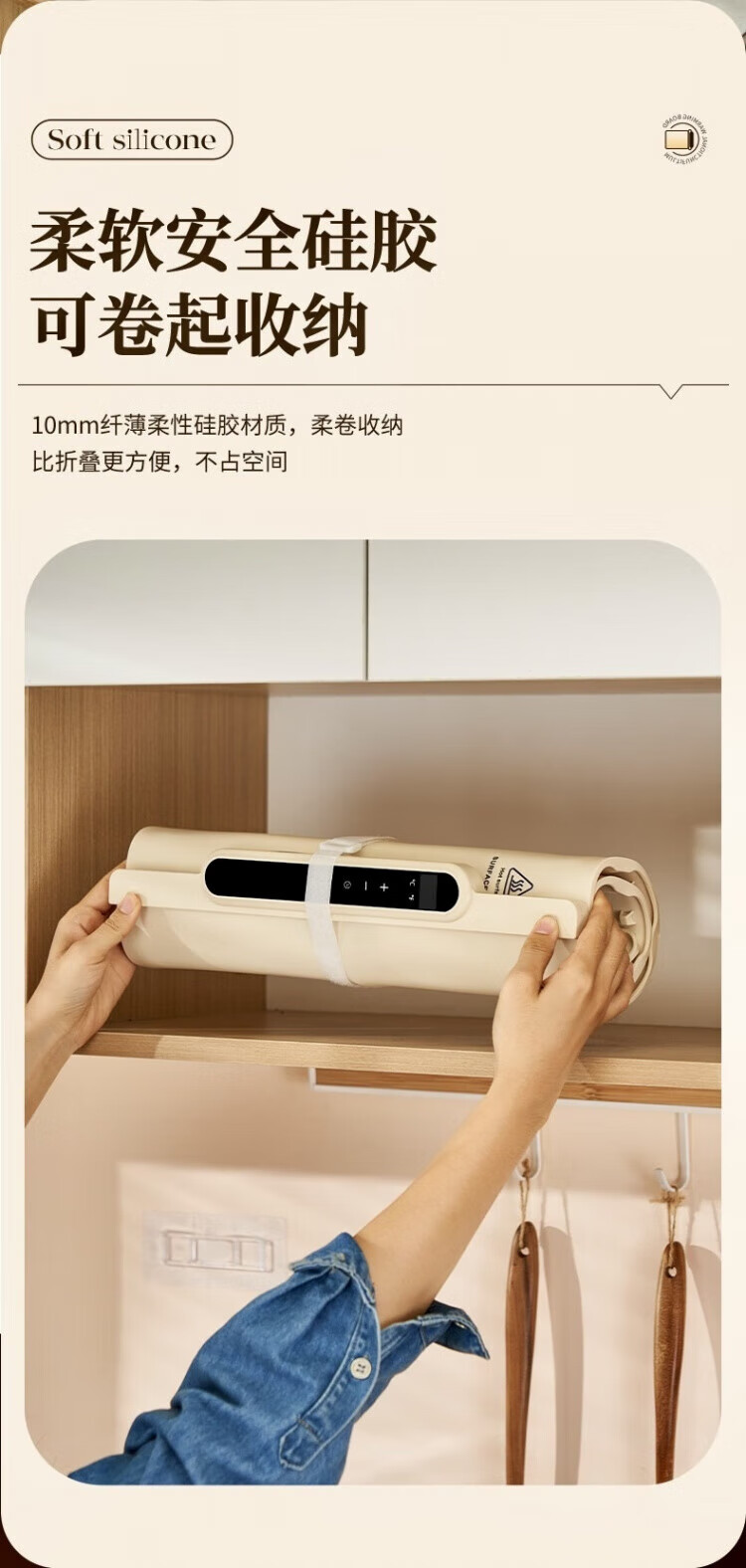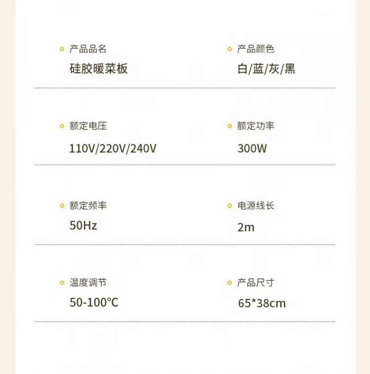 WCZ德国加厚硅胶可折叠多功能餐桌保温板热菜板智能恒温冬季多功能家用保温触控暖菜垫热菜板 【米白】整面加热 65*38CM