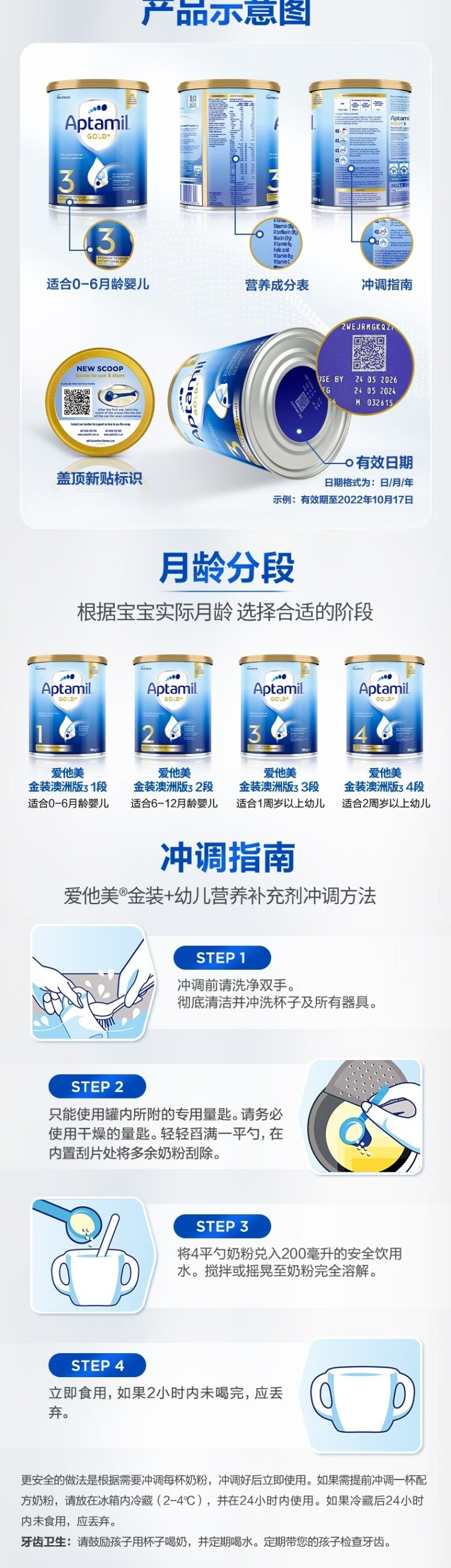 Aptamil爱他美(Aptamil)新西兰澳洲金装版 婴幼儿配方奶粉 2段 澳洲金装 900g 1罐 900g