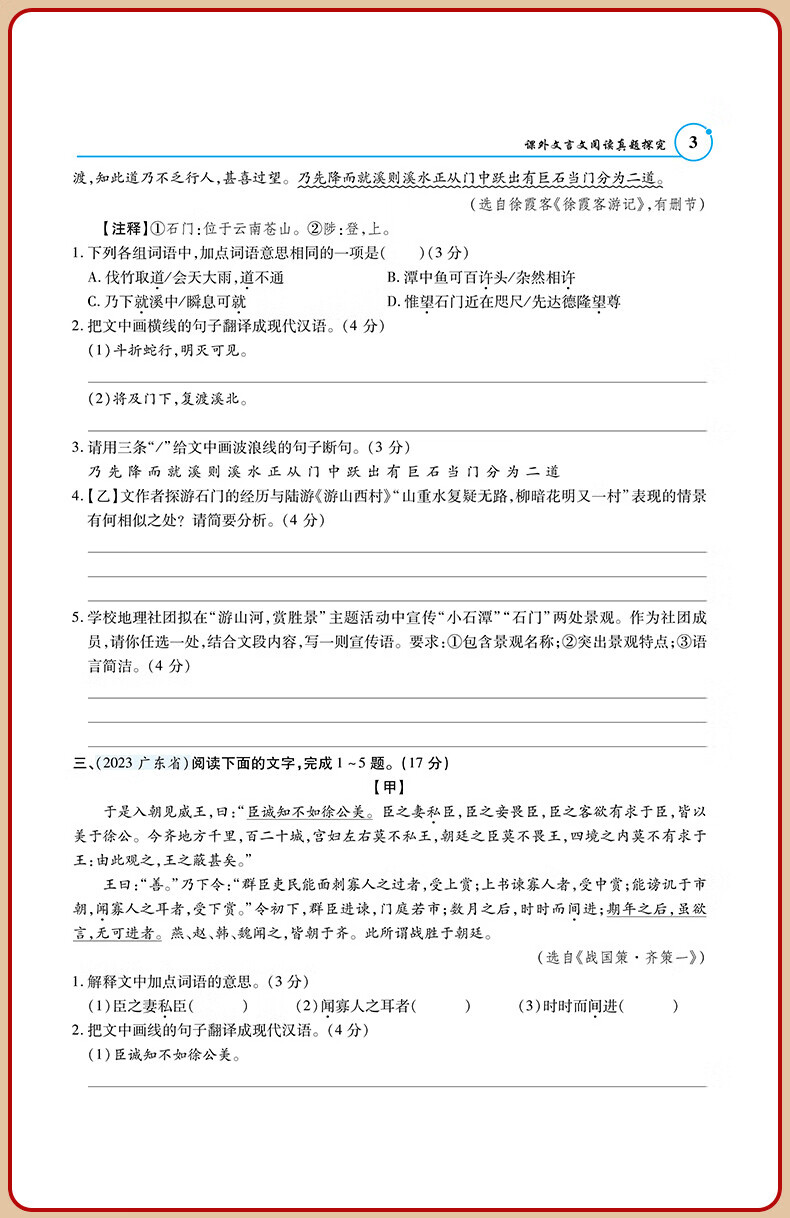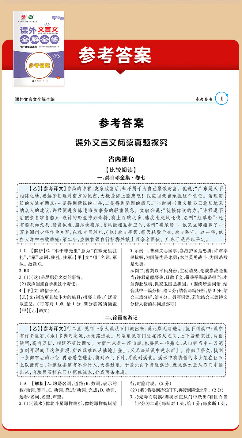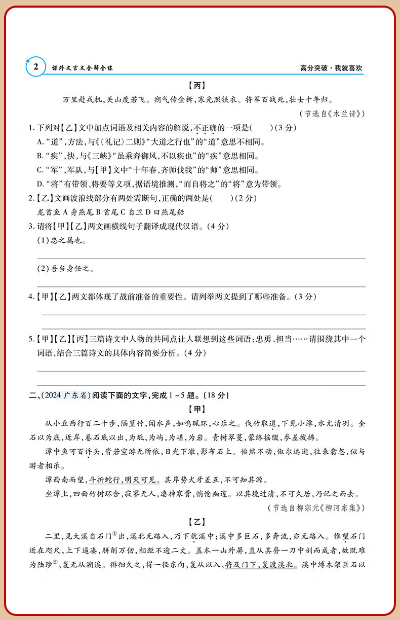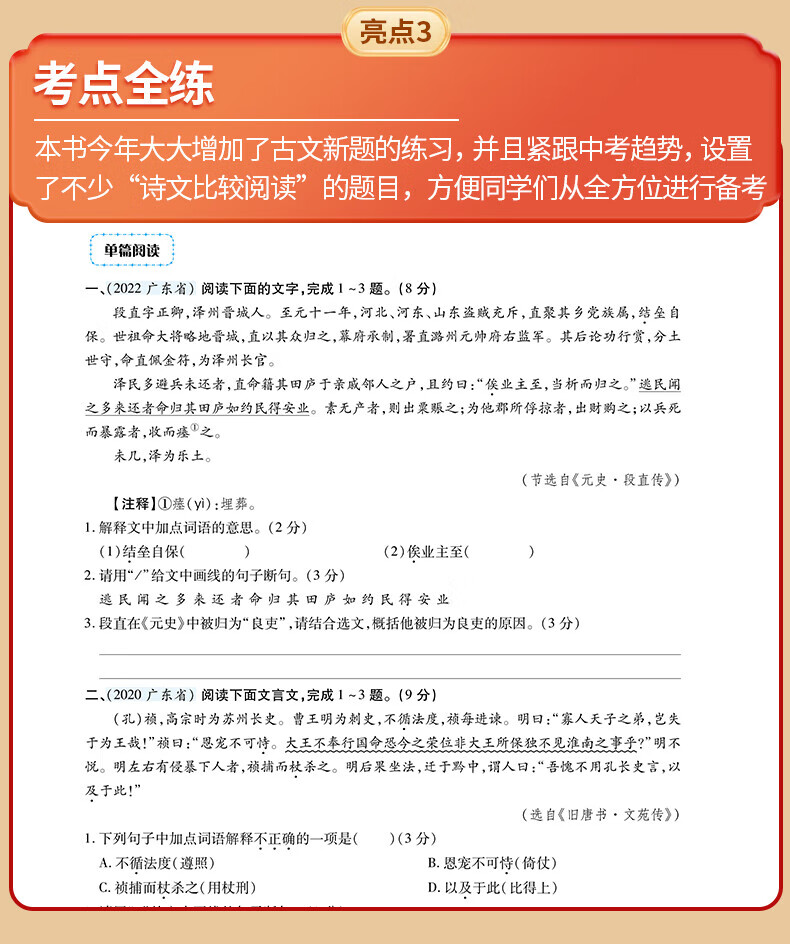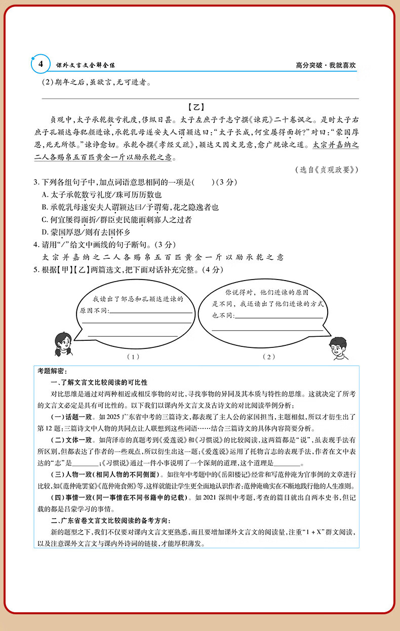 【语文专项】2026新版广东中考高分突破初中课外文言文阅读全解全练专项训练提高 阅读精练七八九年级初中通用 【初中通用】课外文言文阅读全解全练