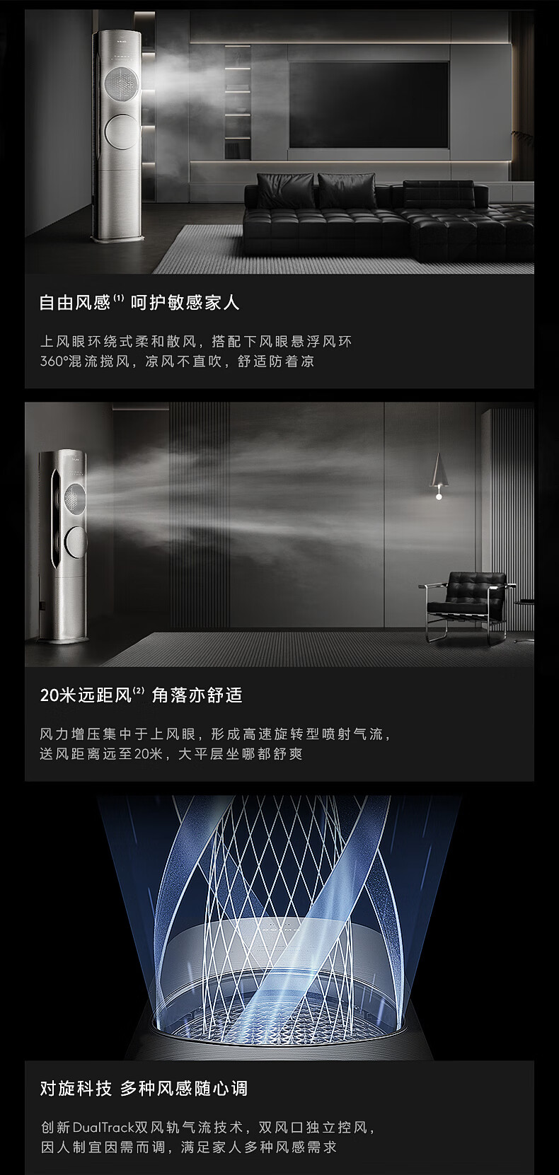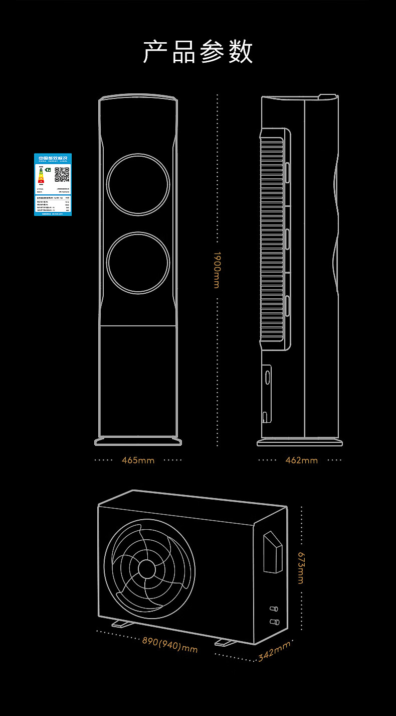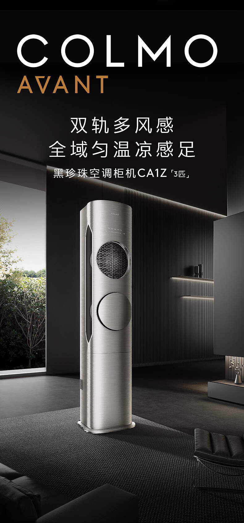 COLMO黑珍珠3匹 全域快速冷暖 20米超远送风 舒适风 一级能效 客厅立式空调柜机 国家补贴KFR-72LW/CA1Z
