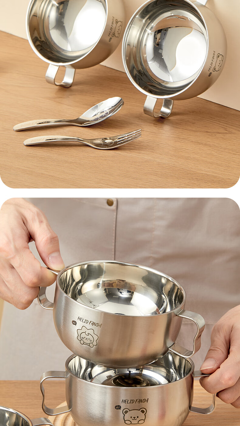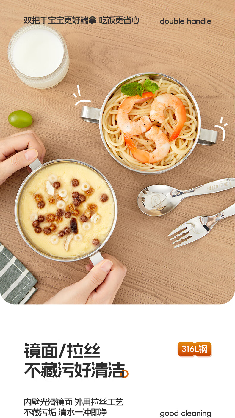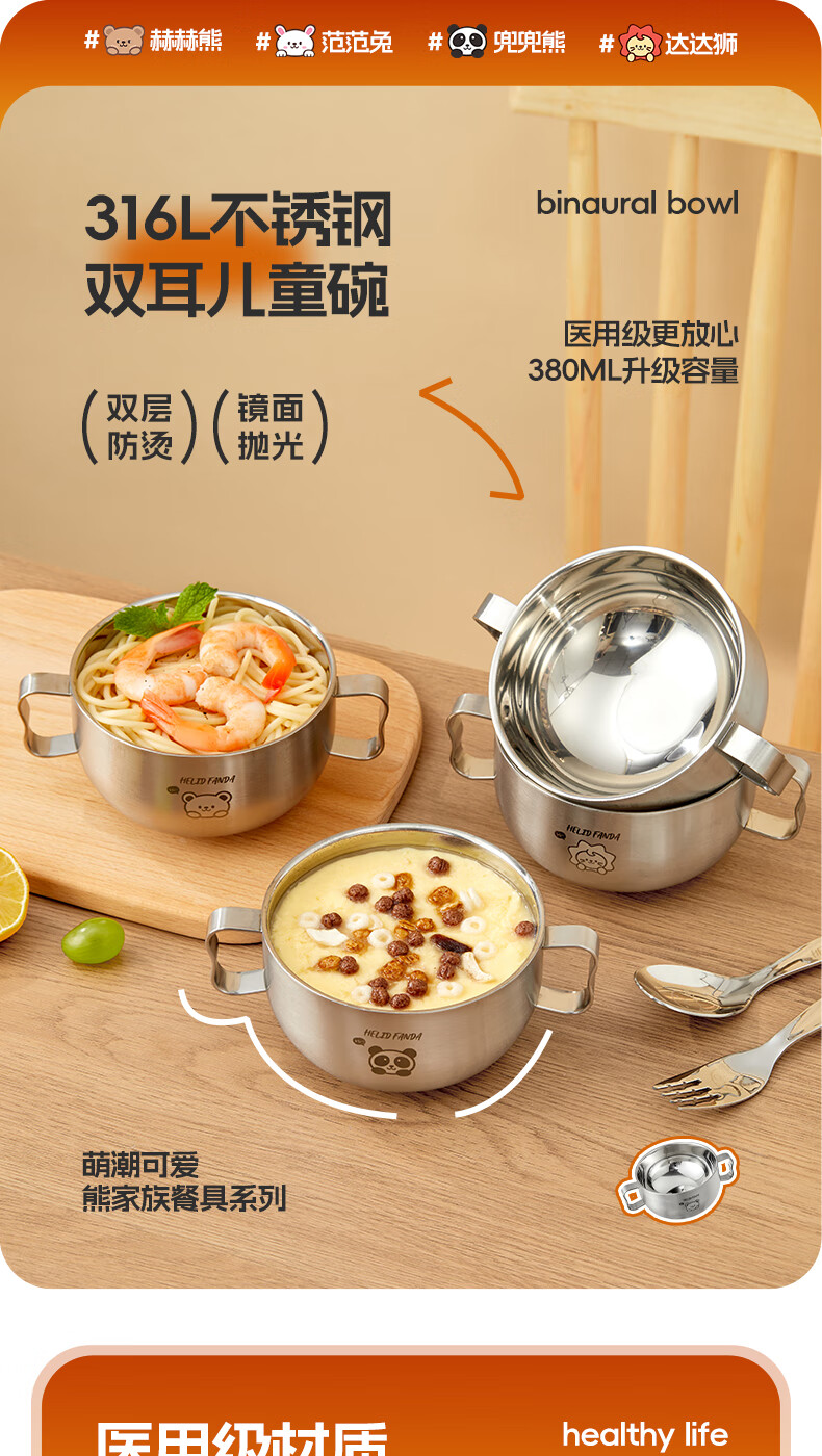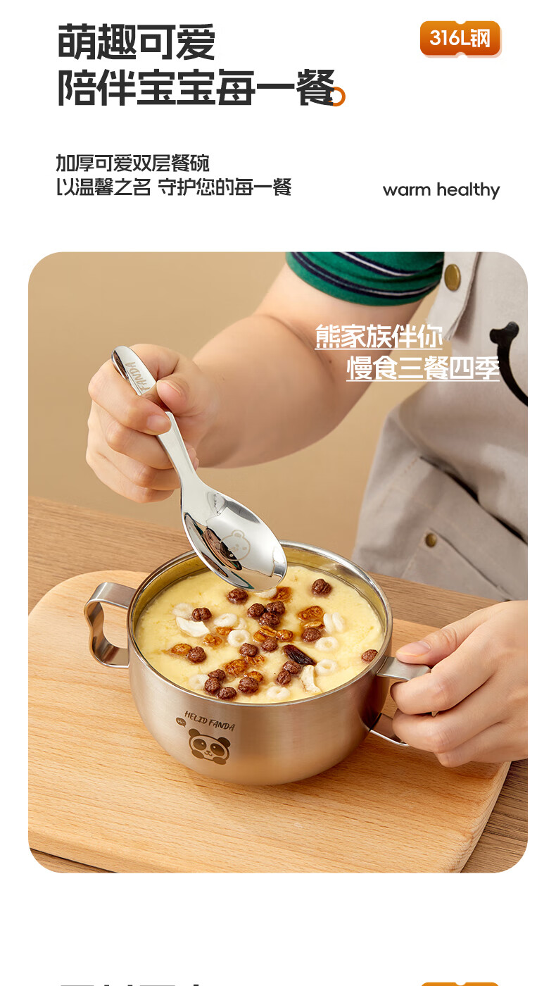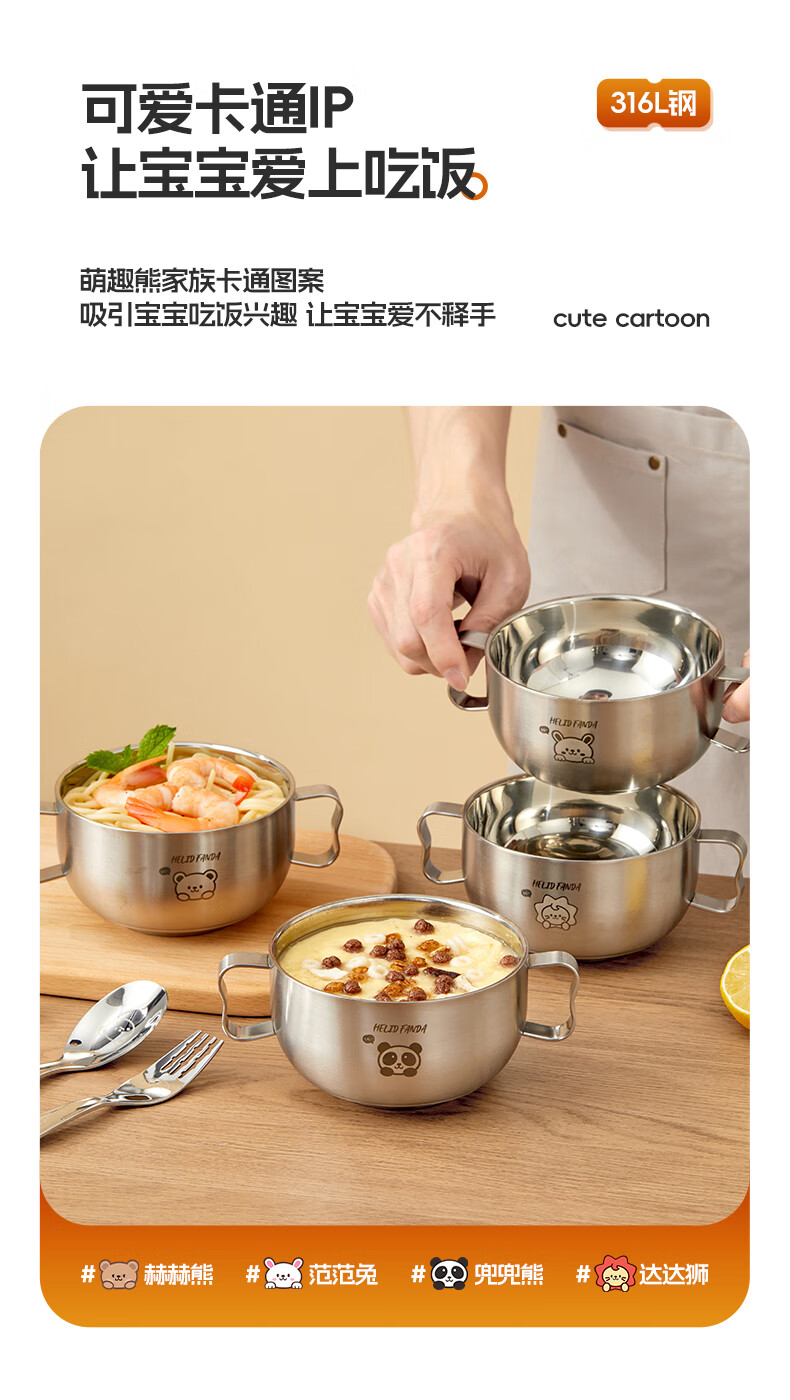 沃德百惠(WORTHBUY)316不锈钢碗婴儿辅食碗儿童双层隔热吃饭碗汤碗面碗餐具套装 熊