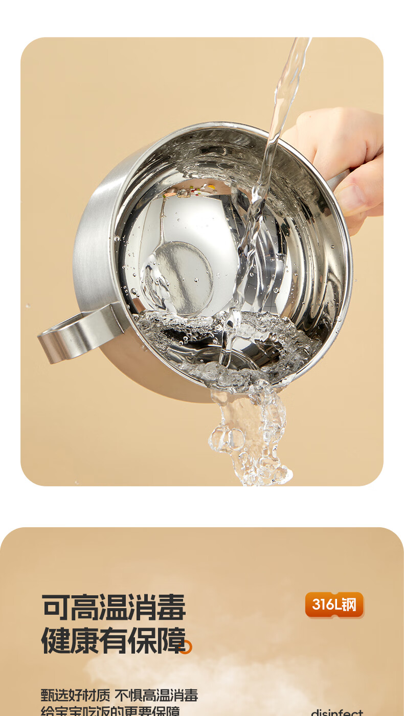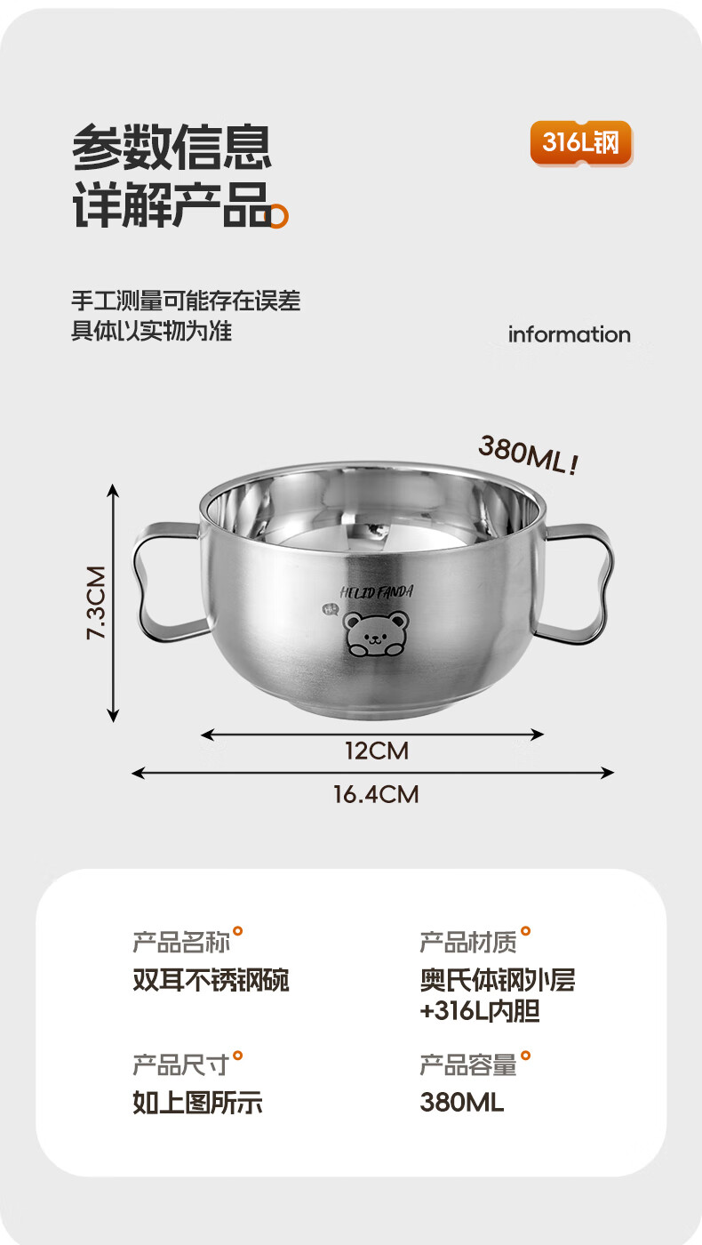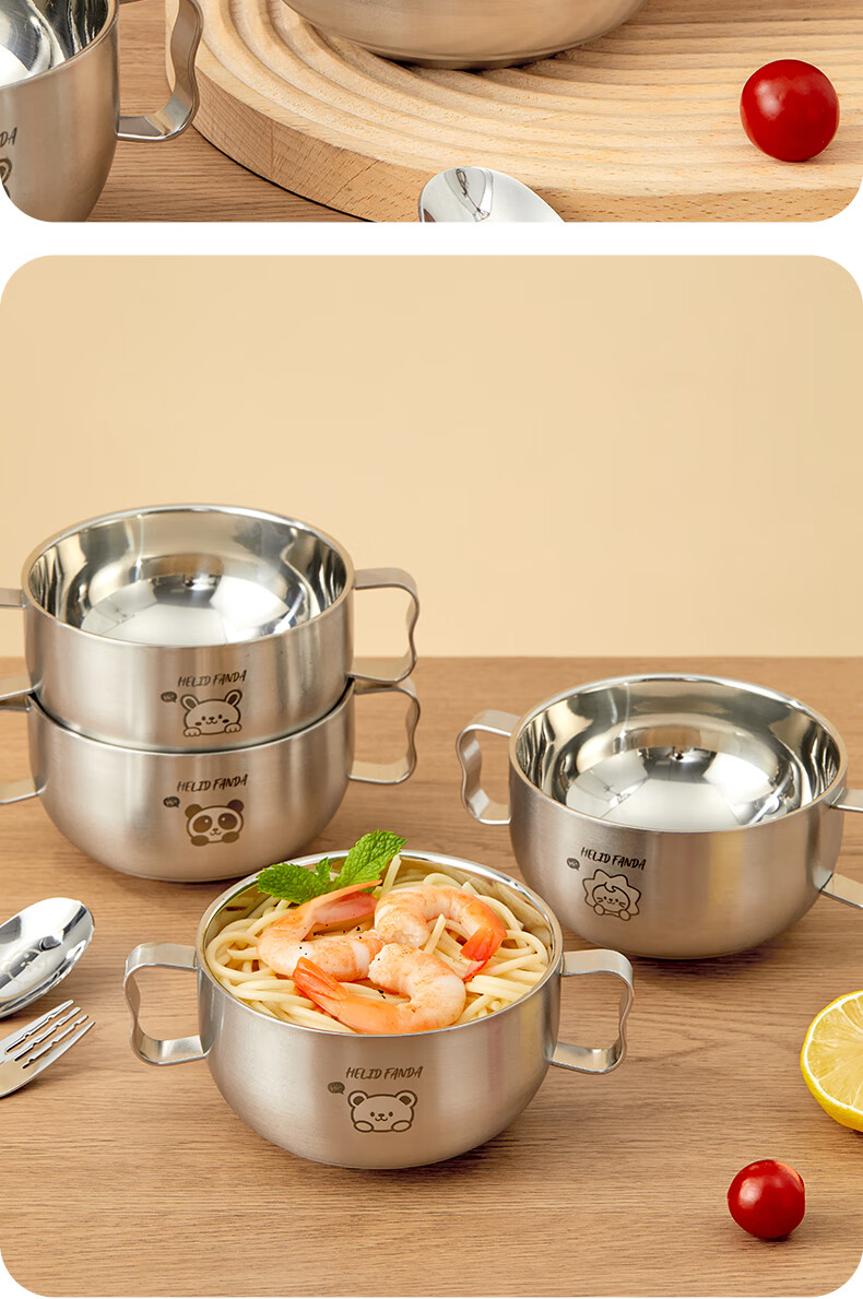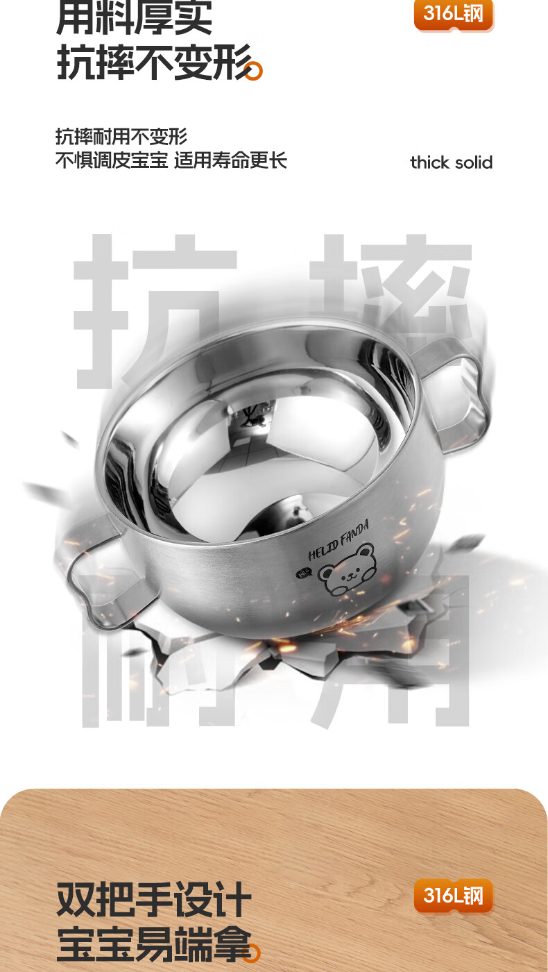 沃德百惠(WORTHBUY)316不锈钢碗婴儿辅食碗儿童双层隔热吃饭碗汤碗面碗餐具套装 熊