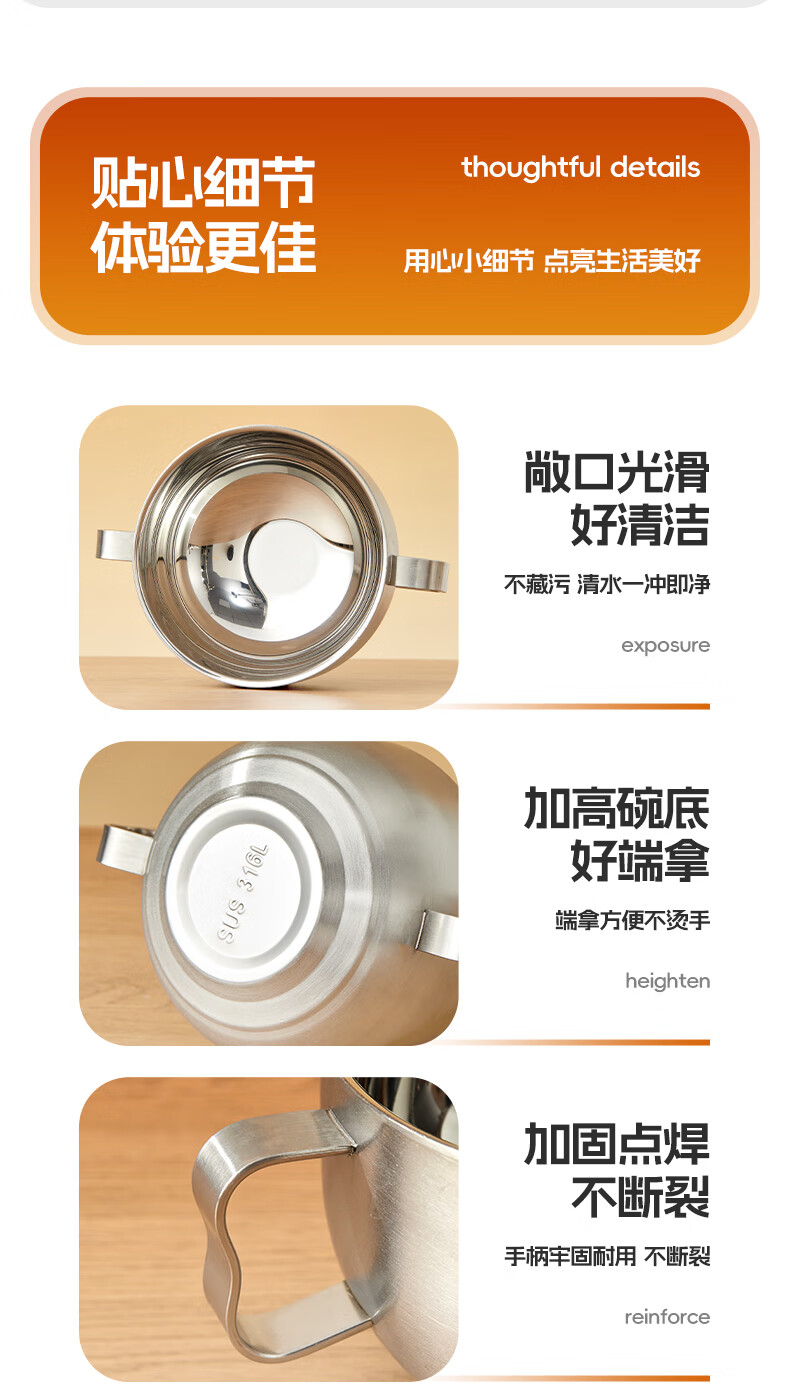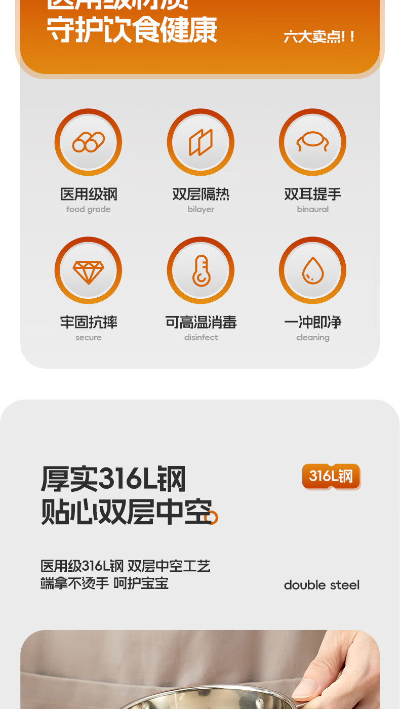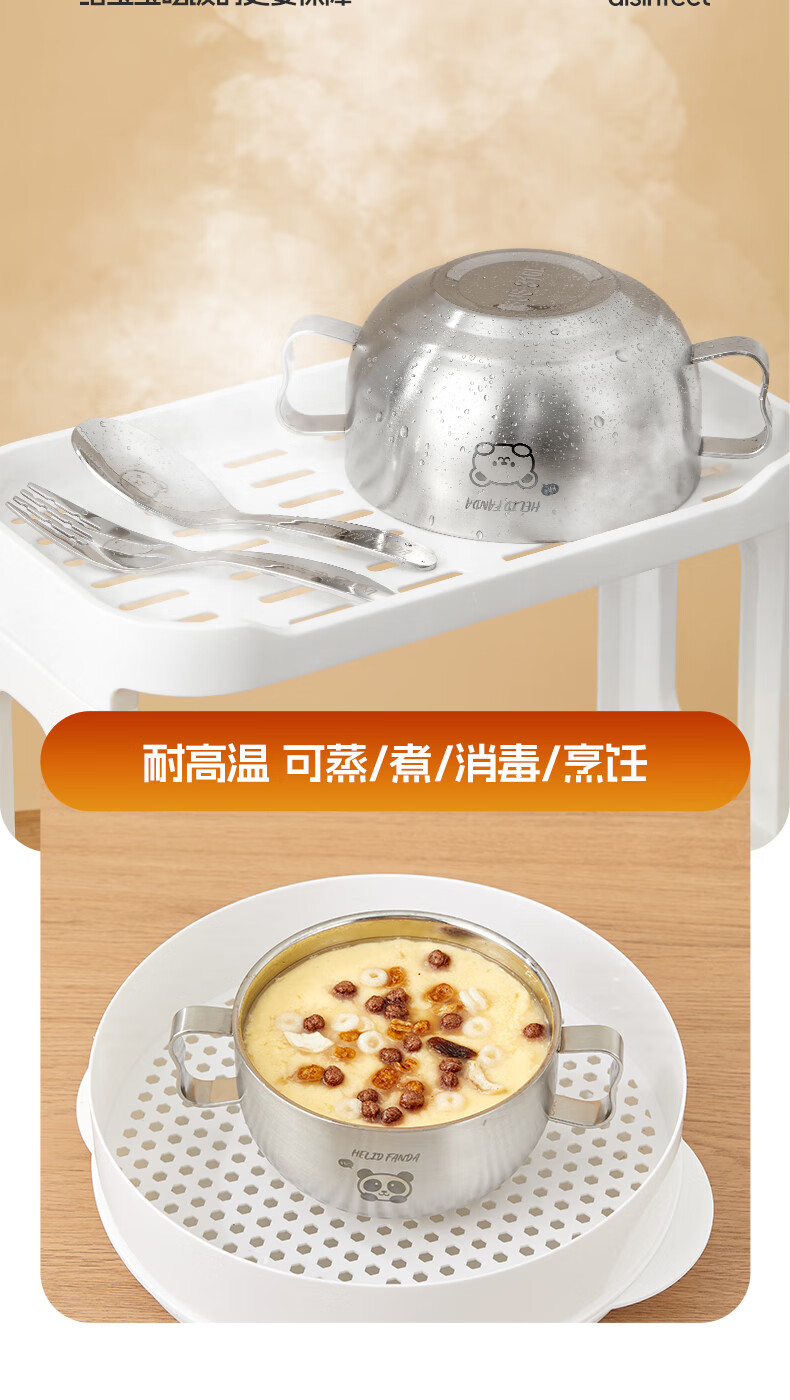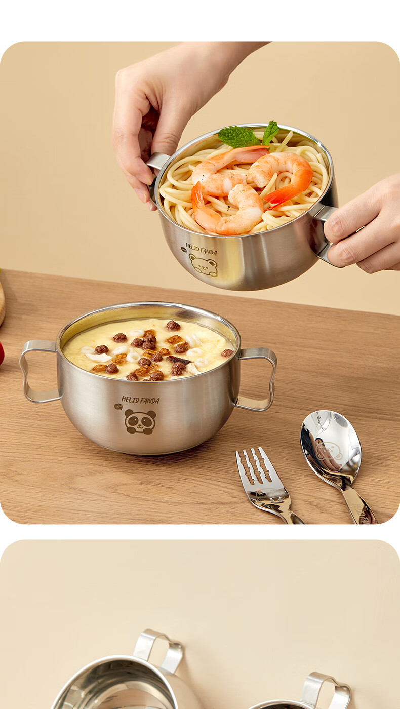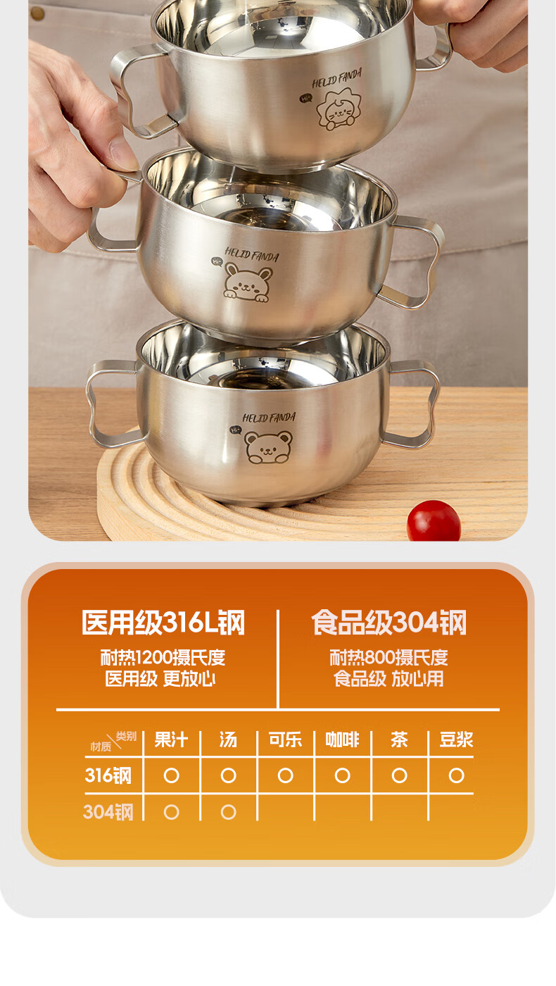 沃德百惠(WORTHBUY)316不锈钢碗婴儿辅食碗儿童双层隔热吃饭碗汤碗面碗餐具套装 熊