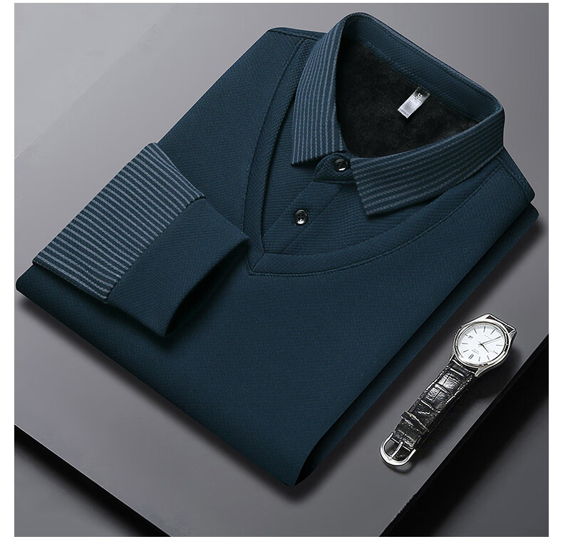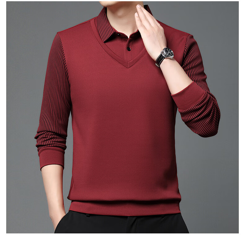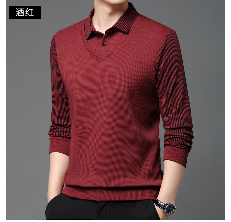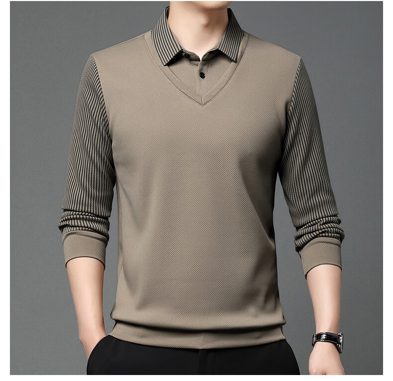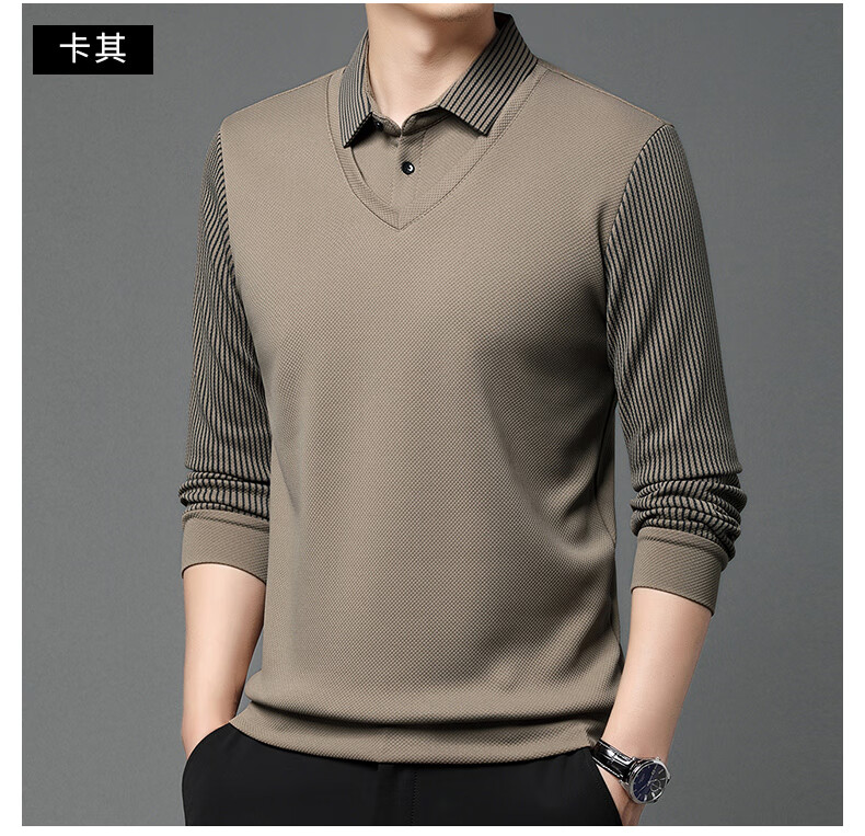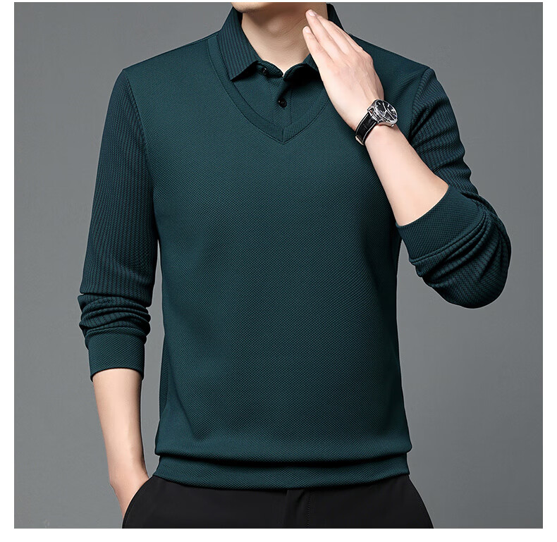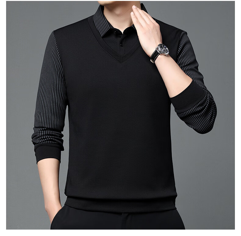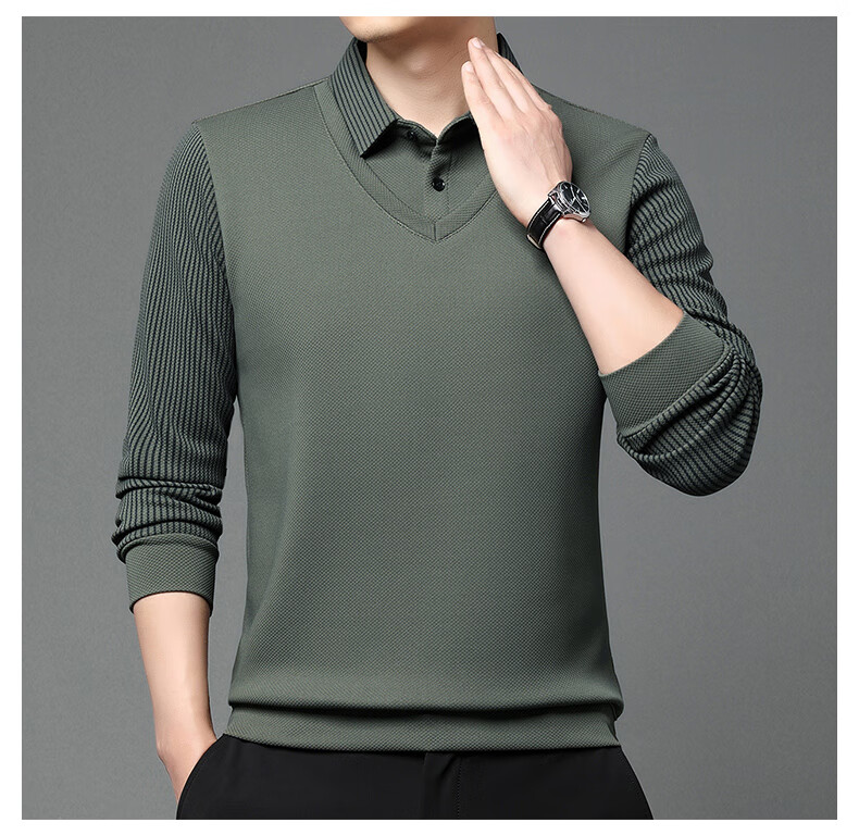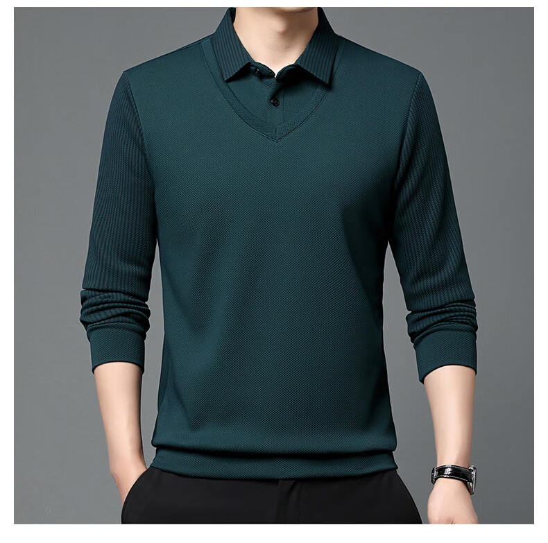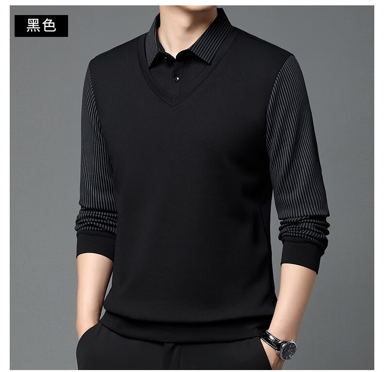 汤米芙兰可加绒加厚假两件毛衣男2025年秋冬季新款保暖休闲修身套头男士上衣 哈青常规不加绒 XL /175(建议135-150斤)