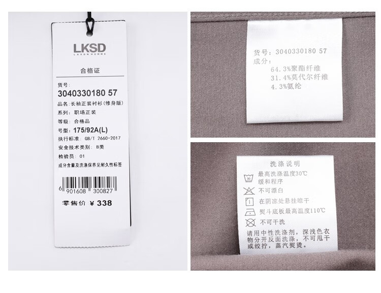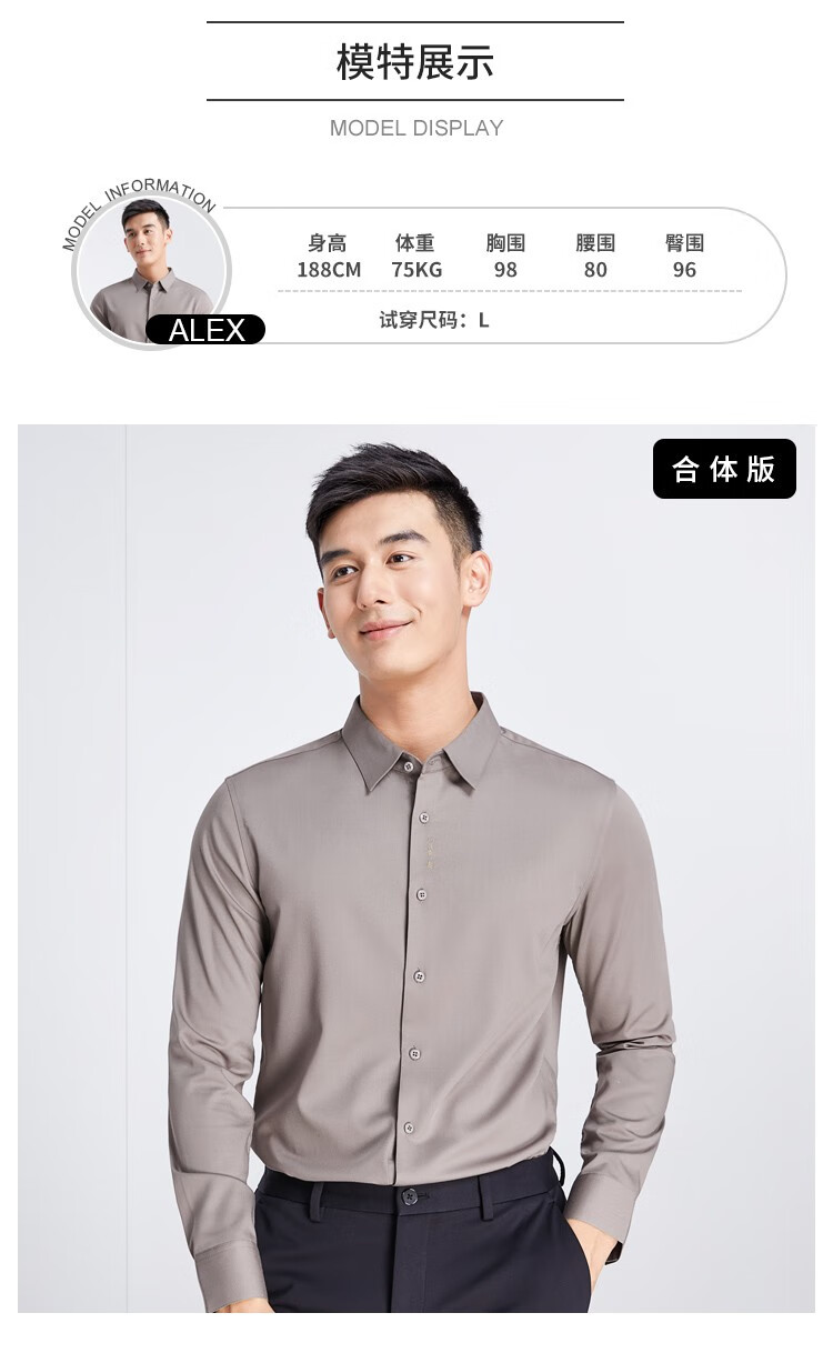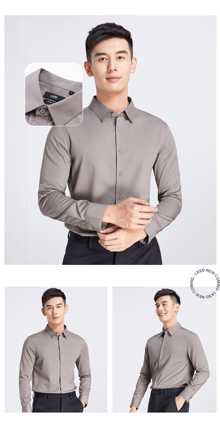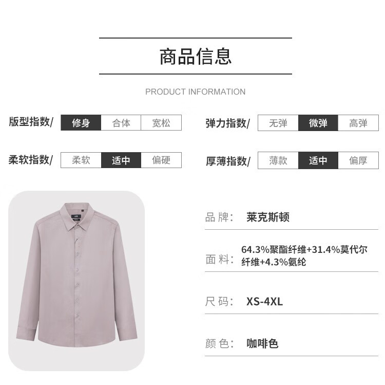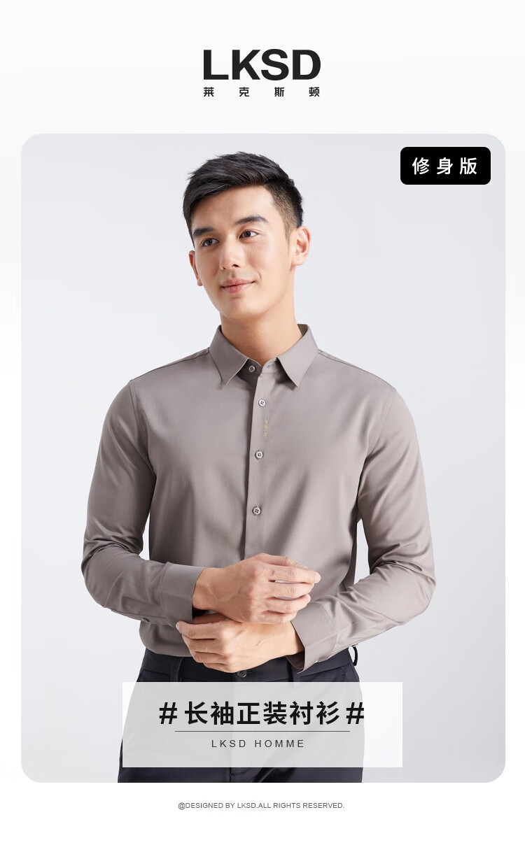 莱克斯顿衬衫男【商场同款】新款春秋长袖休闲正装长袖衬衣男 2XL