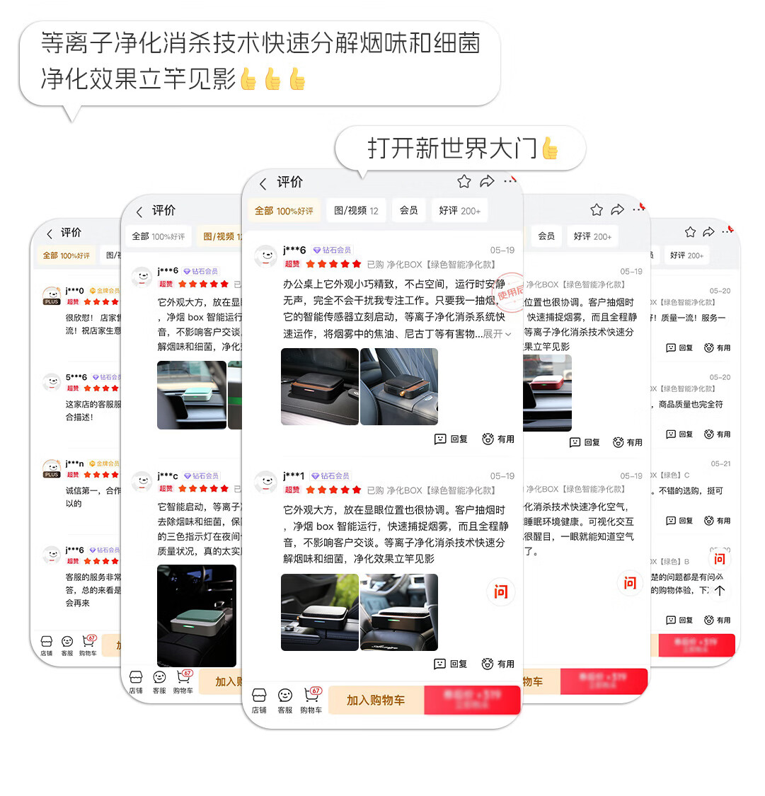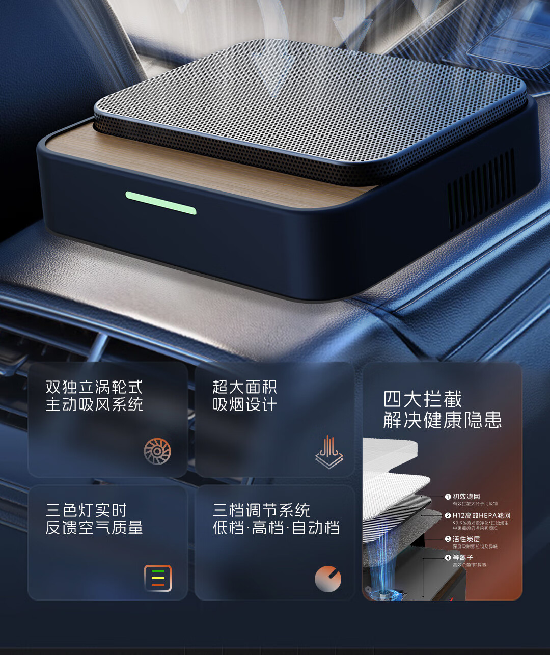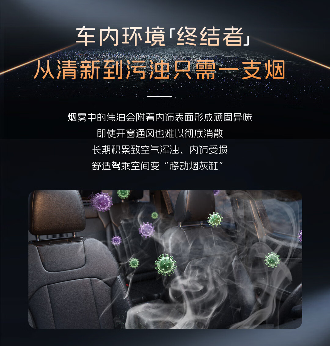 浦尔乐净化BOX车载空气净化器四重过滤净化车内烟味等离子除甲醛新车除异味智能便携去烟味 【黑色车载款 1.5M线】净化BOX