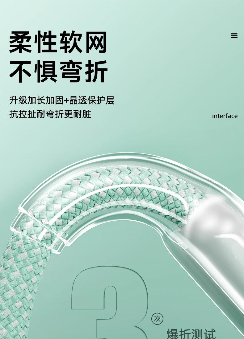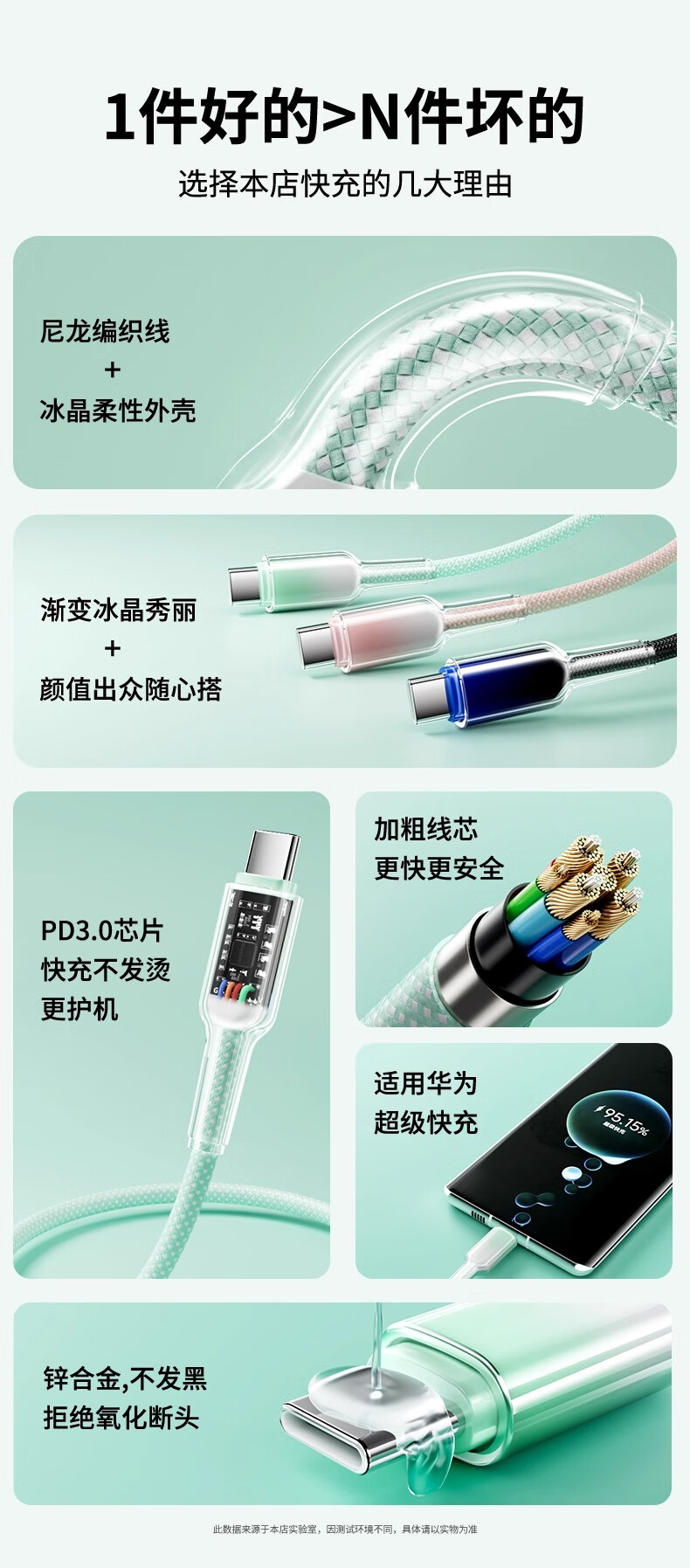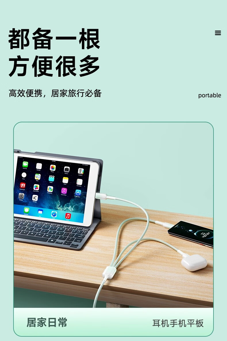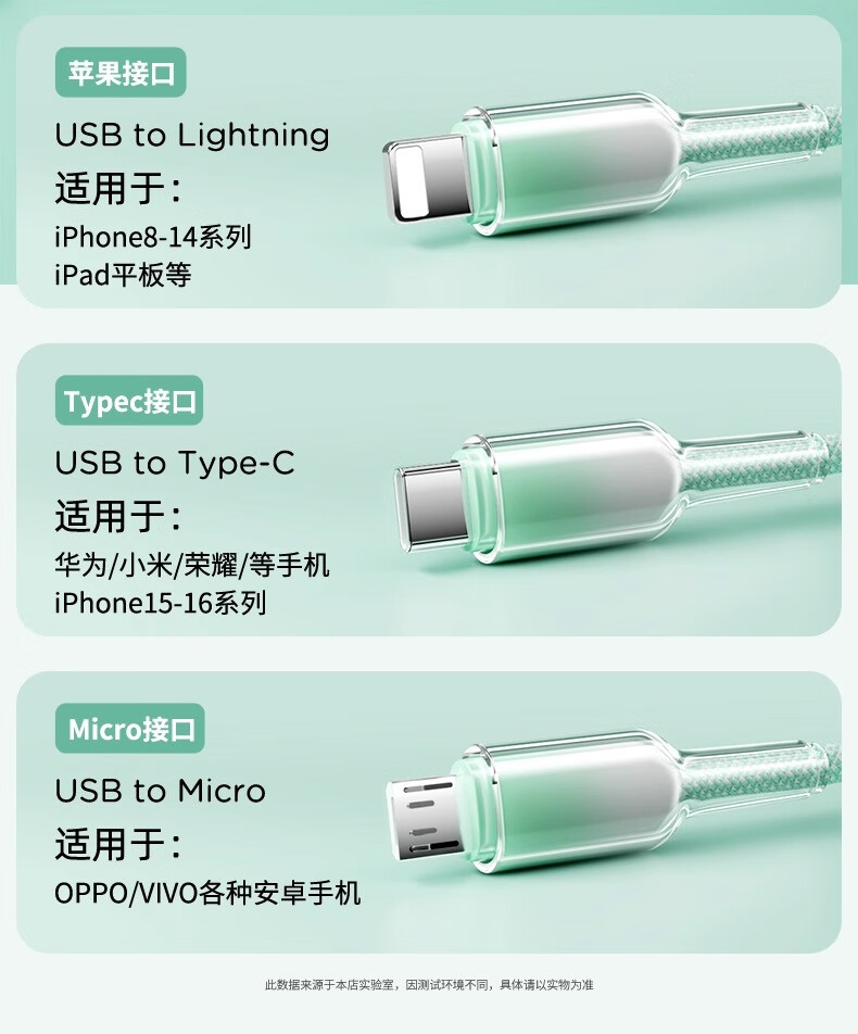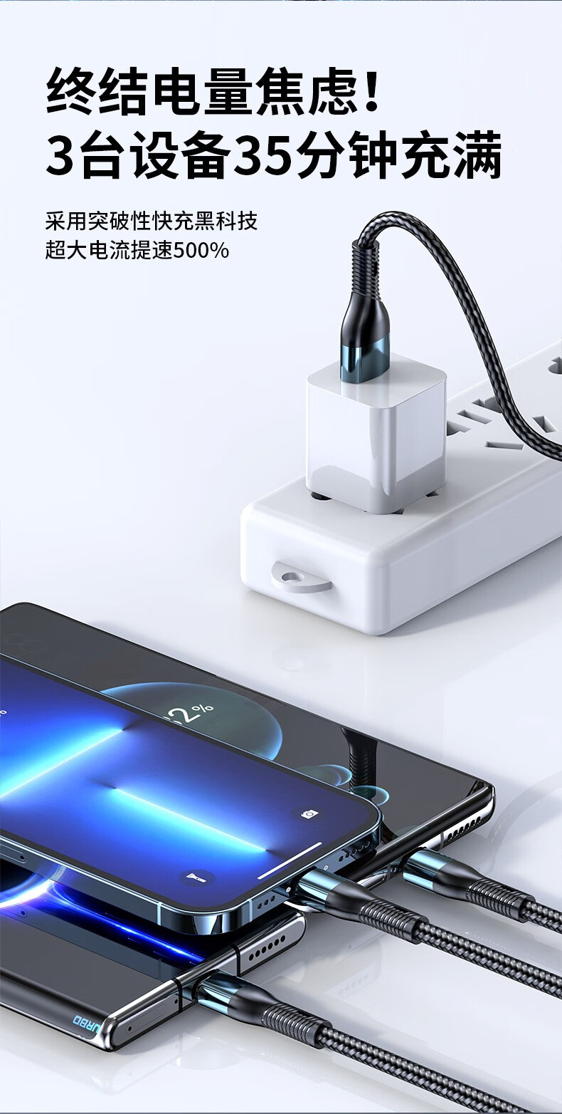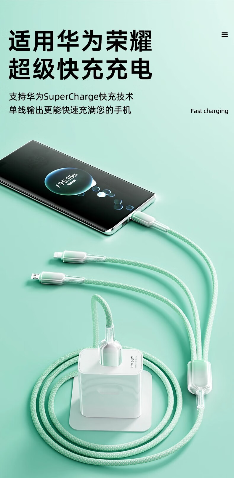 萨勒芬妮 冰晶渐变一拖三【66W超级快充】数据线三合一6A苹果安卓Type-C充电器线车载适用华为小米三星手机 1.2米【薄荷绿】冰晶渐变·颜值出众丨低温快充