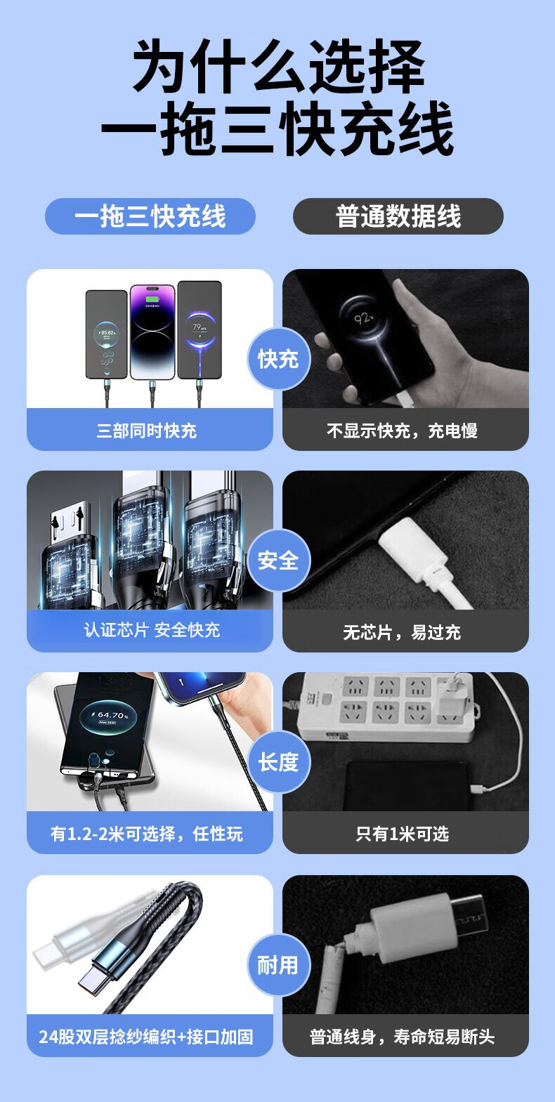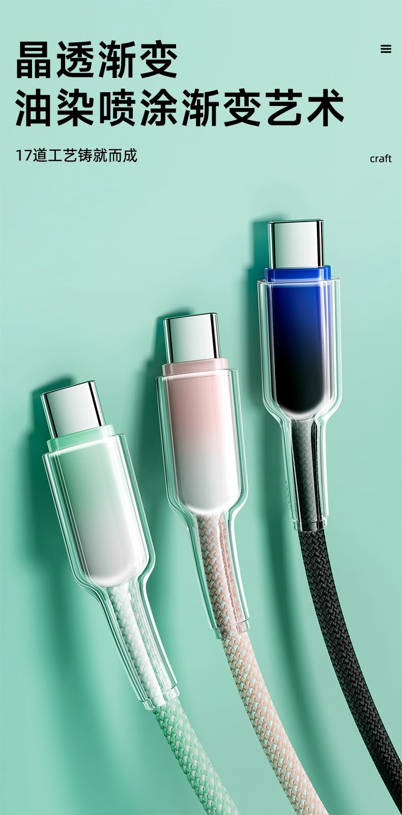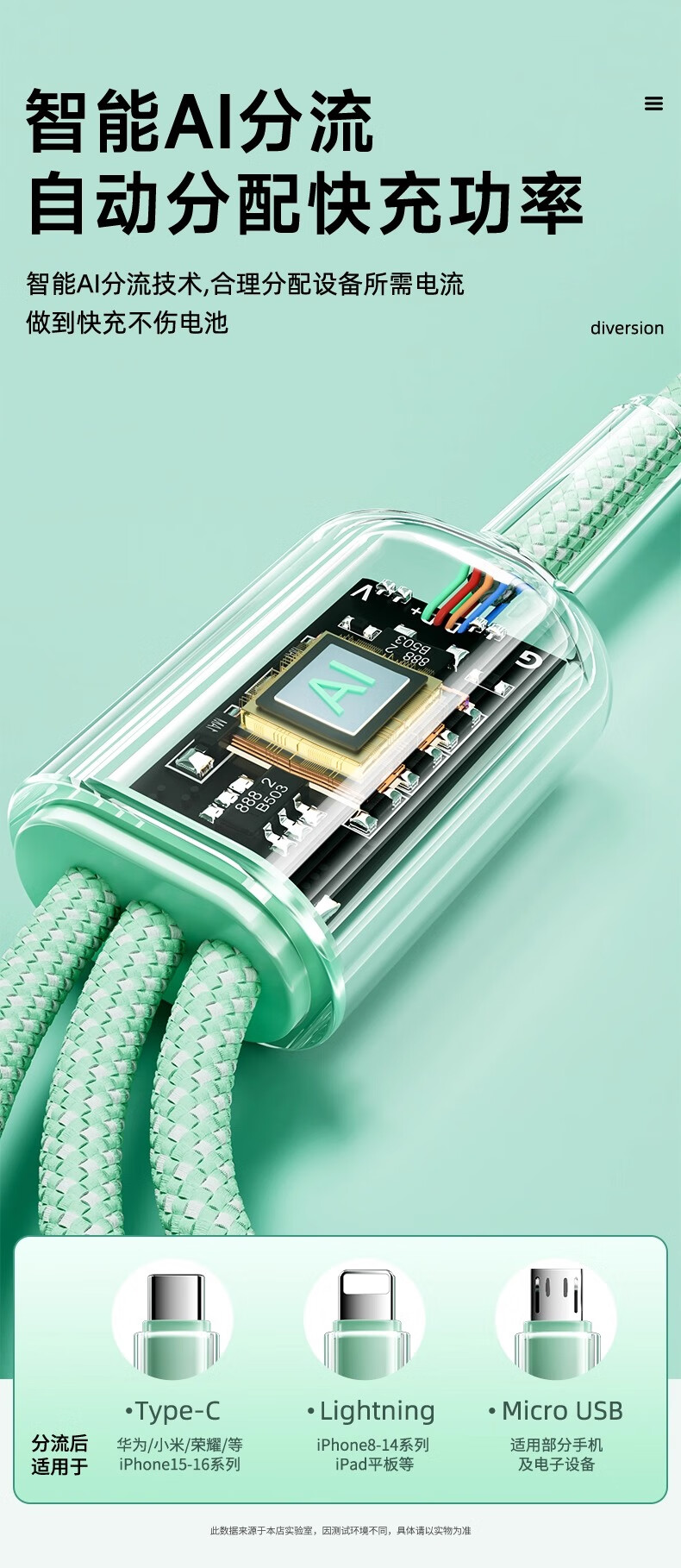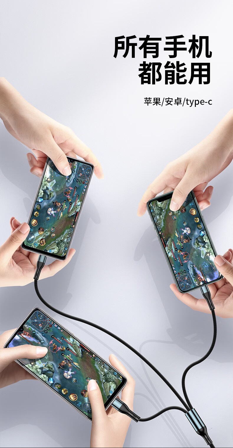 萨勒芬妮 冰晶渐变一拖三【66W超级快充】数据线三合一6A苹果安卓Type-C充电器线车载适用华为小米三星手机 1.2米【薄荷绿】冰晶渐变·颜值出众丨低温快充