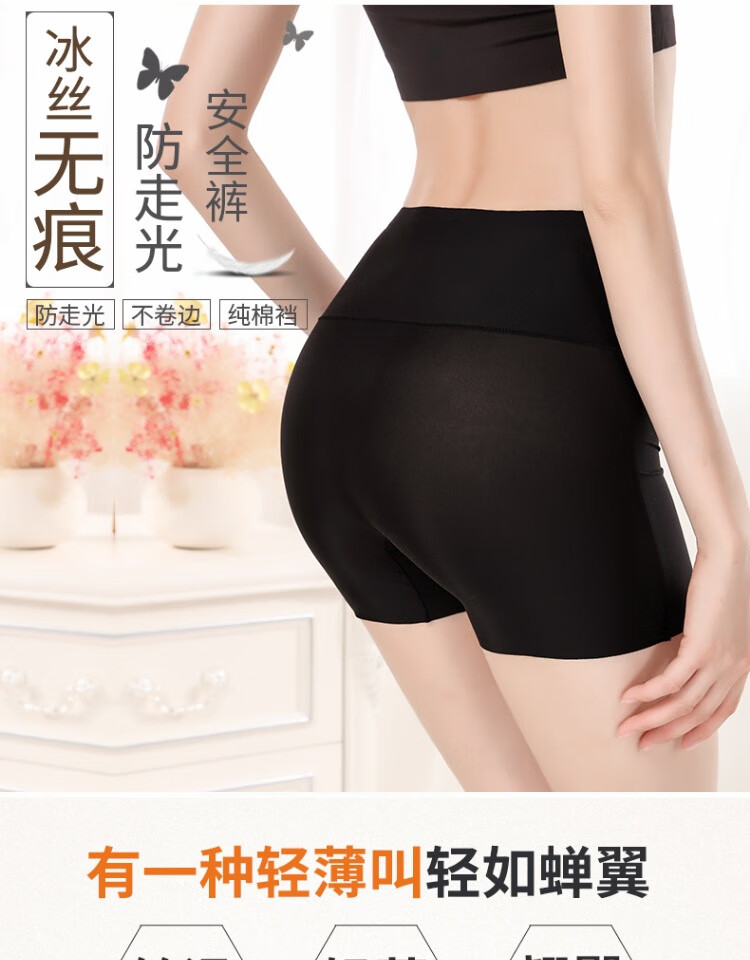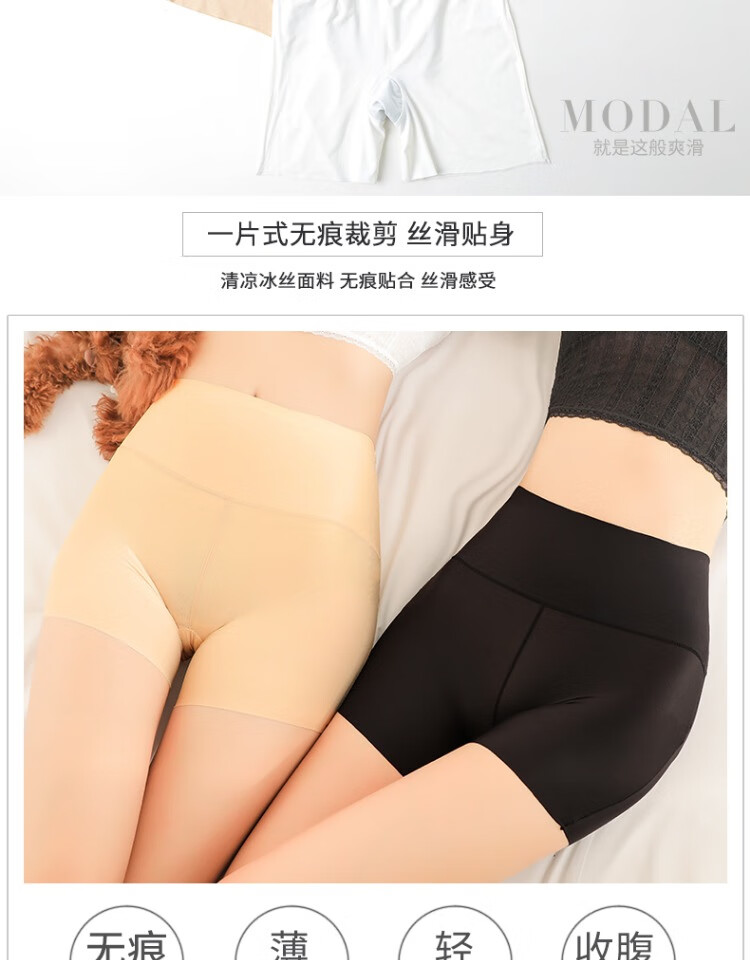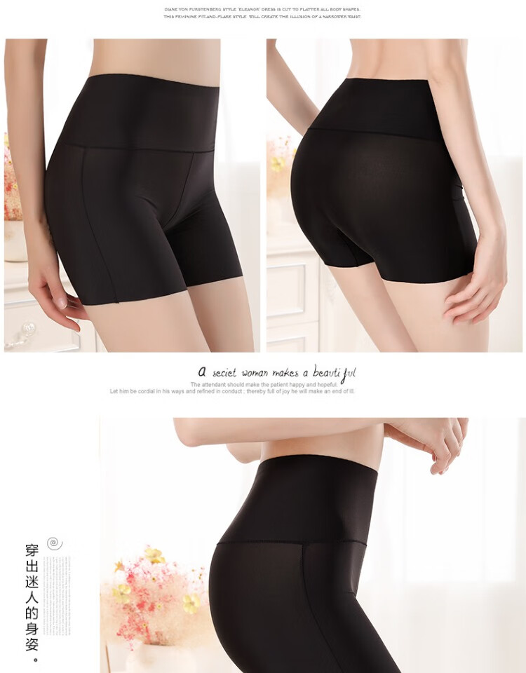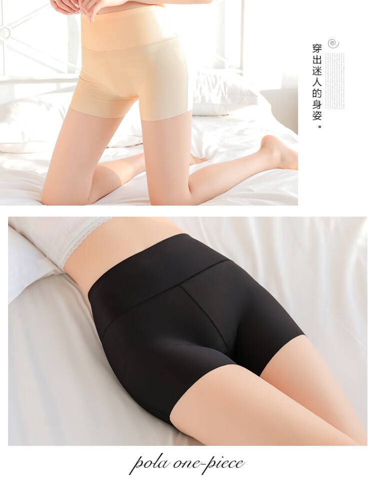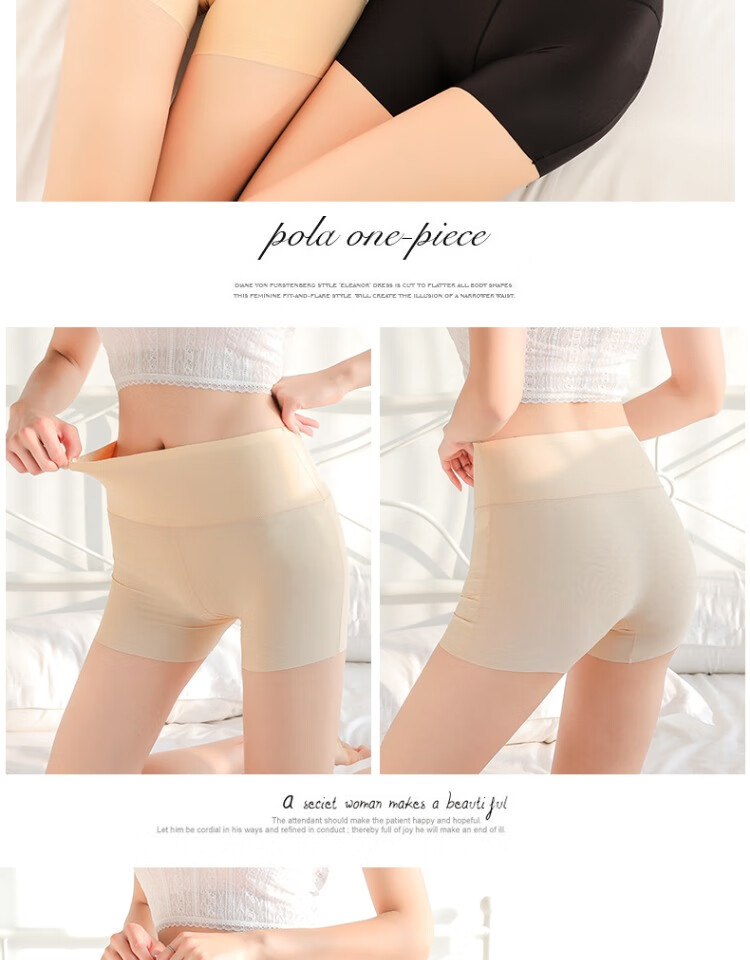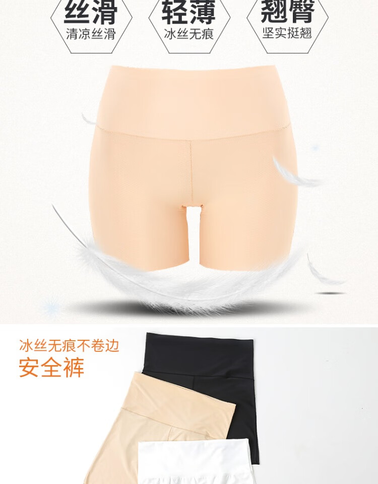 希格鲨内裤女士平角无痕冰丝夏季薄款女生高腰收腹提臀防走光打底安全裤 3件【冰丝无痕不卷边】1361-杏色 L 【建议体重100-120斤】