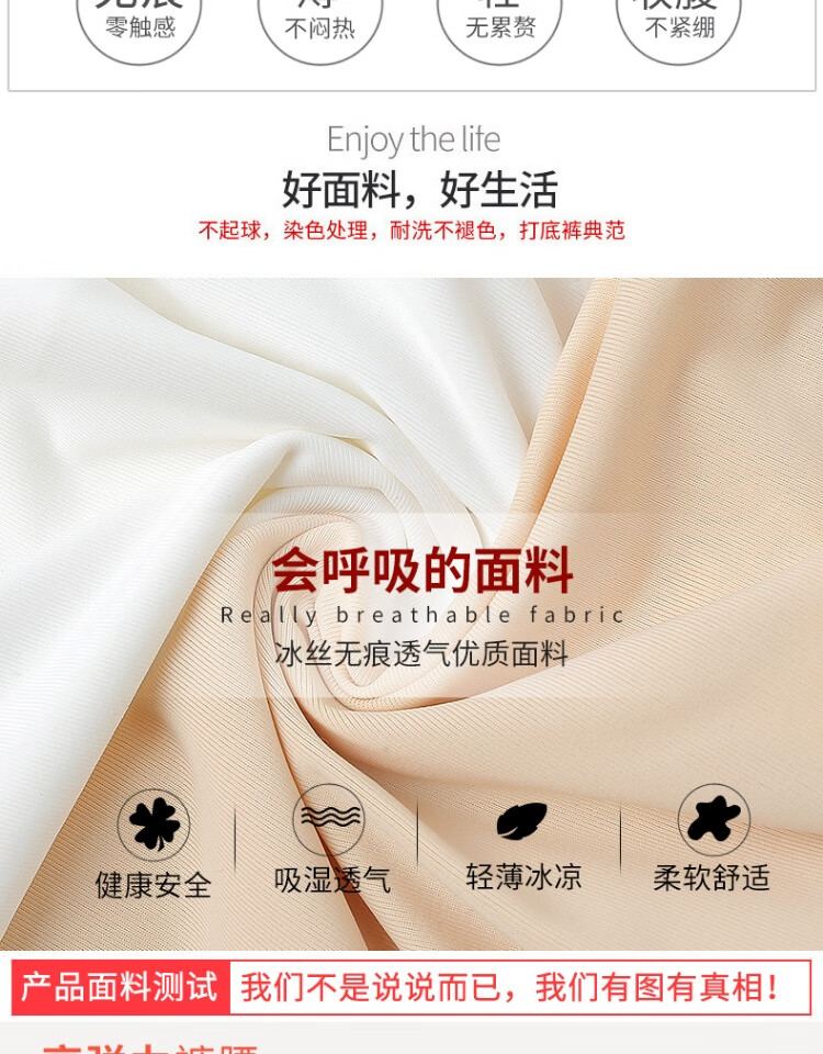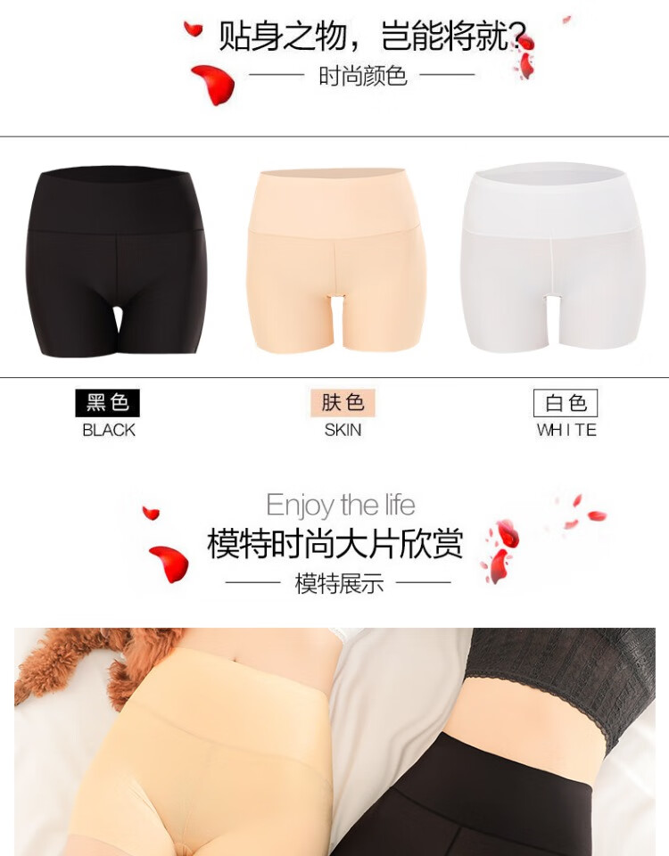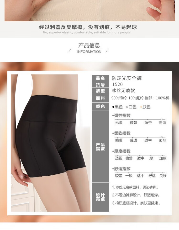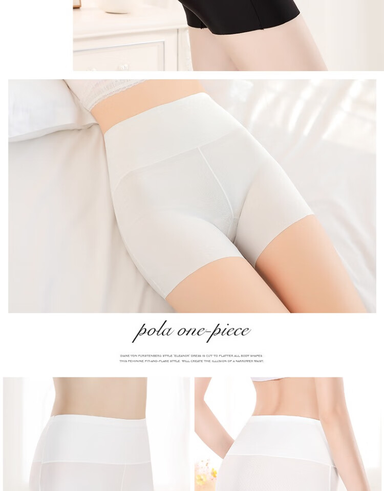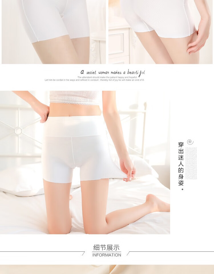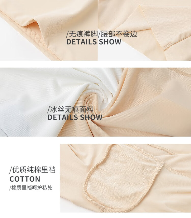 希格鲨内裤女士平角无痕冰丝夏季薄款女生高腰收腹提臀防走光打底安全裤 3件【冰丝无痕不卷边】1361-杏色 L 【建议体重100-120斤】